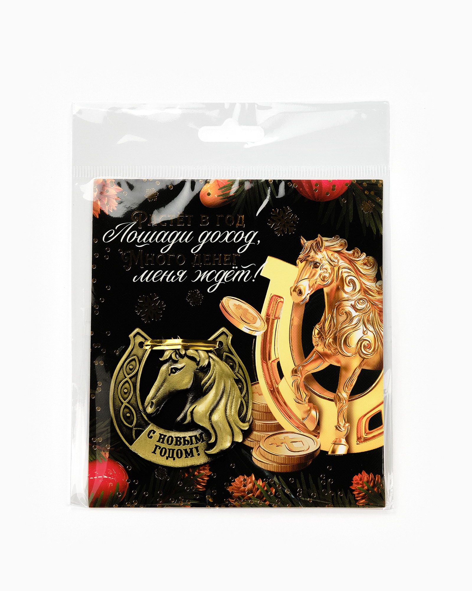 Подкова новогодняя "Растет в год лошади доход" 5.5 см, 5.5x5.5x0.4 см., Сима-ленд, Китай