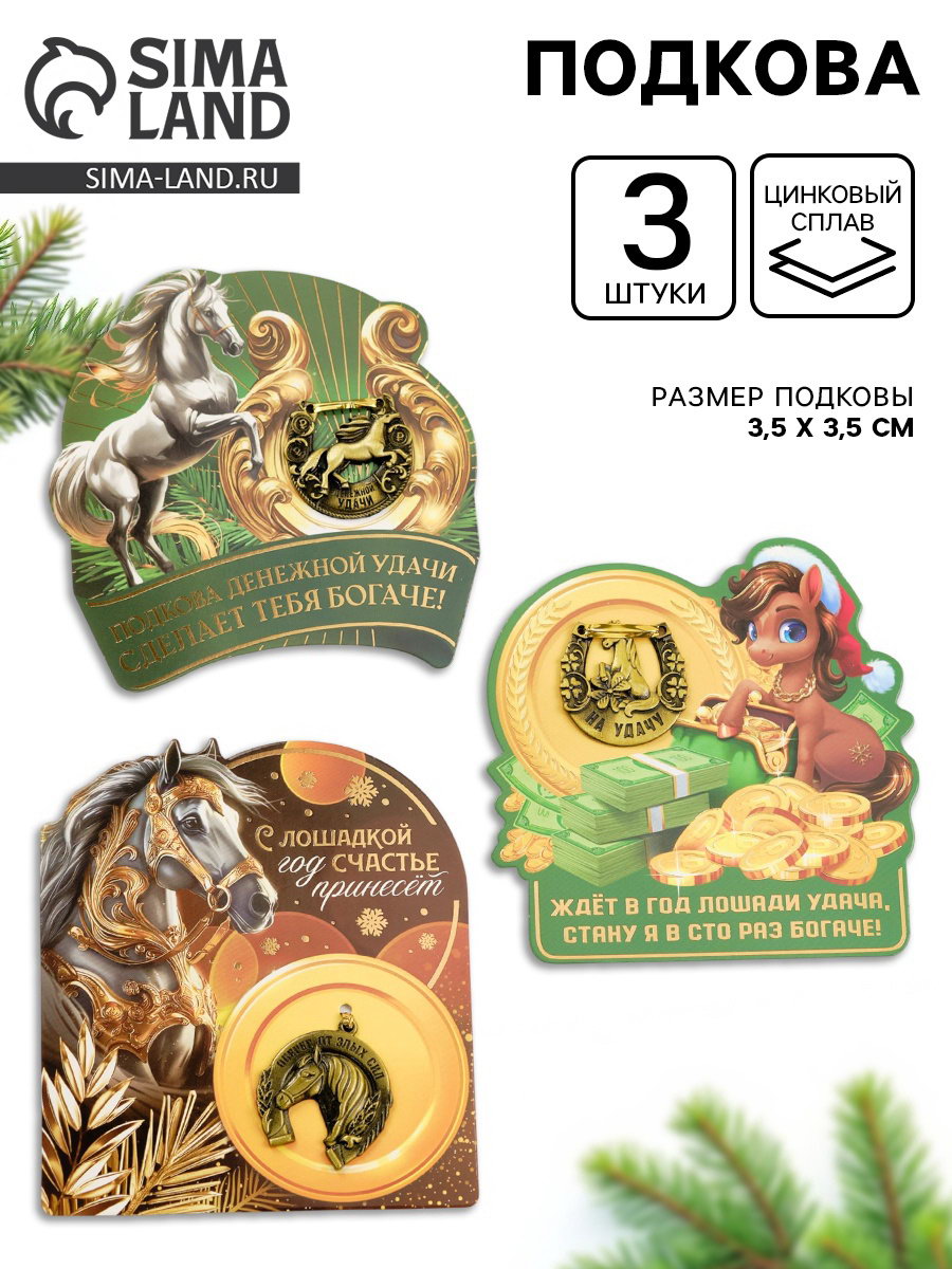 Подковы новогодние, набор 3 шт., 3.5 см, 3.5x3.5x0.9 см., Сима-ленд, Китай
