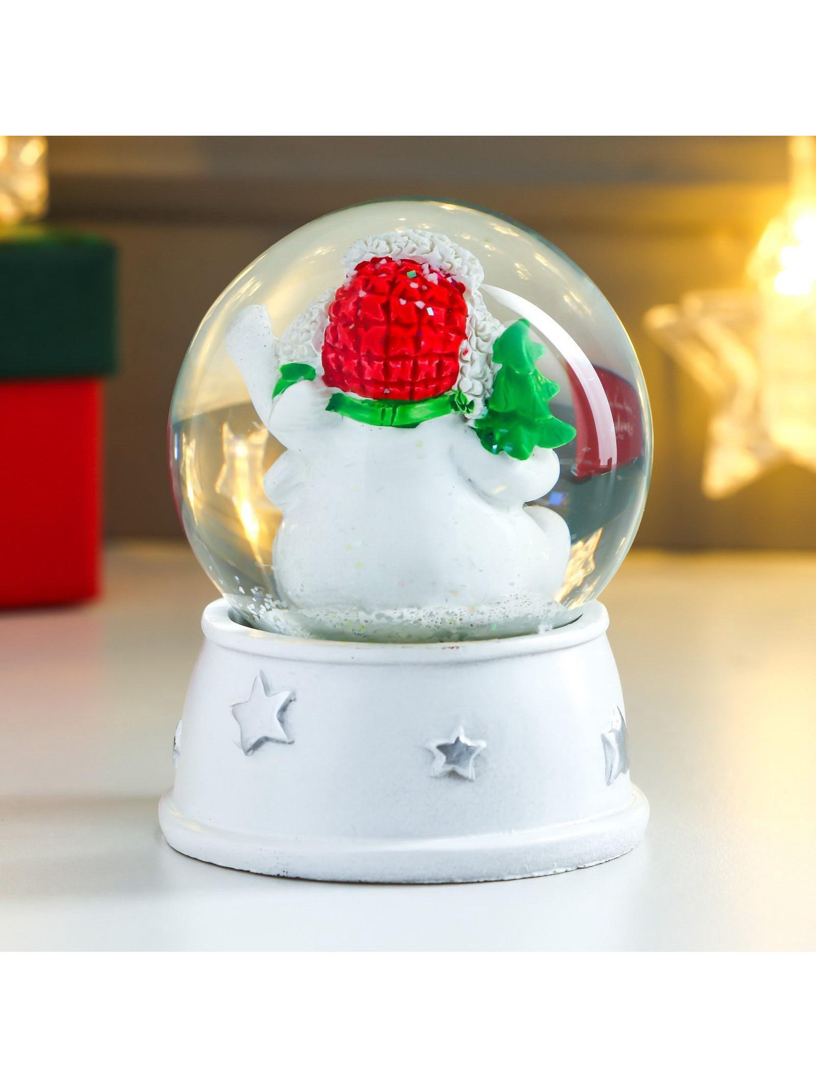 Снежный шар новогодний стеклянный "Снеговик в шапке-ушанке, с ёлкой", d=6.5 см, 8x6.5x6.5 см, 6.5x6.5x8 см., Китай