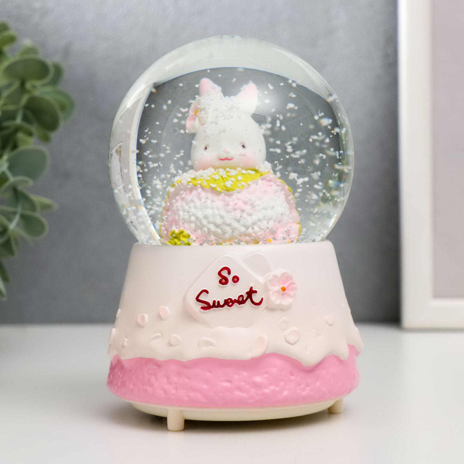 Снежный шар стеклянный "Зайка и тортик", музыкальный, световой, 13x8x8 см, МИКС, 8x8x13 см., Китай