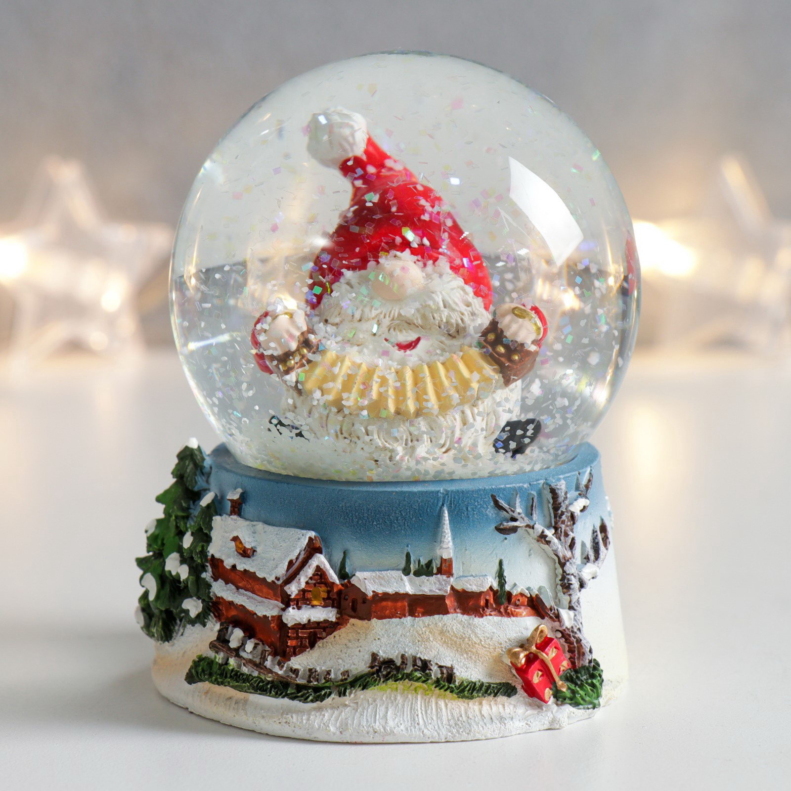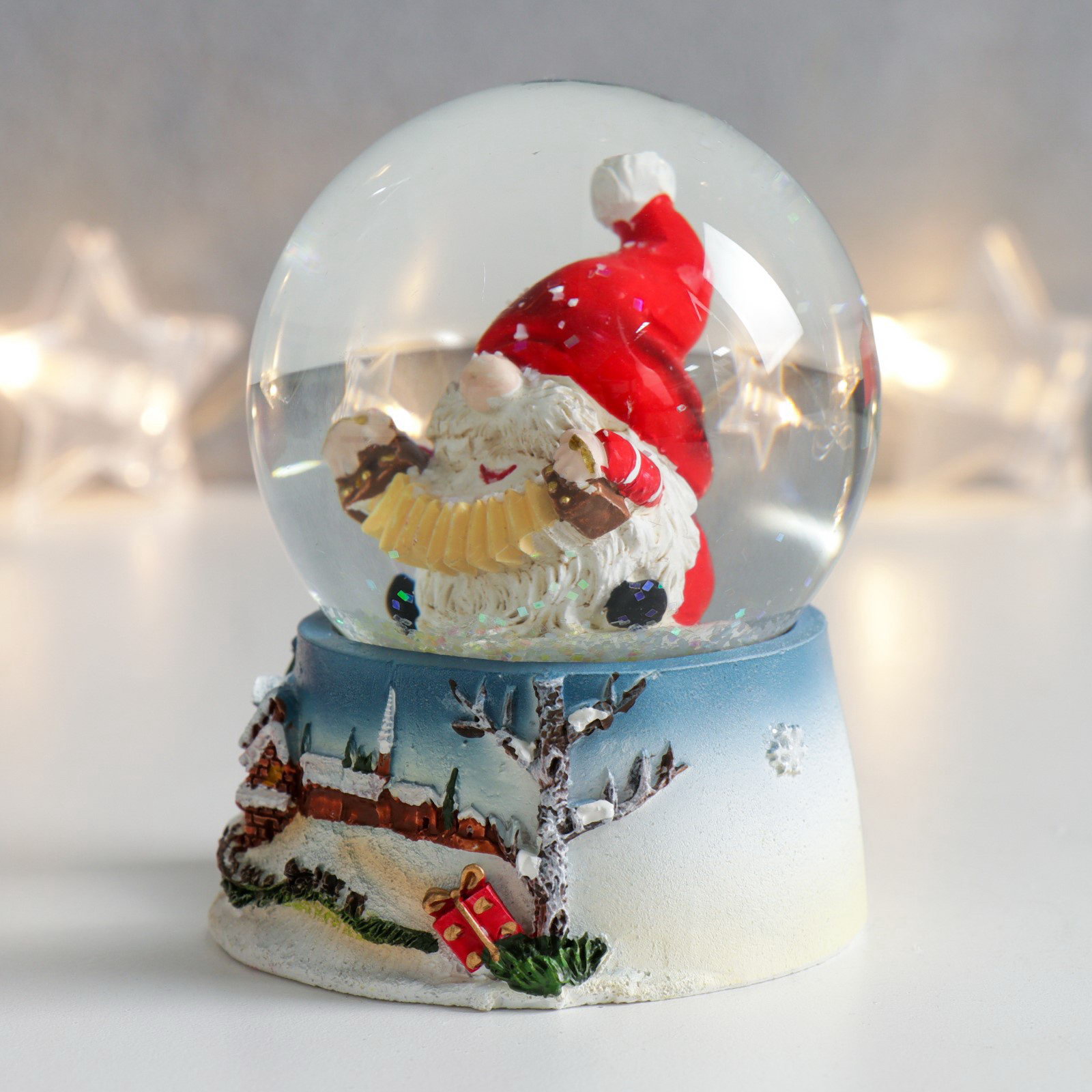 Снежный шар новогодний стеклянный "Дед Мороз - гармонист", полистоун, 7х6.7х8.8 см, 7x6.7x8.8 см., Китай