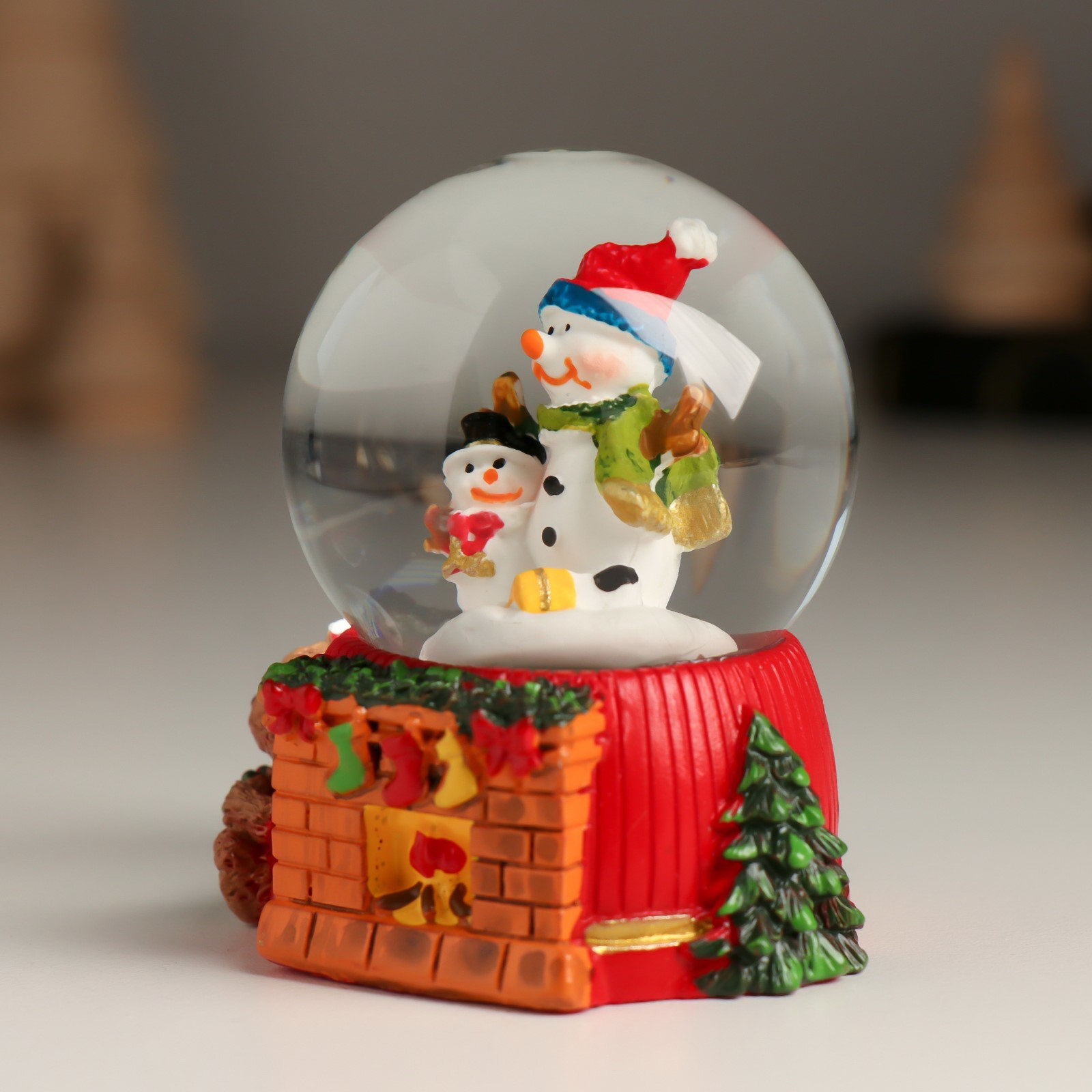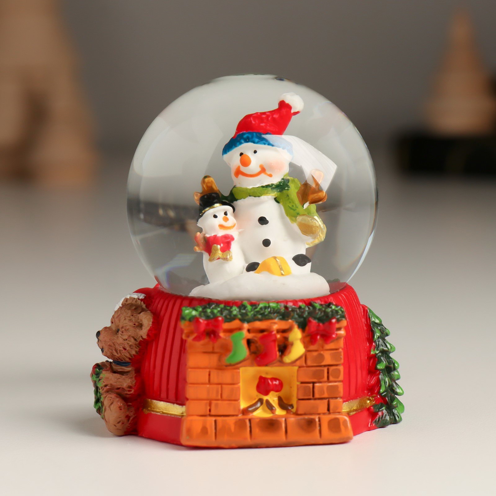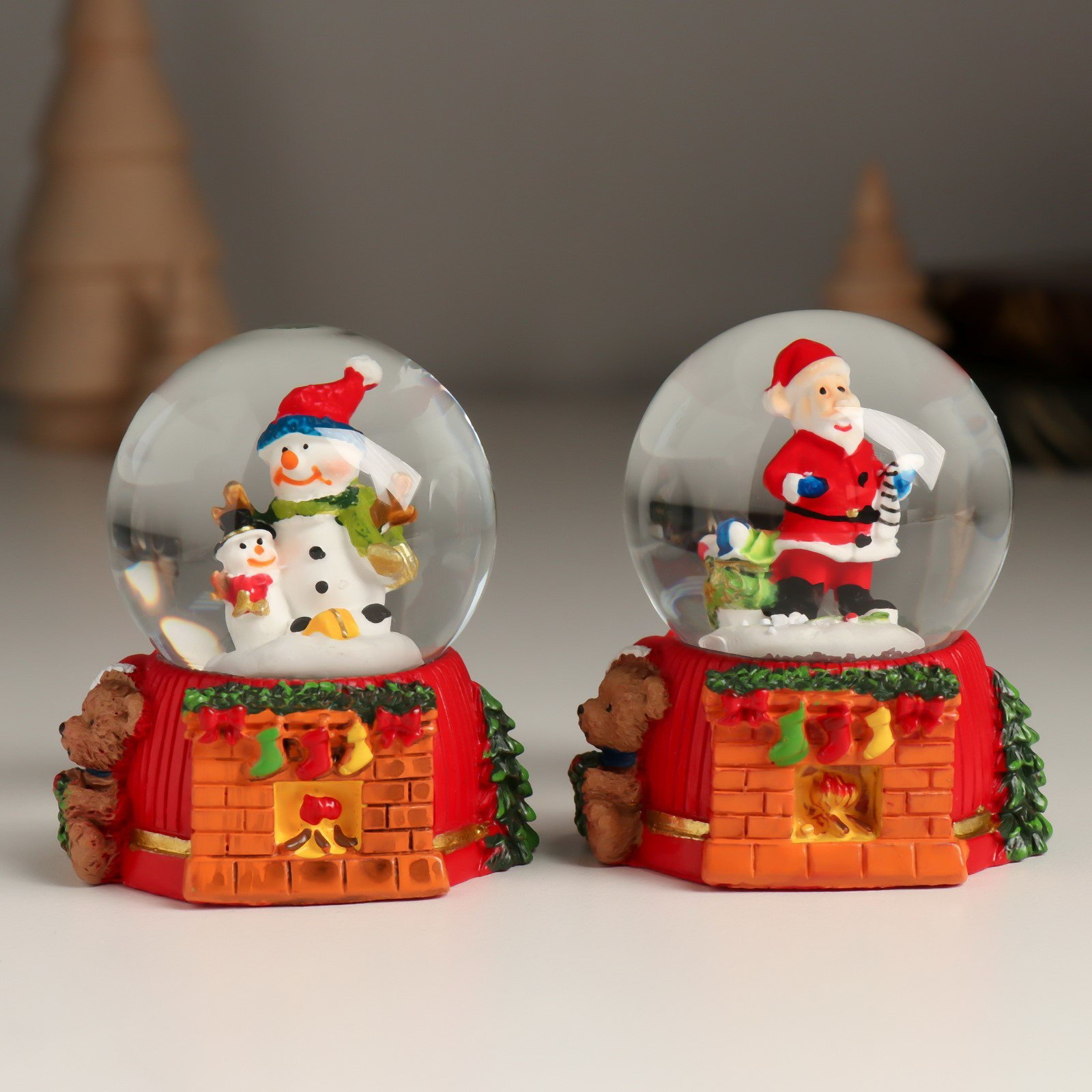 Снежный шар новогодний стеклянный "Дед Мороз или Снеговик у камина", 5.5x5x6.5 см, МИКС, 5x5.5x6.5 см., Китай