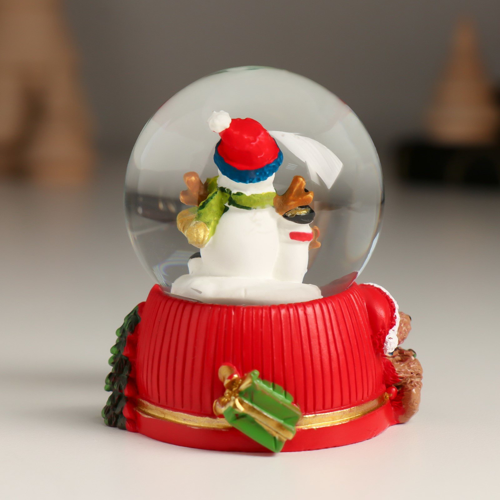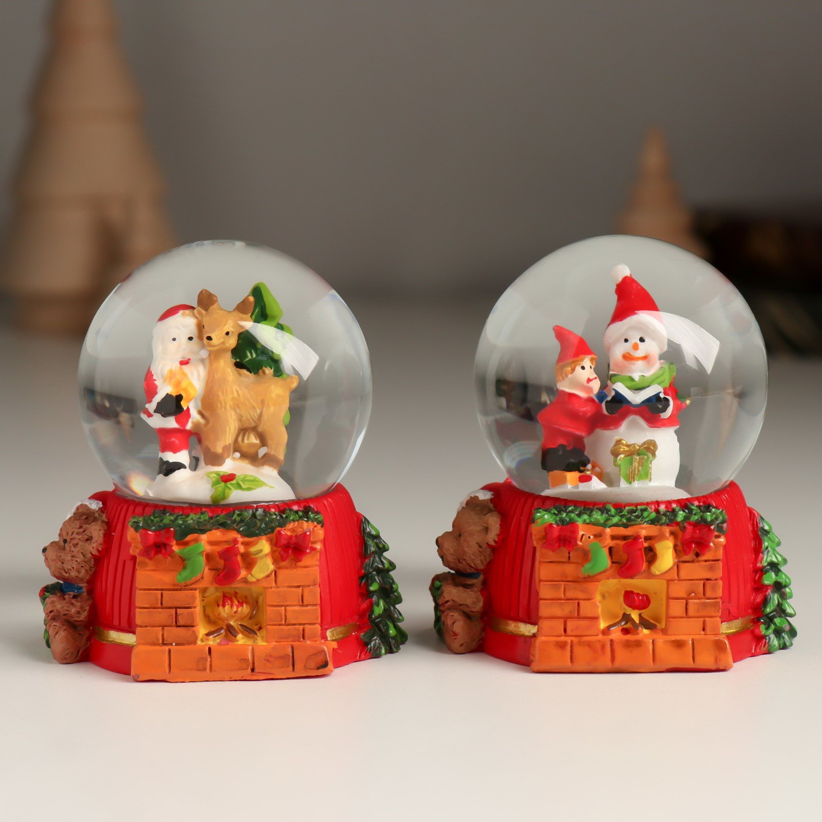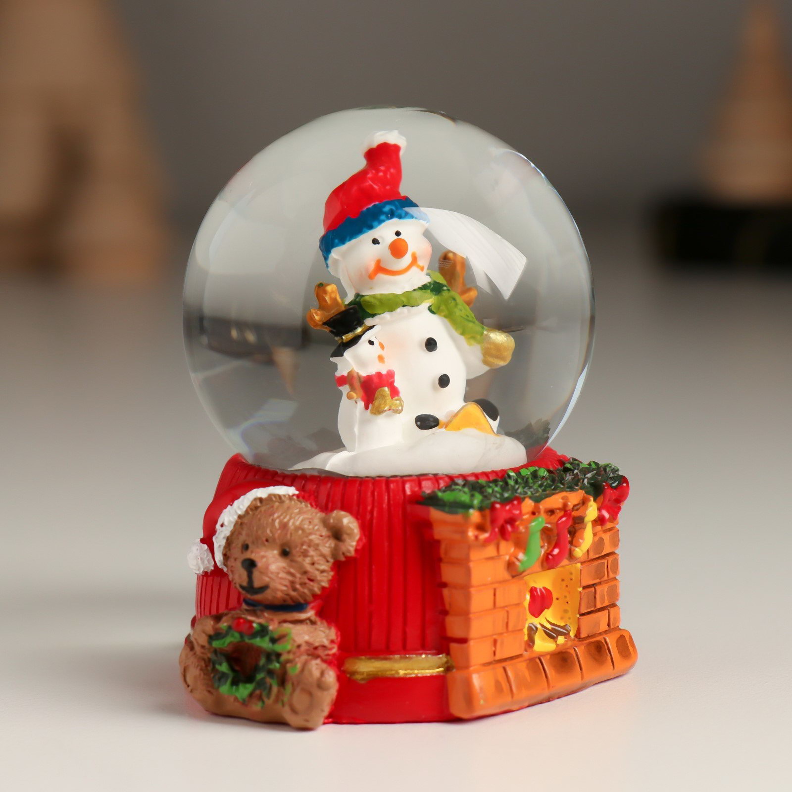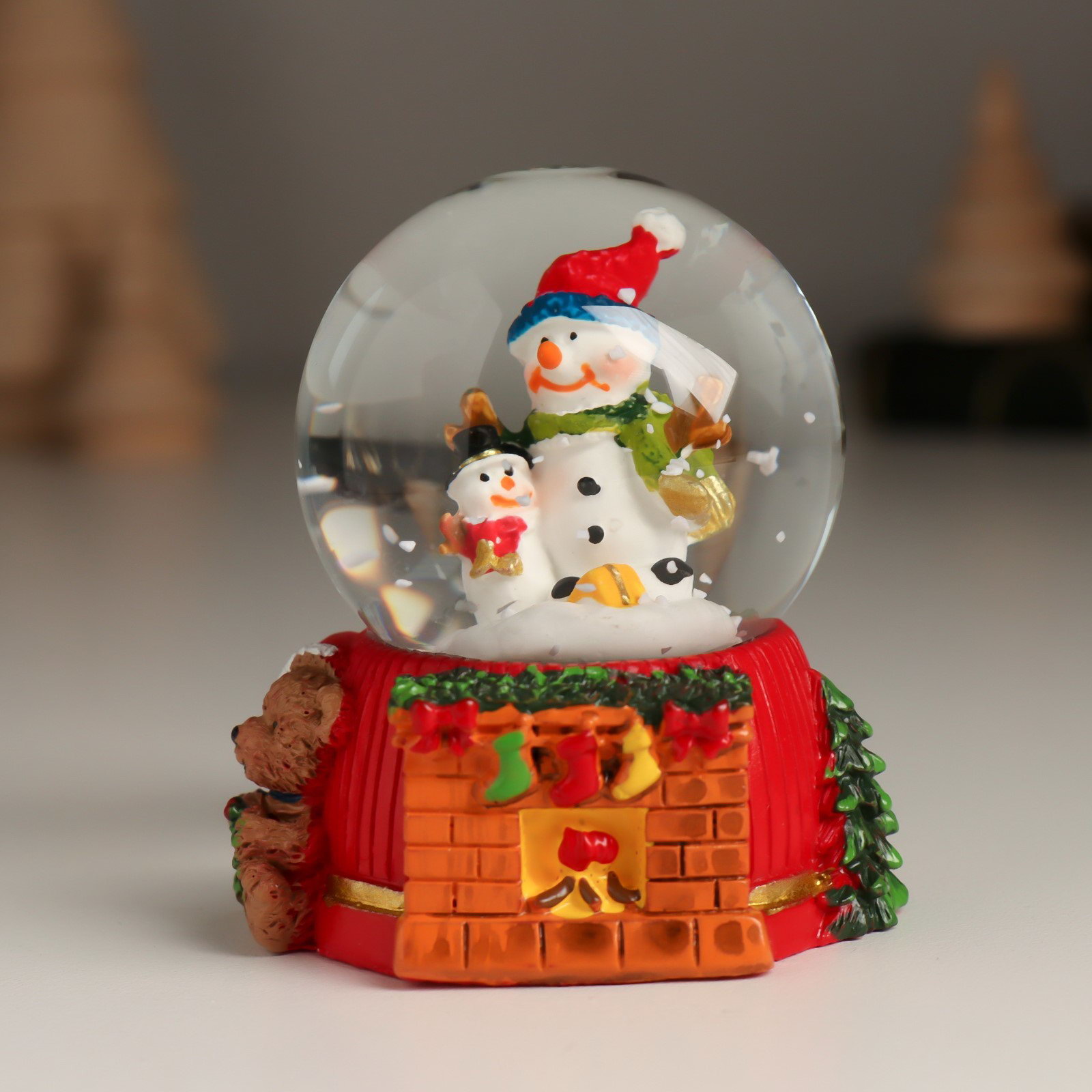 Снежный шар новогодний стеклянный "Дед Мороз или Снеговик у камина", 5.5x5x6.5 см, МИКС, 5x5.5x6.5 см., Китай