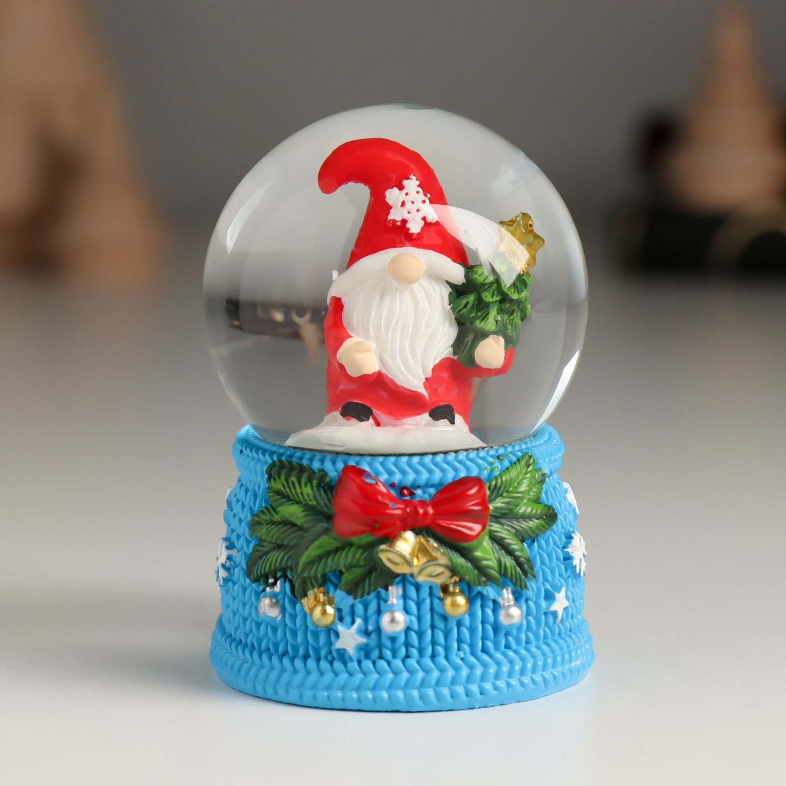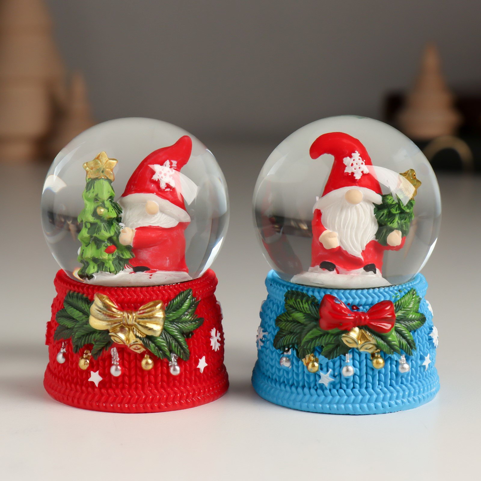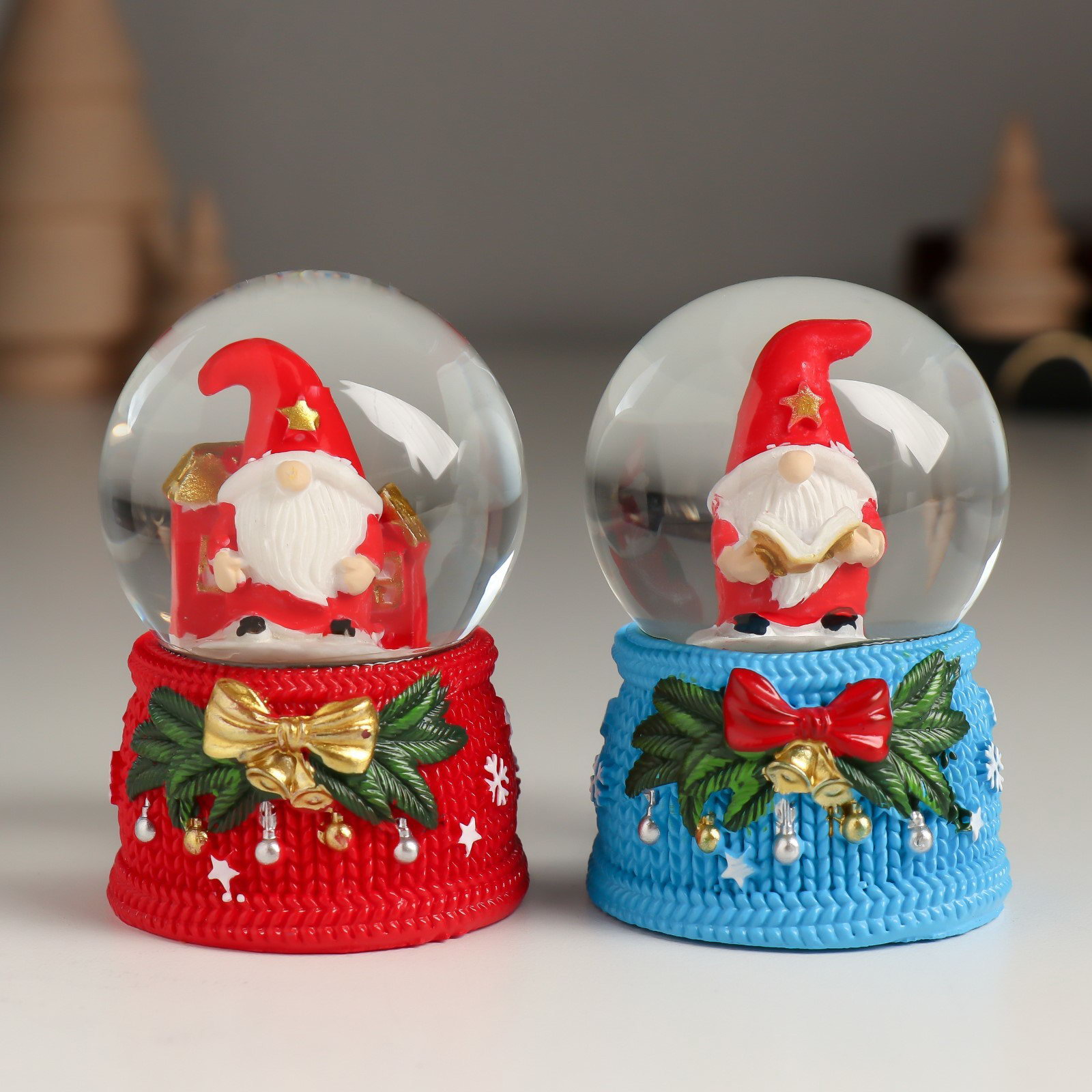 Снежный шар новогодний стеклянный "Гномик с бантом и колокольчиками", 4.6x4.6x6.7 см, МИКС, 4.6x4.6x6.7 см., Китай