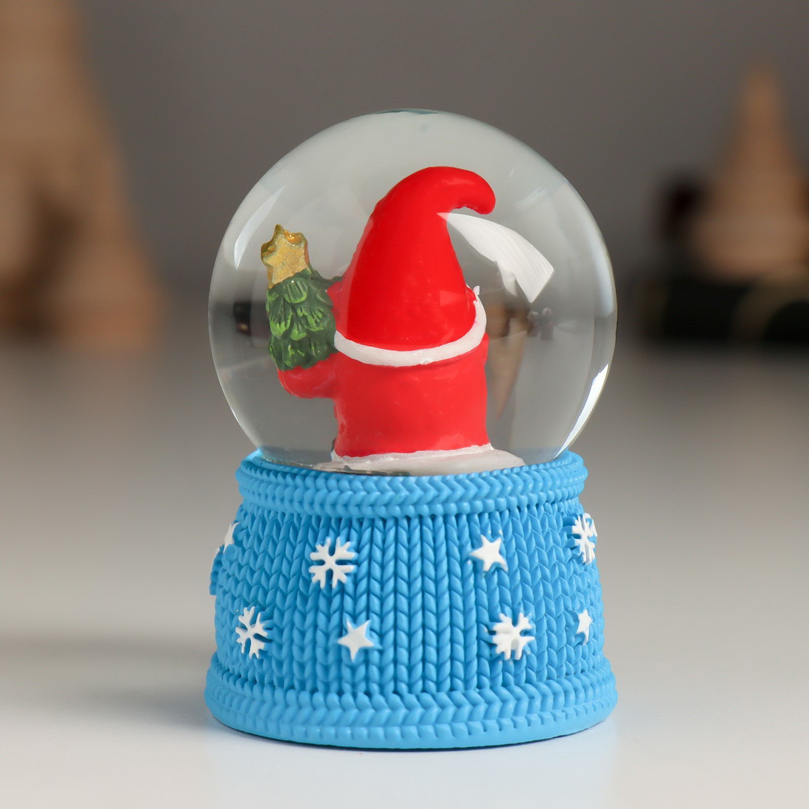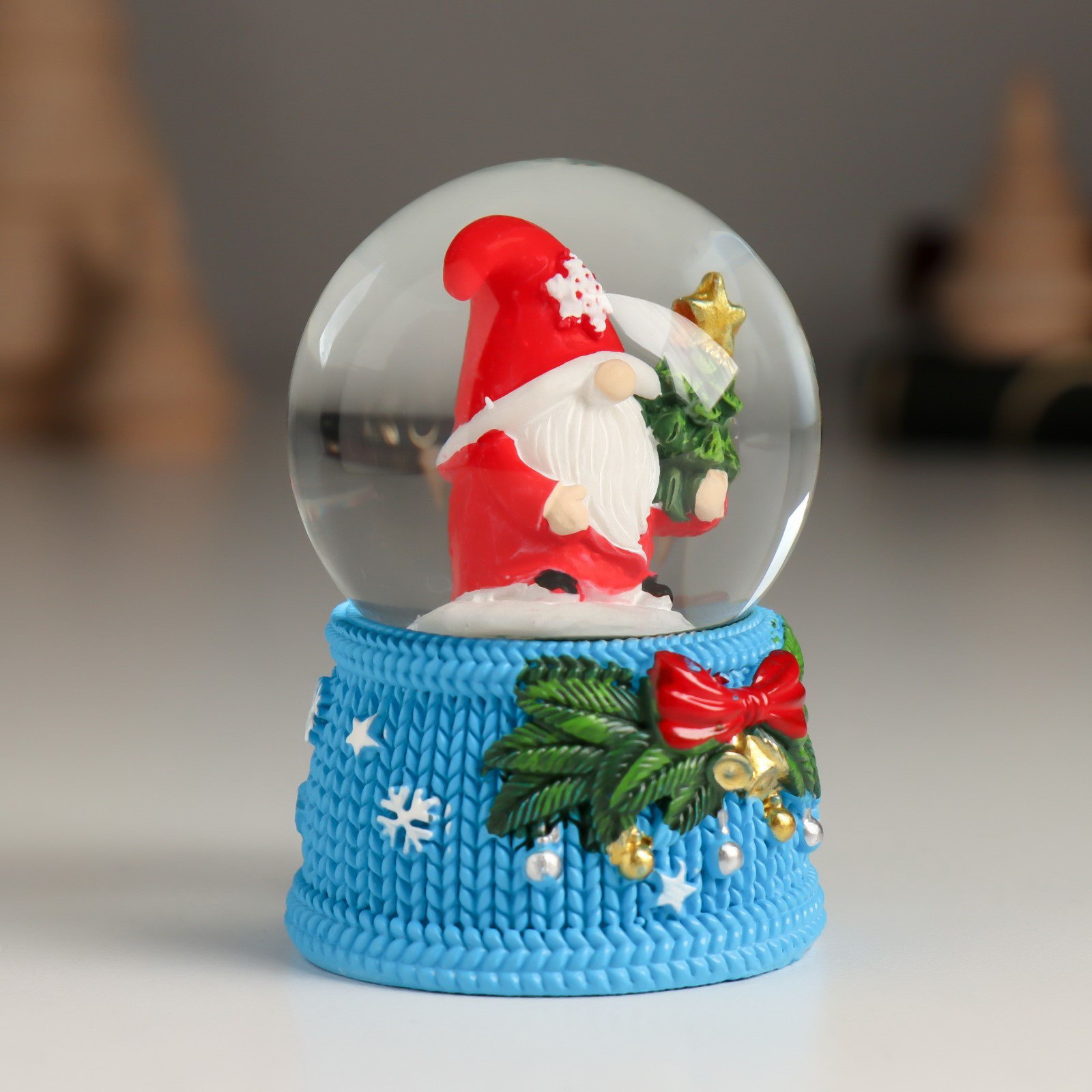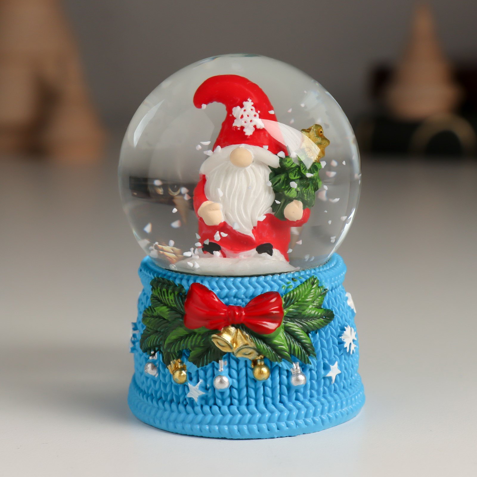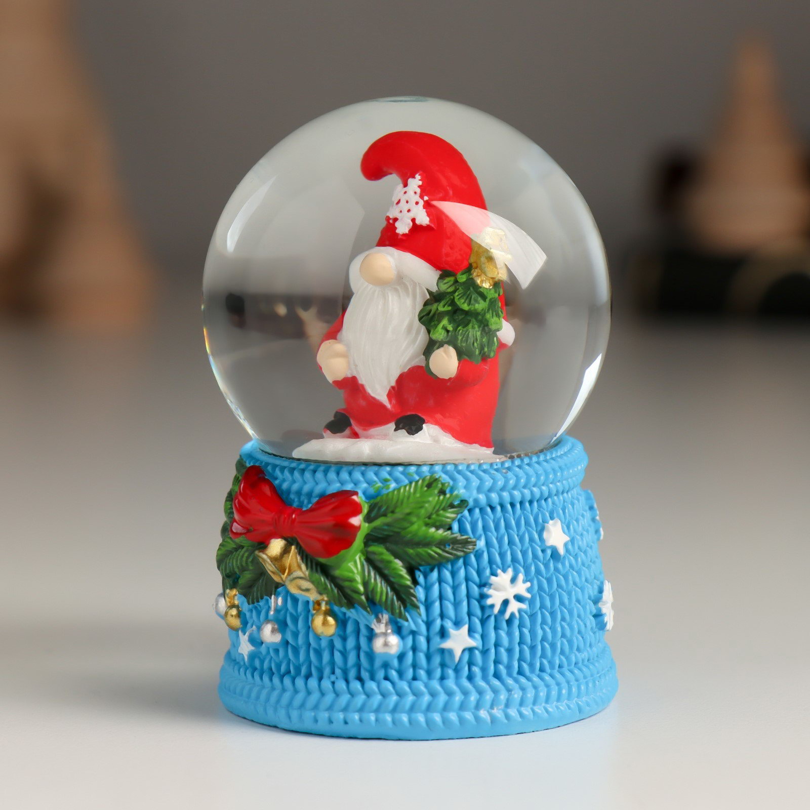 Снежный шар новогодний стеклянный "Гномик с бантом и колокольчиками", 4.6x4.6x6.7 см, МИКС, 4.6x4.6x6.7 см., Китай