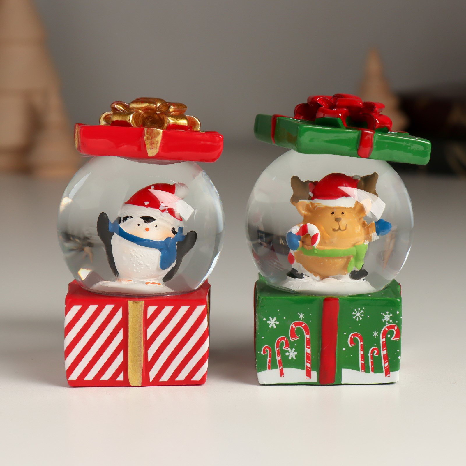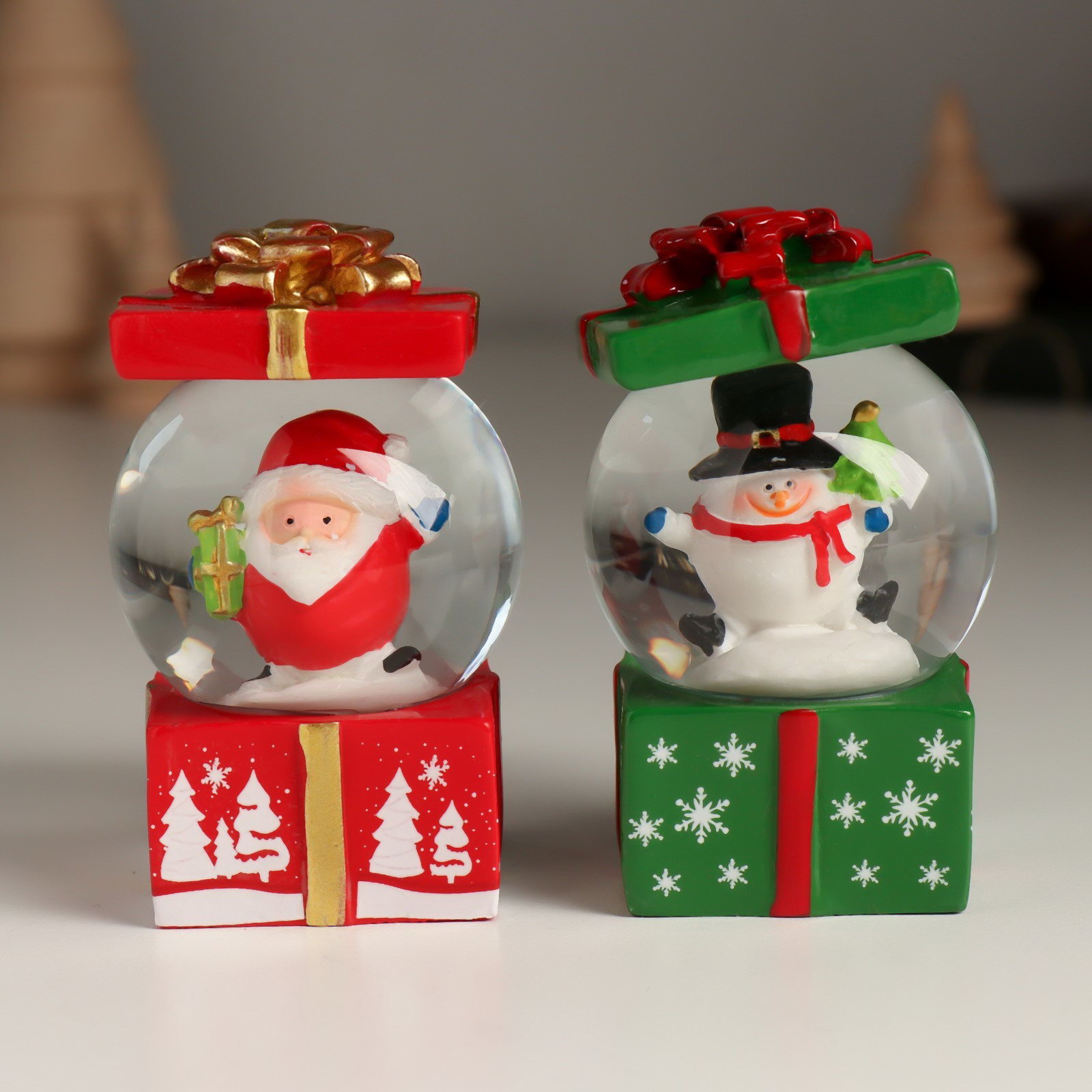 Снежный шар новогодний стеклянный "Персонаж в подарке", 4.5x4.5x7.3 см, МИКС, 4.5x4.5x7.3 см., Китай
