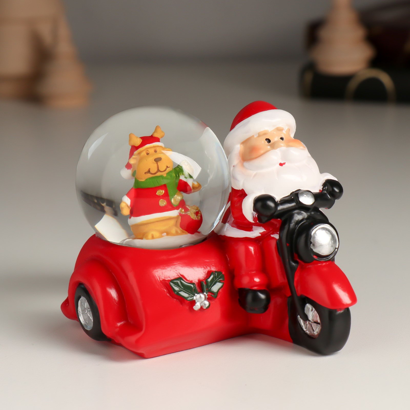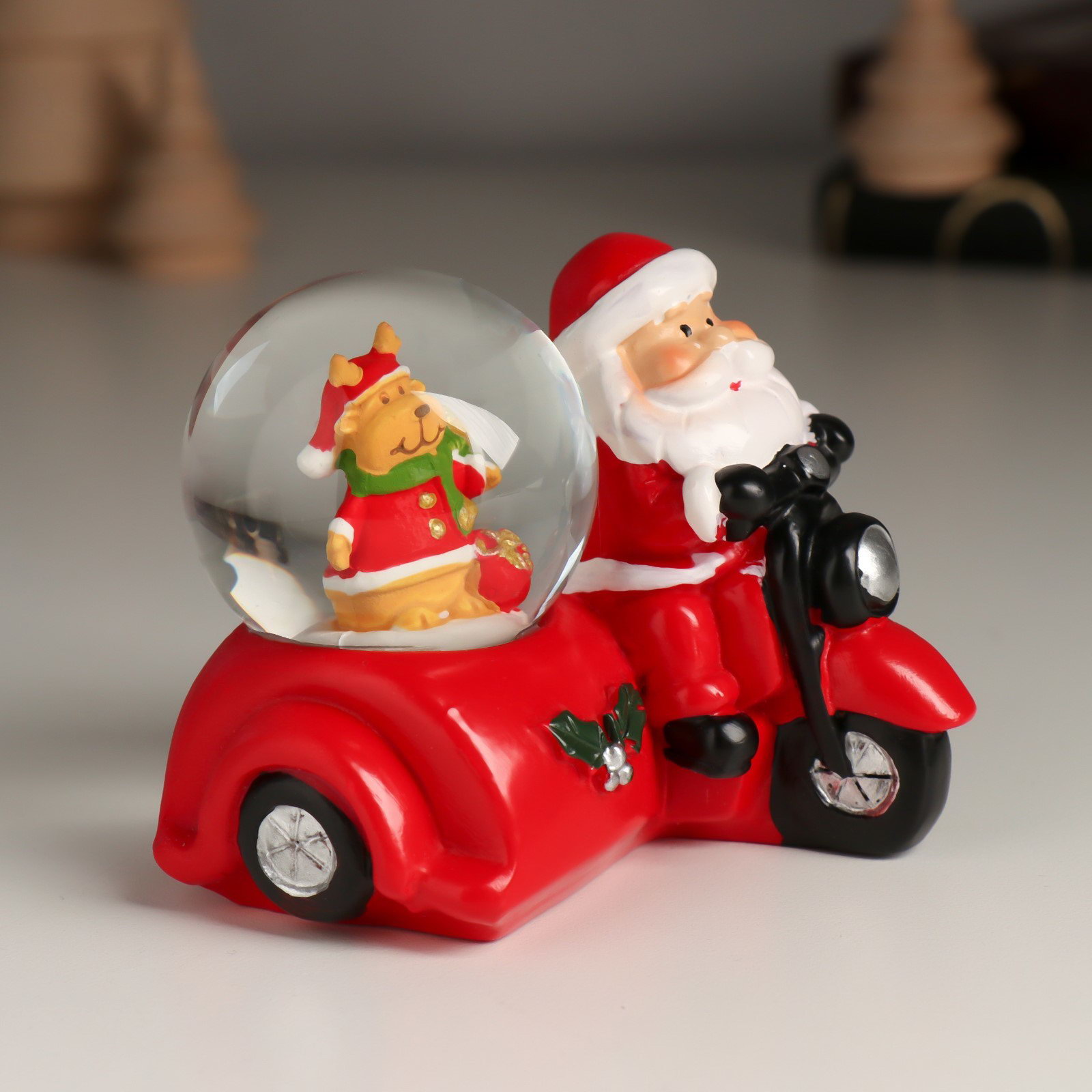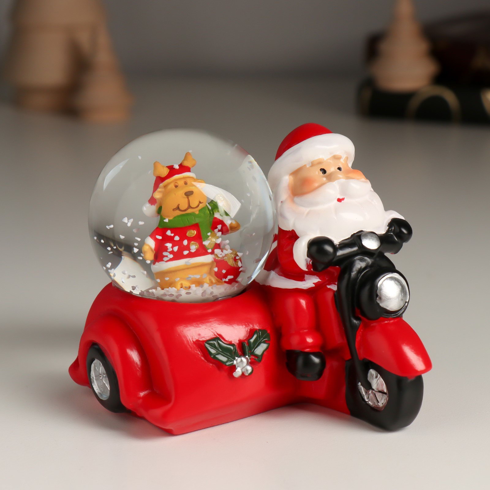 Снежный шар новогодний стеклянный "Дед Мороз на мотоцикле с коляской", 7.5x8.2x7 см, МИКС, 8.2x7.5x7 см., Китай