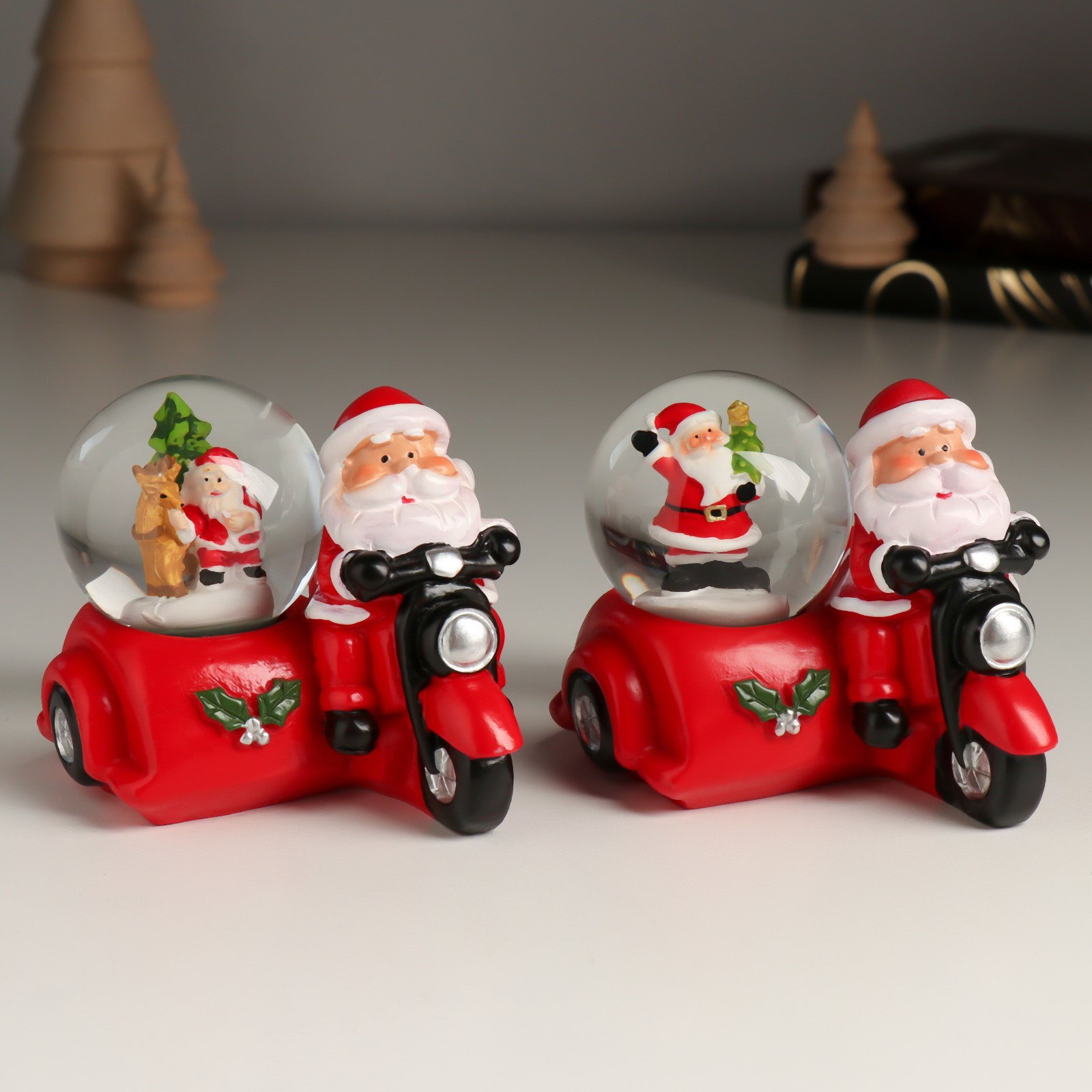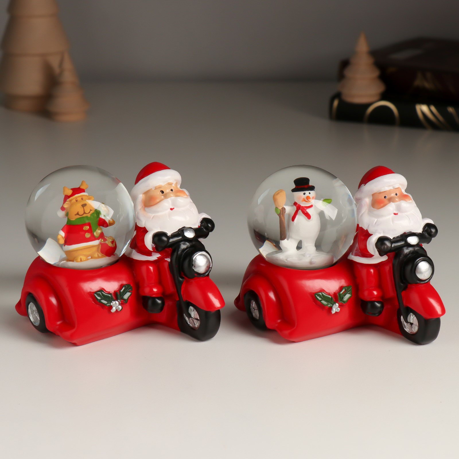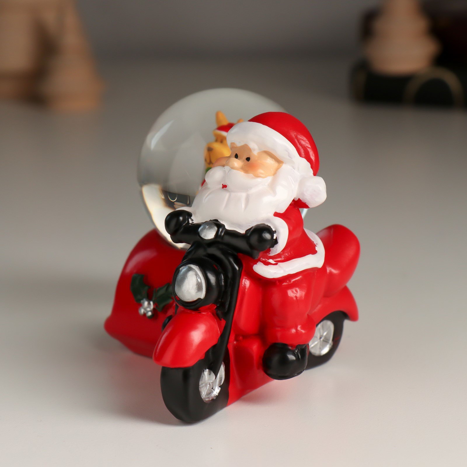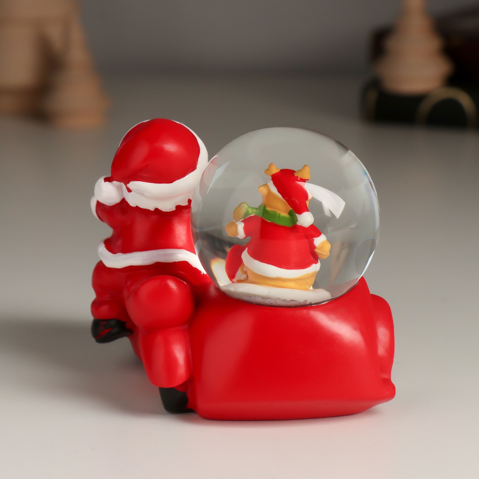 Снежный шар новогодний стеклянный "Дед Мороз на мотоцикле с коляской", 7.5x8.2x7 см, МИКС, 8.2x7.5x7 см., Китай