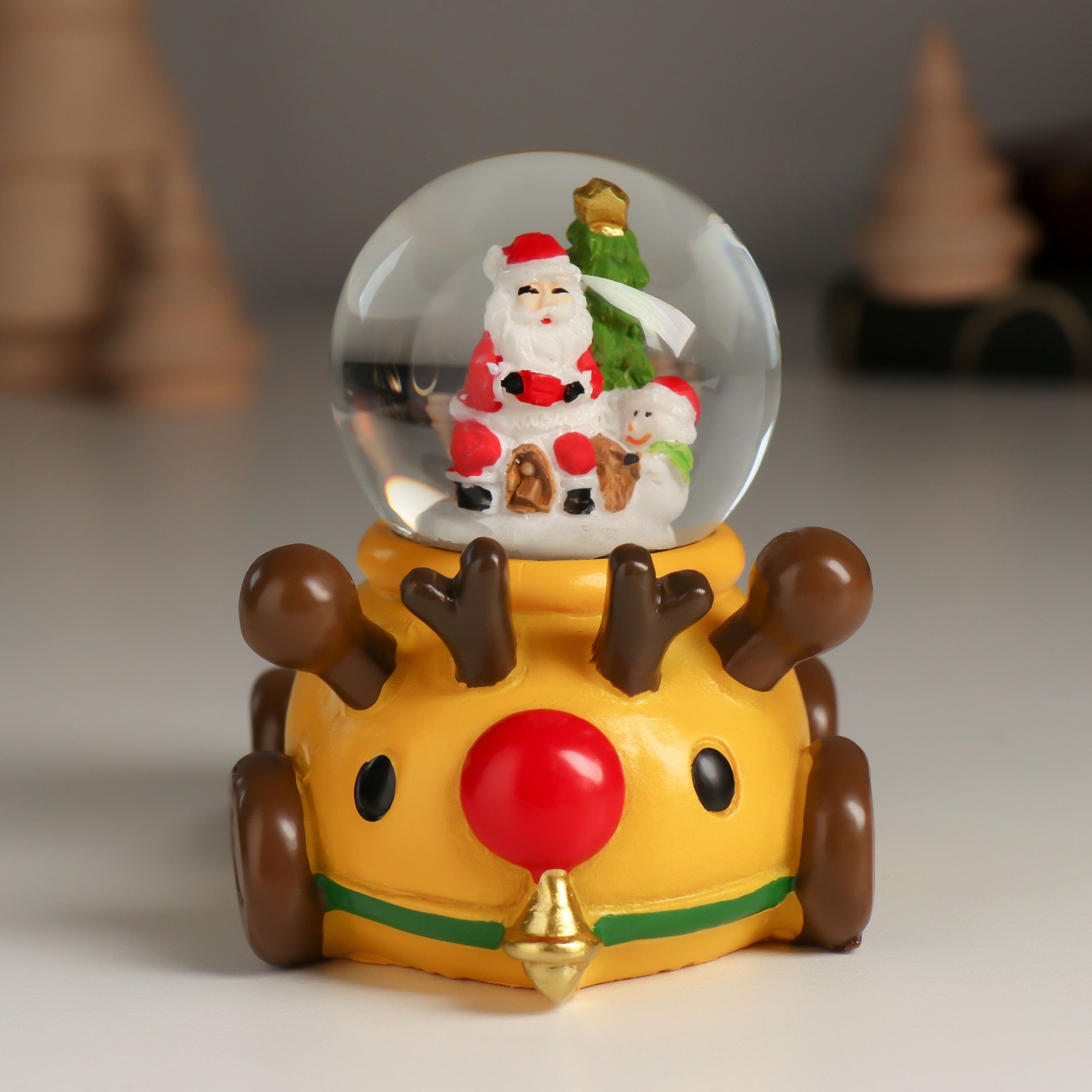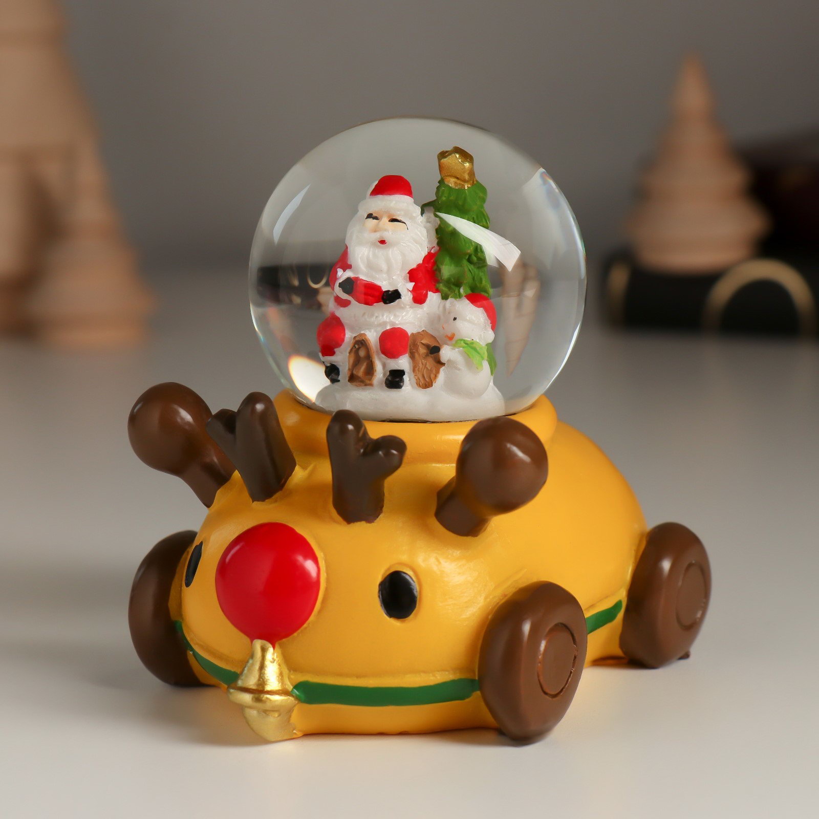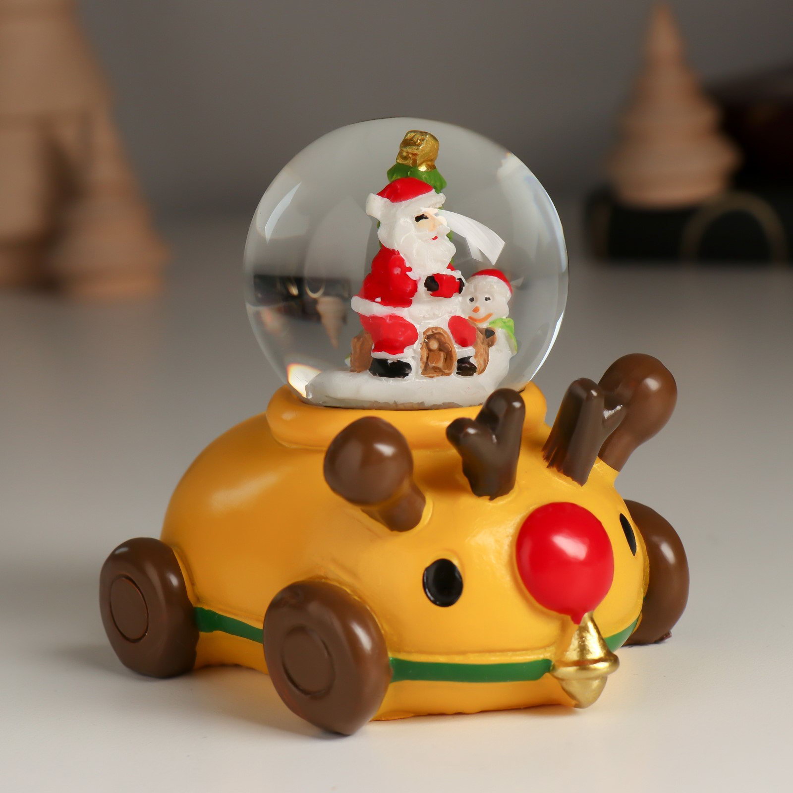 Снежный шар новогодний стеклянный "Дед Мороз или Снеговик на лосемобиле", 8.5x6.5x8 см, МИКС, 6.5x8.5x8 см., Китай