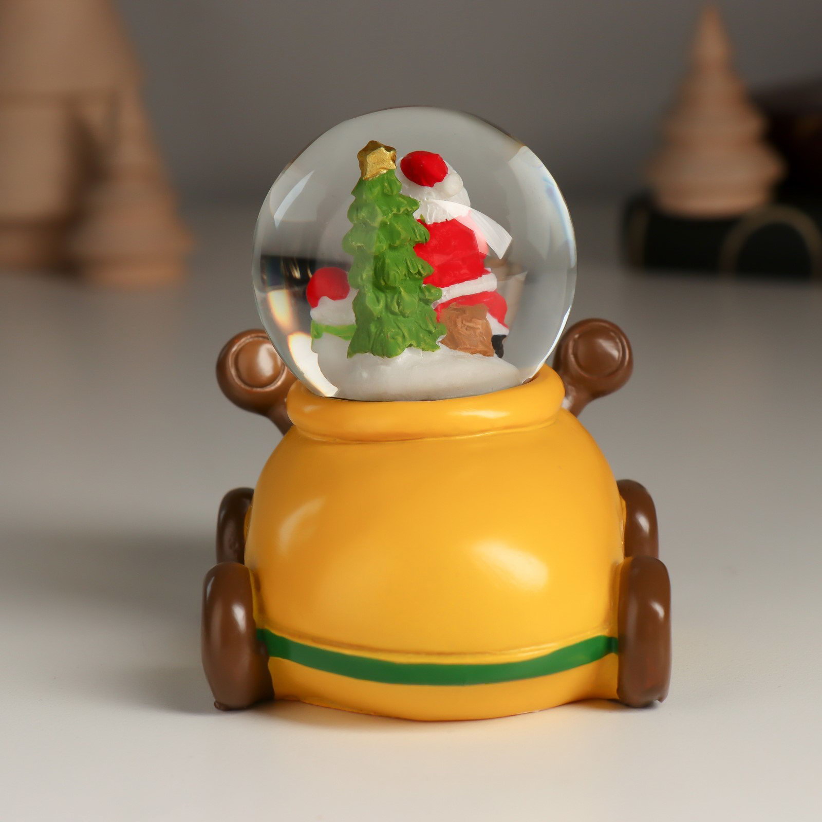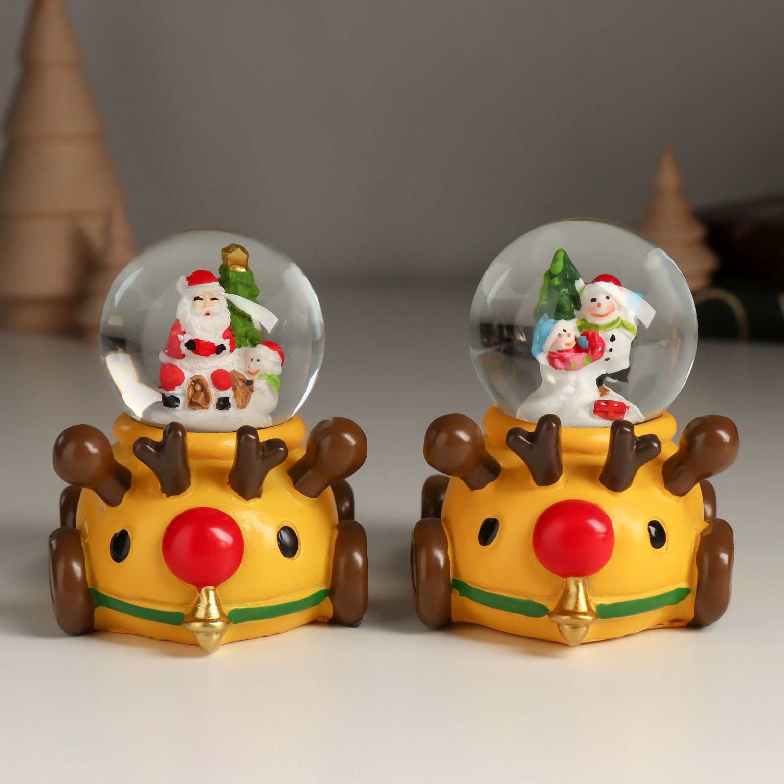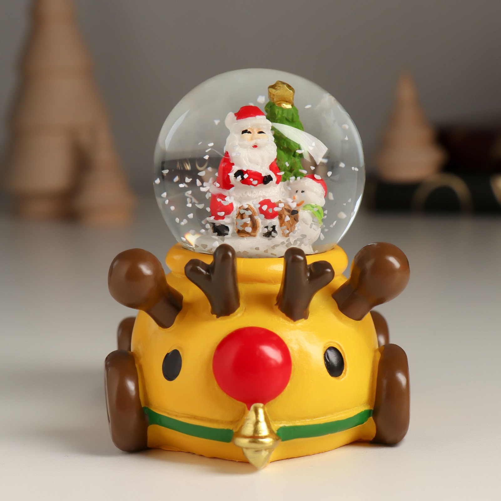 Снежный шар новогодний стеклянный "Дед Мороз или Снеговик на лосемобиле", 8.5x6.5x8 см, МИКС, 6.5x8.5x8 см., Китай