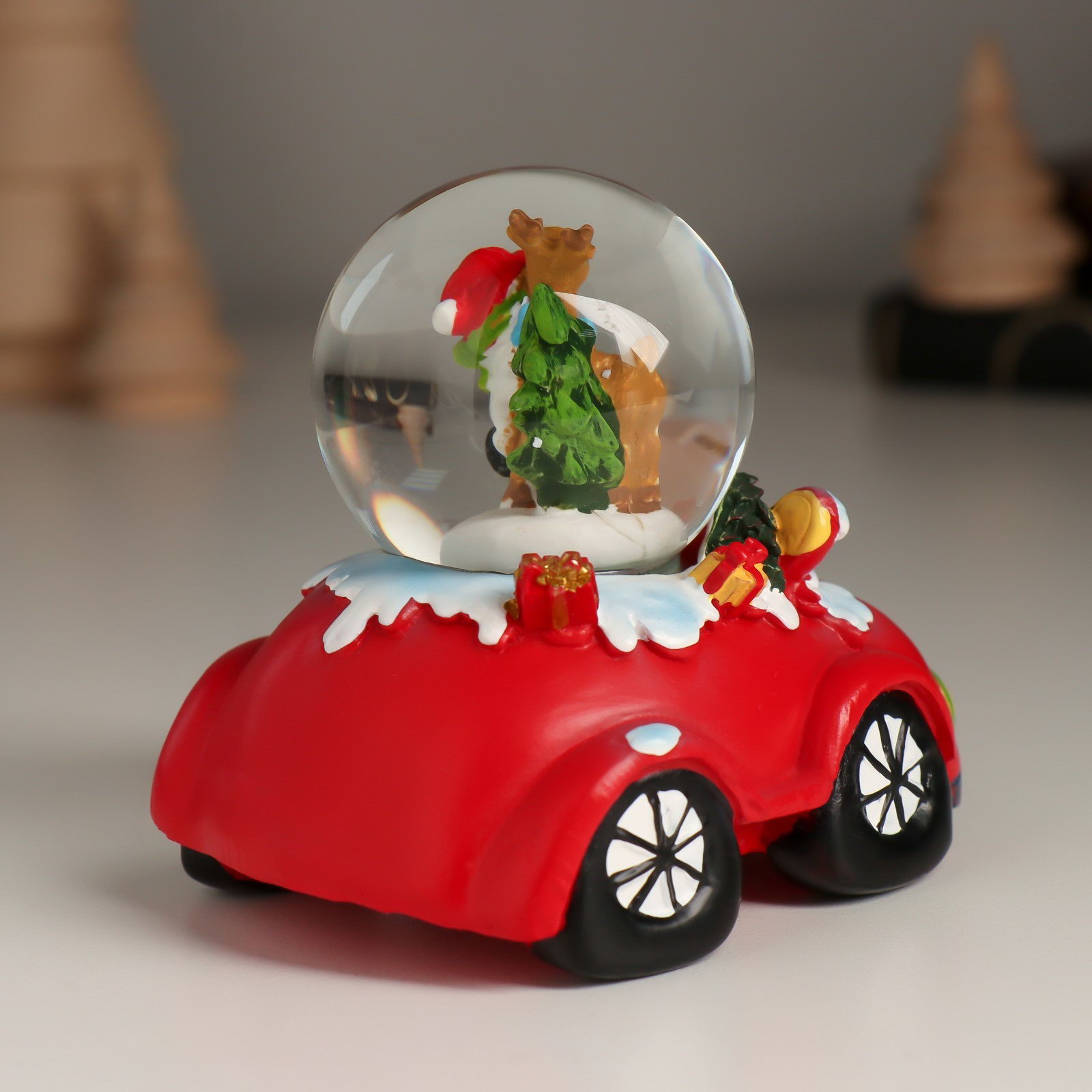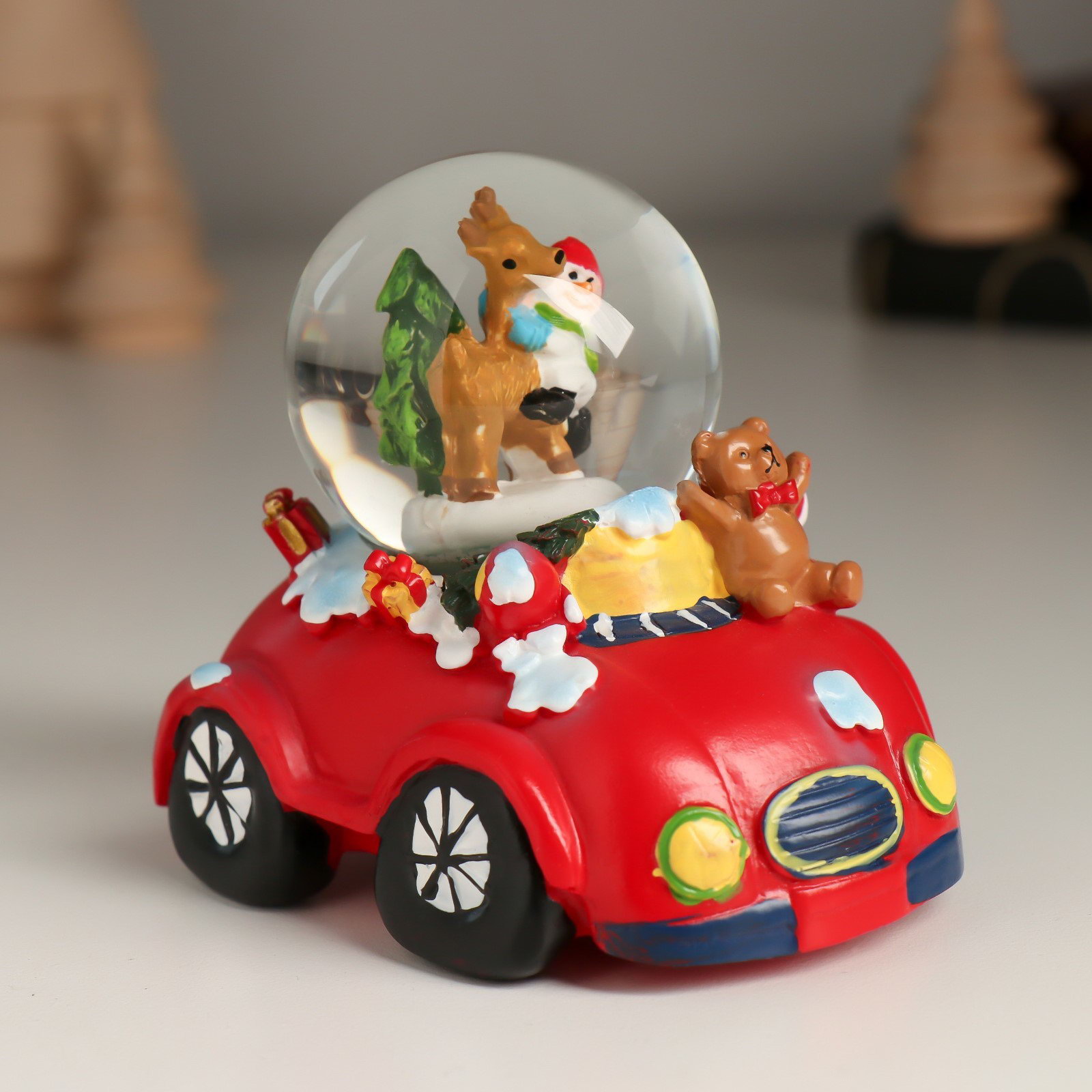Снежный шар новогодний стеклянный "Автомобиль", 8.3x6.6x7.8 см, МИКС, 6.6x8.3x7.8 см., Китай