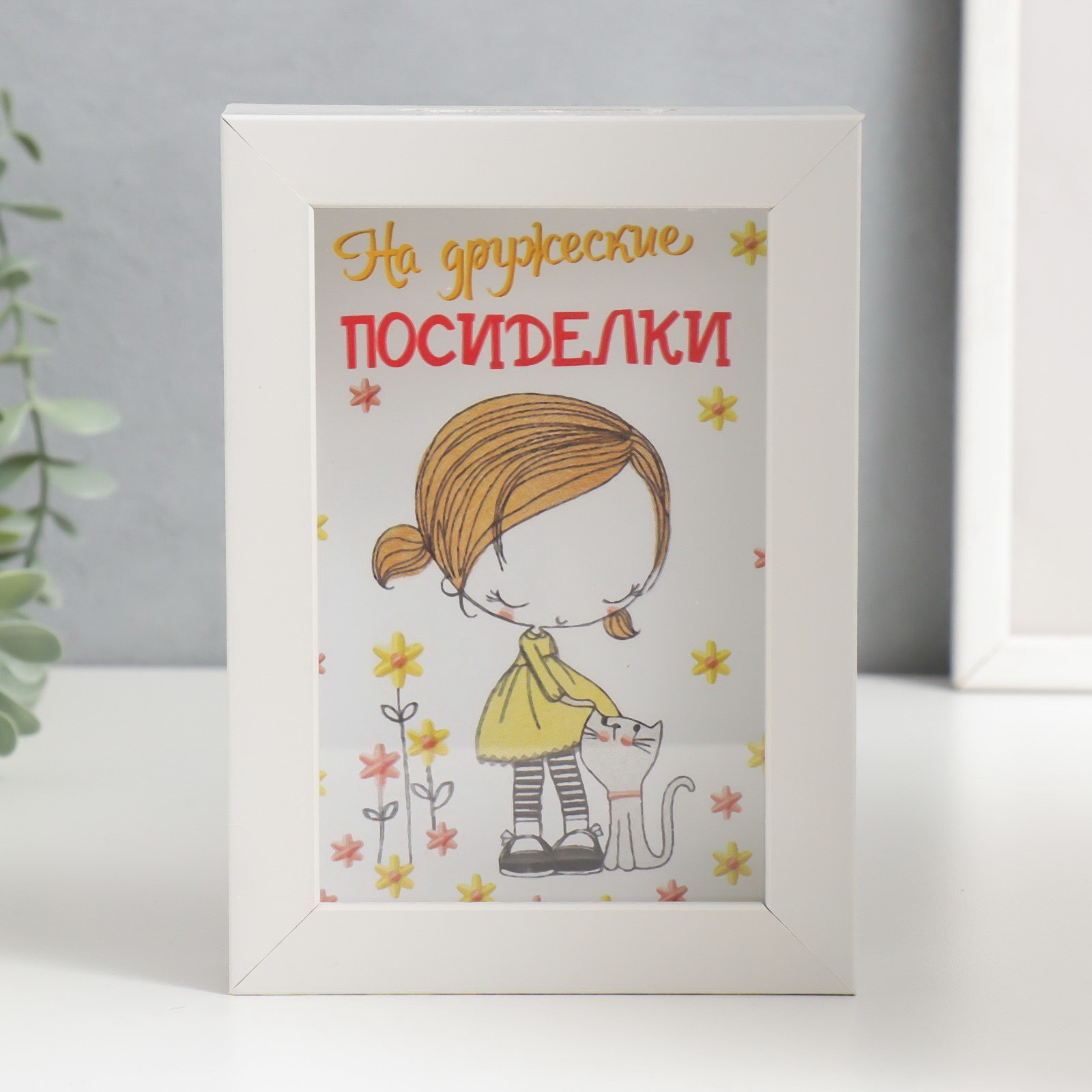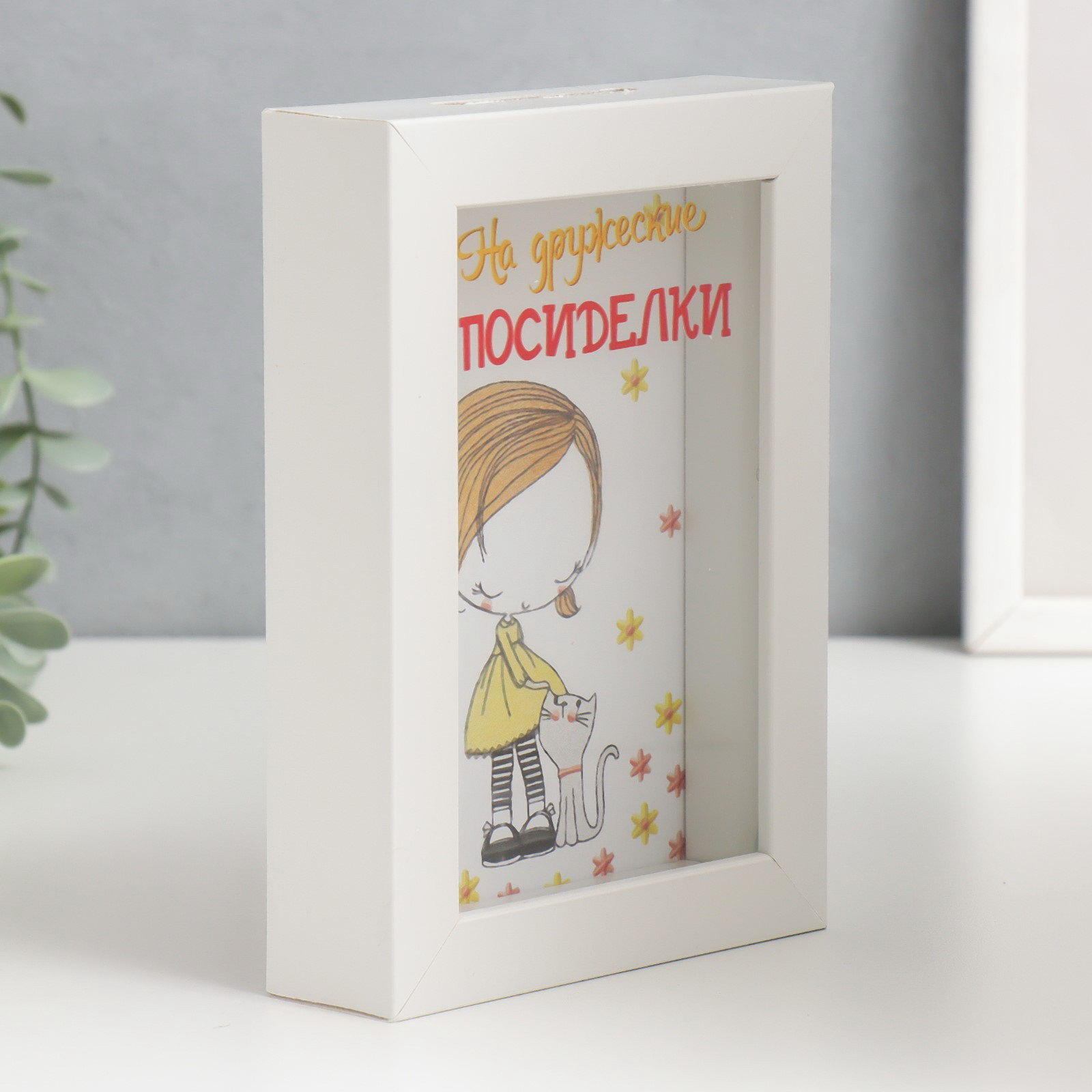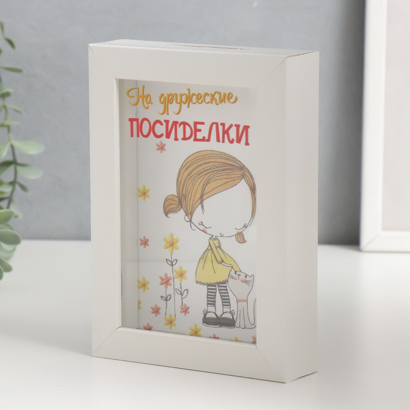 Копилка интерьерная пластик "На дружеские посиделки" 17х12х3.8 см, 12x3.8x17 см., Китай