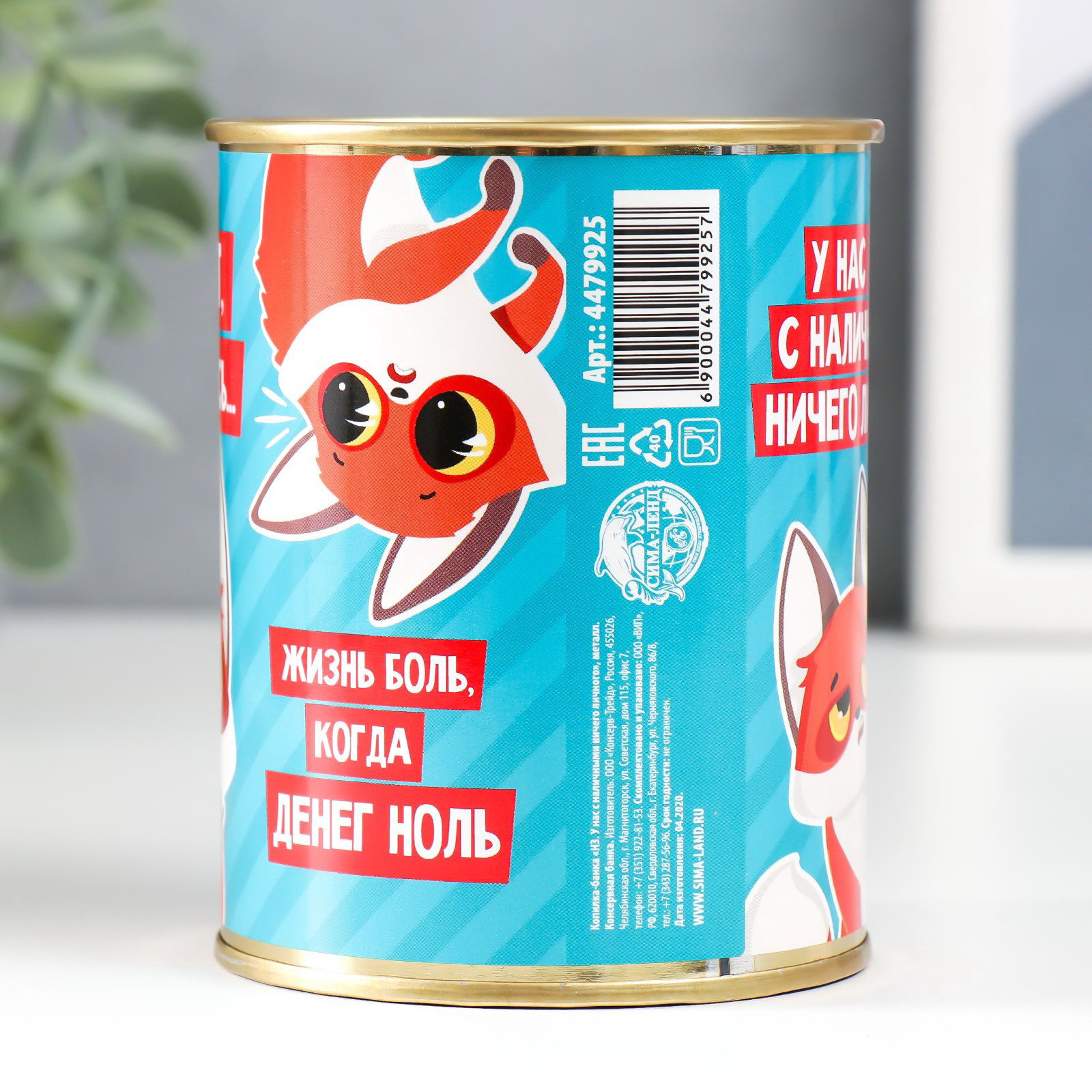 Копилка для денег "Банка. НЗ. У нас с наличными ничего личного.", металл, 7.3x9.5 см, Сима-ленд, Россия