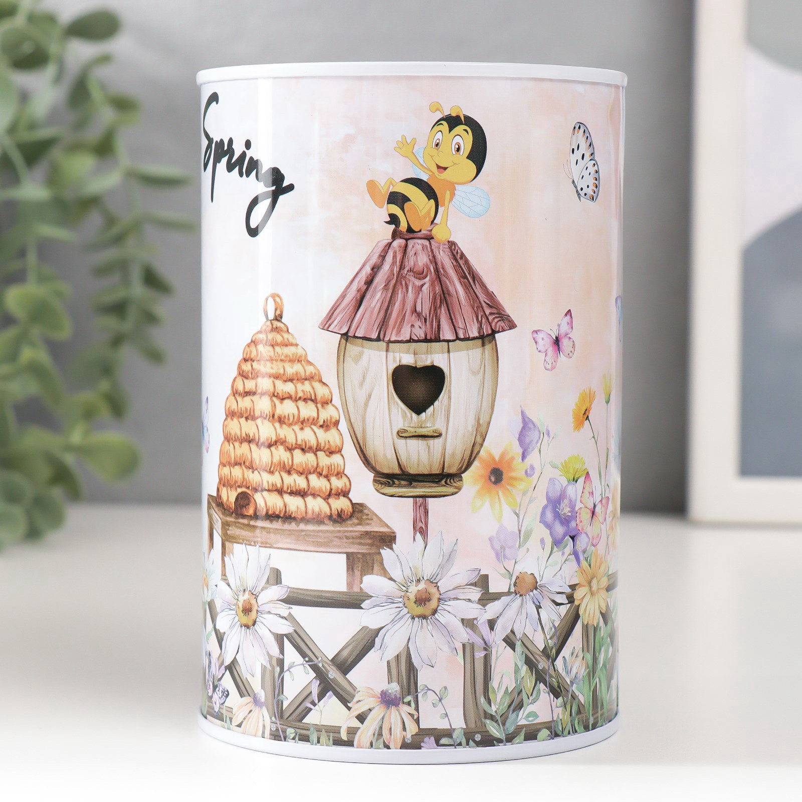 Копилка для денег "Банка. Пчёлки", металл, 8x8x12.5 см, МИКС, 8x8x12.5 см., Китай