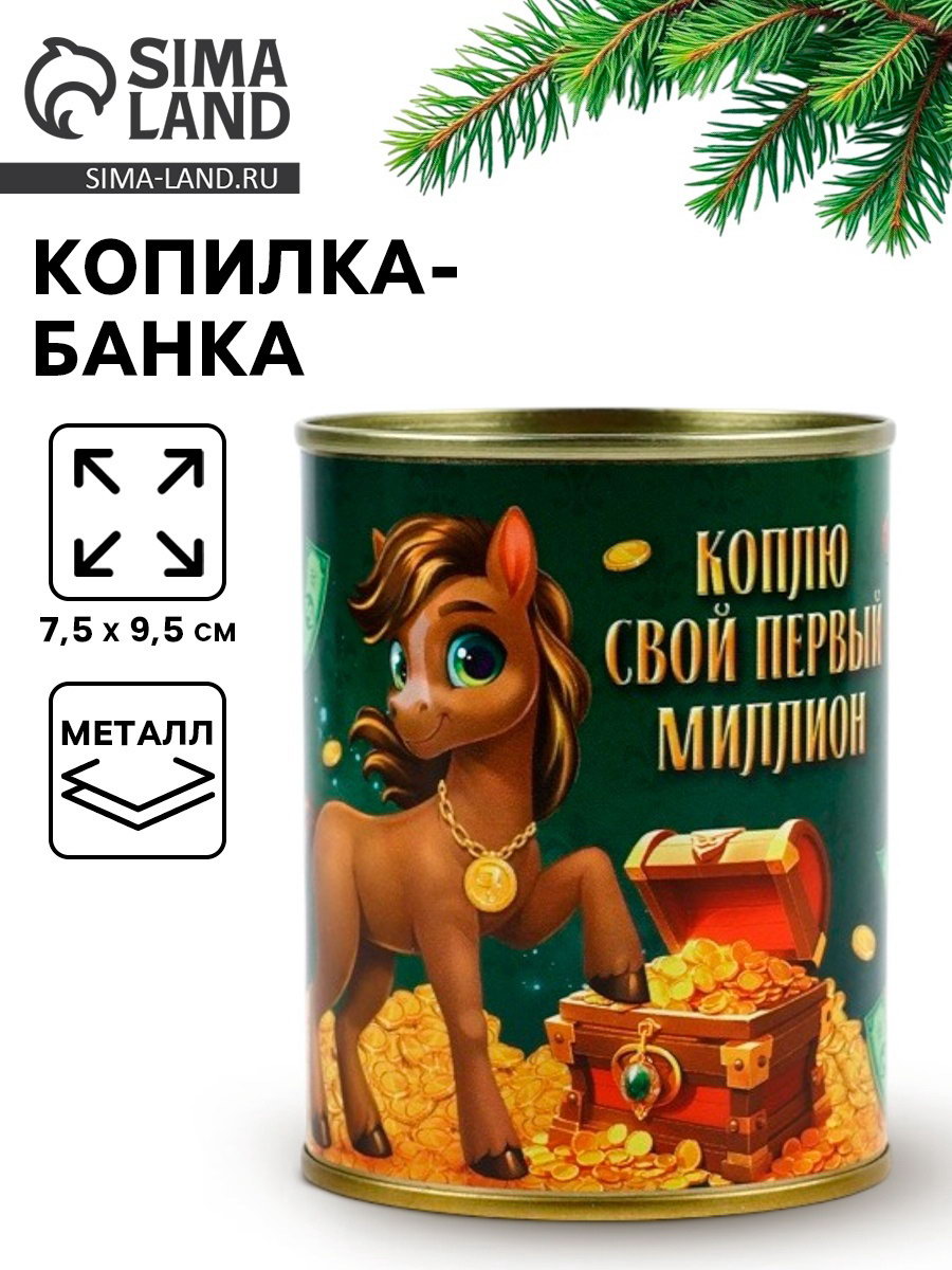 Копилка банка металл новогодняя, "Первый миллион", 7.5x9.5 см, Сима-ленд, Россия