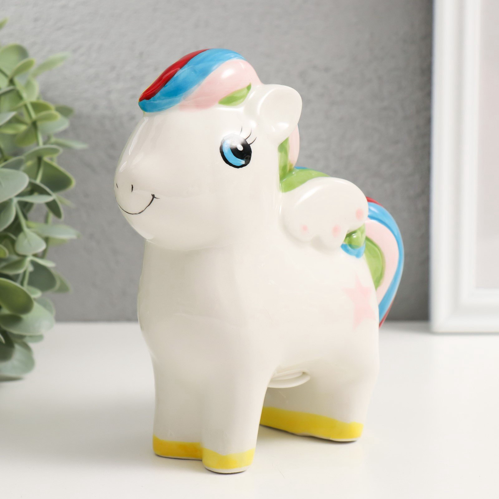 Копилка для денег "Лошадка с крыльями и яркой гривой", керамика, 13x6.5x16 см, 6.5x13x16 см., Китай