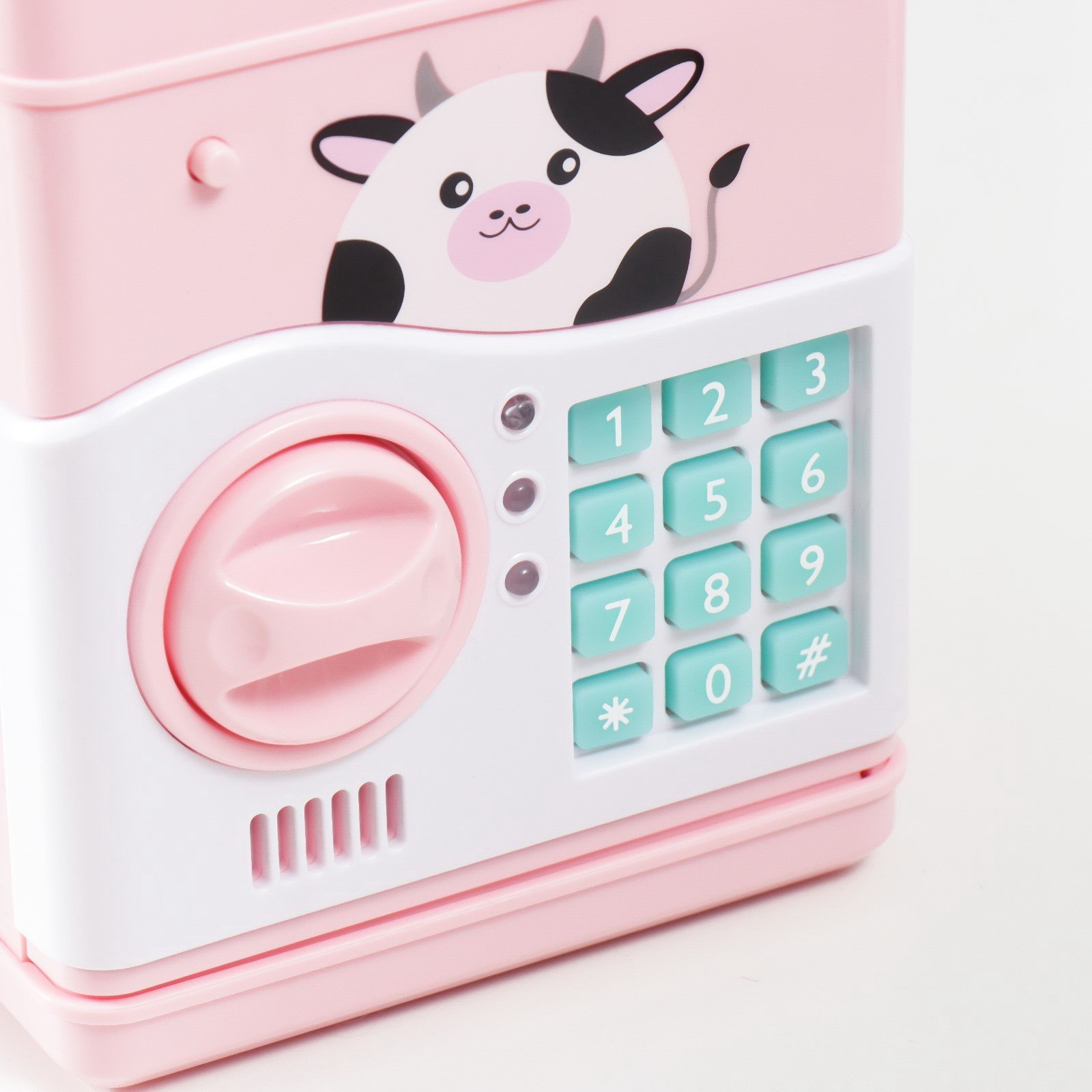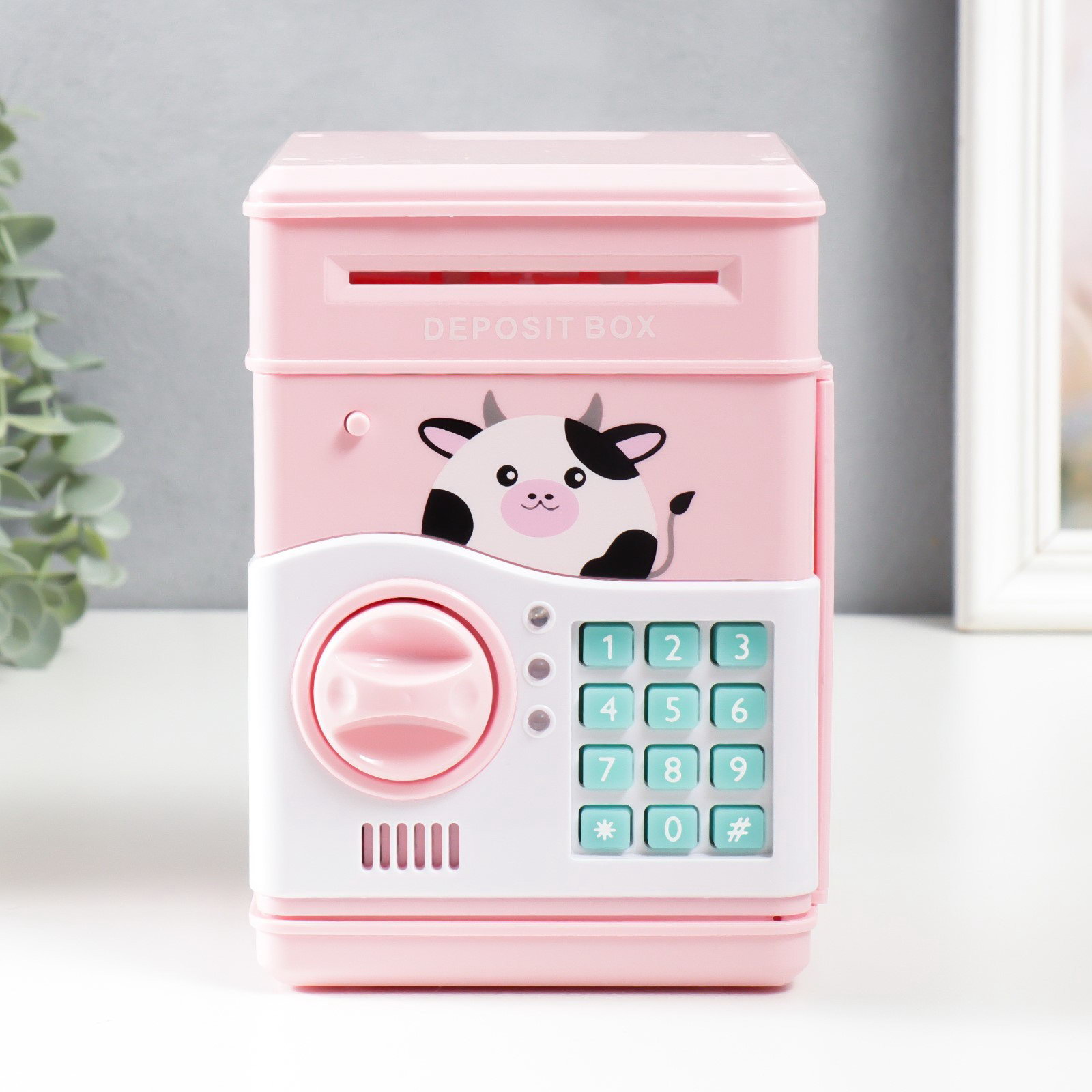 Копилка для денег с кодовым замком "Сейф. Коровка", звуковая, пластик, от батареек АА, розовый, 13x12x19 см, 12x13x19 см., Китай