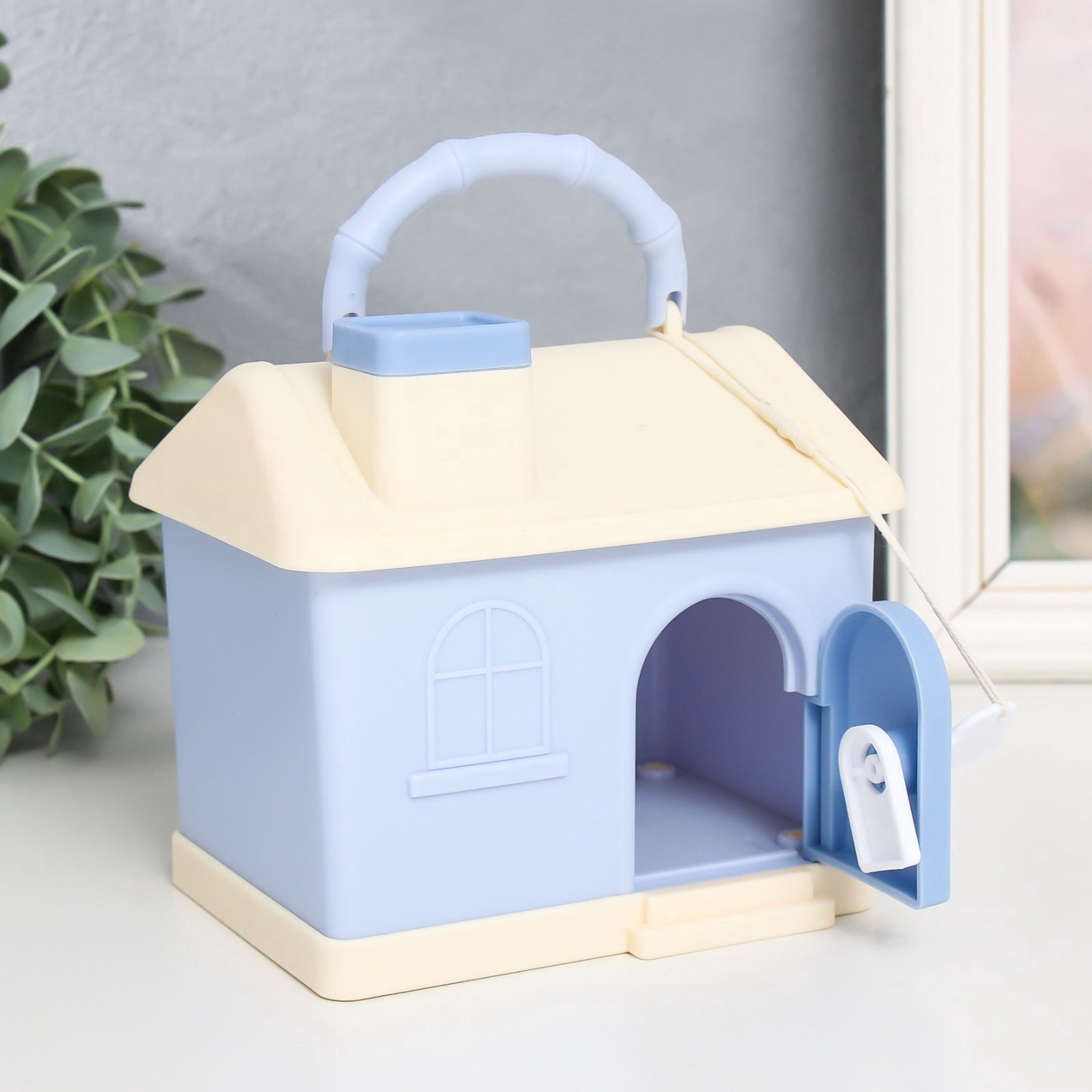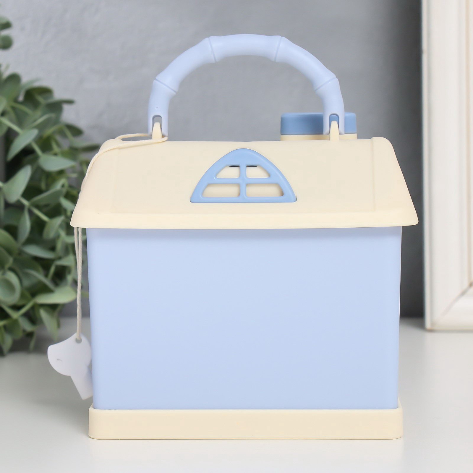 Копилка для денег с замком и ключом "Домик в нежных тонах", наклейки и декор для украшения, пластик, 14x10x13 см, МИКС, 10x14x13 см., Китай