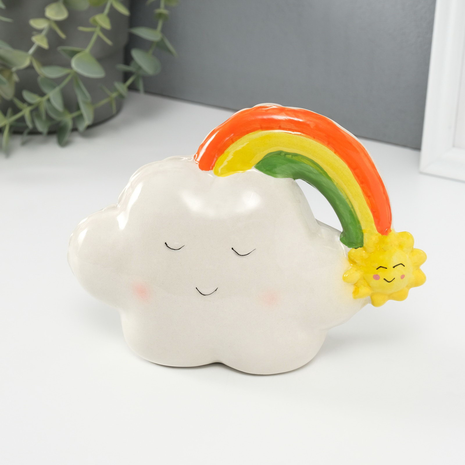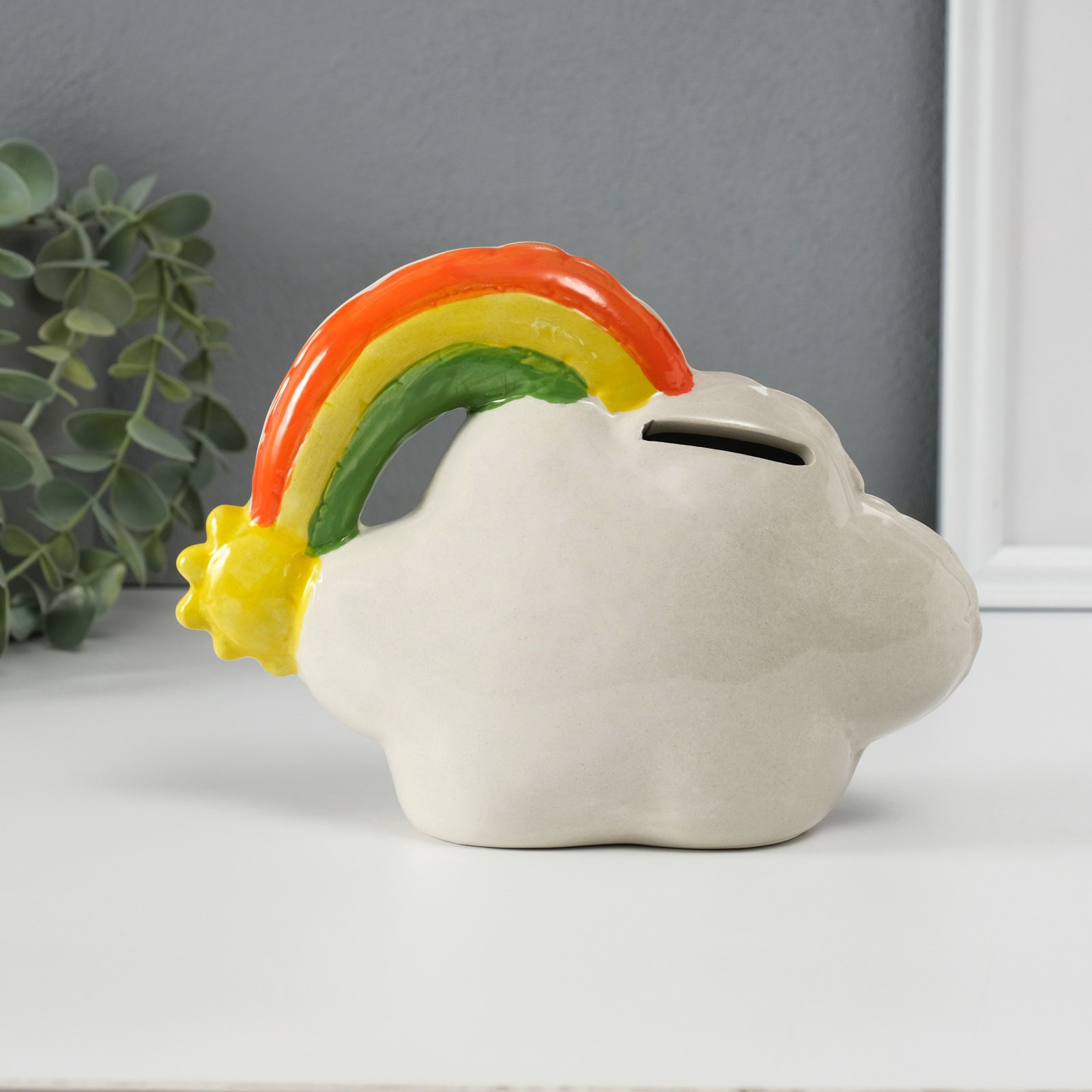 Копилка для денег "Облачко-шарик с радугой", керамика, 7.5x18x13.2 см, Китай