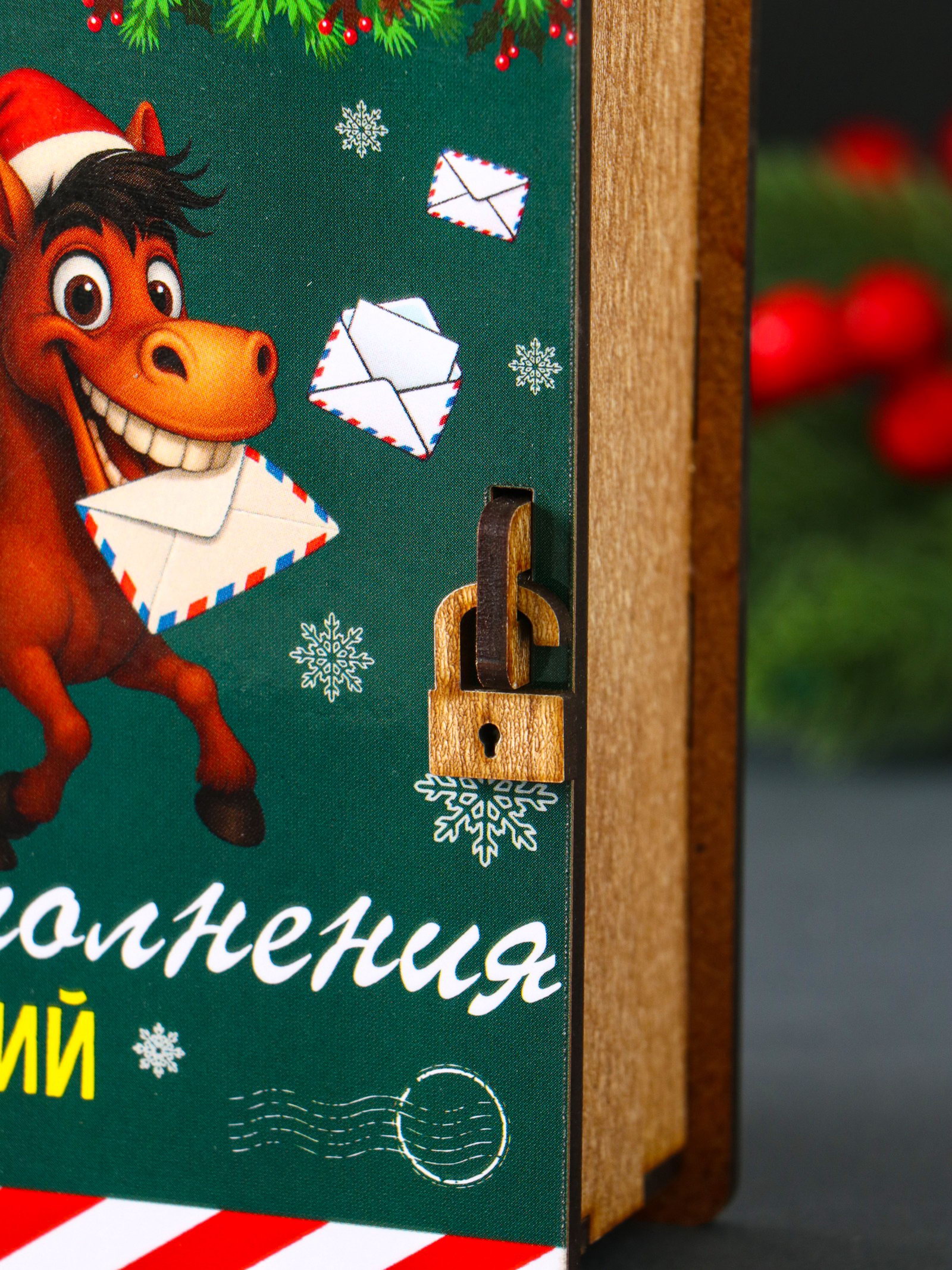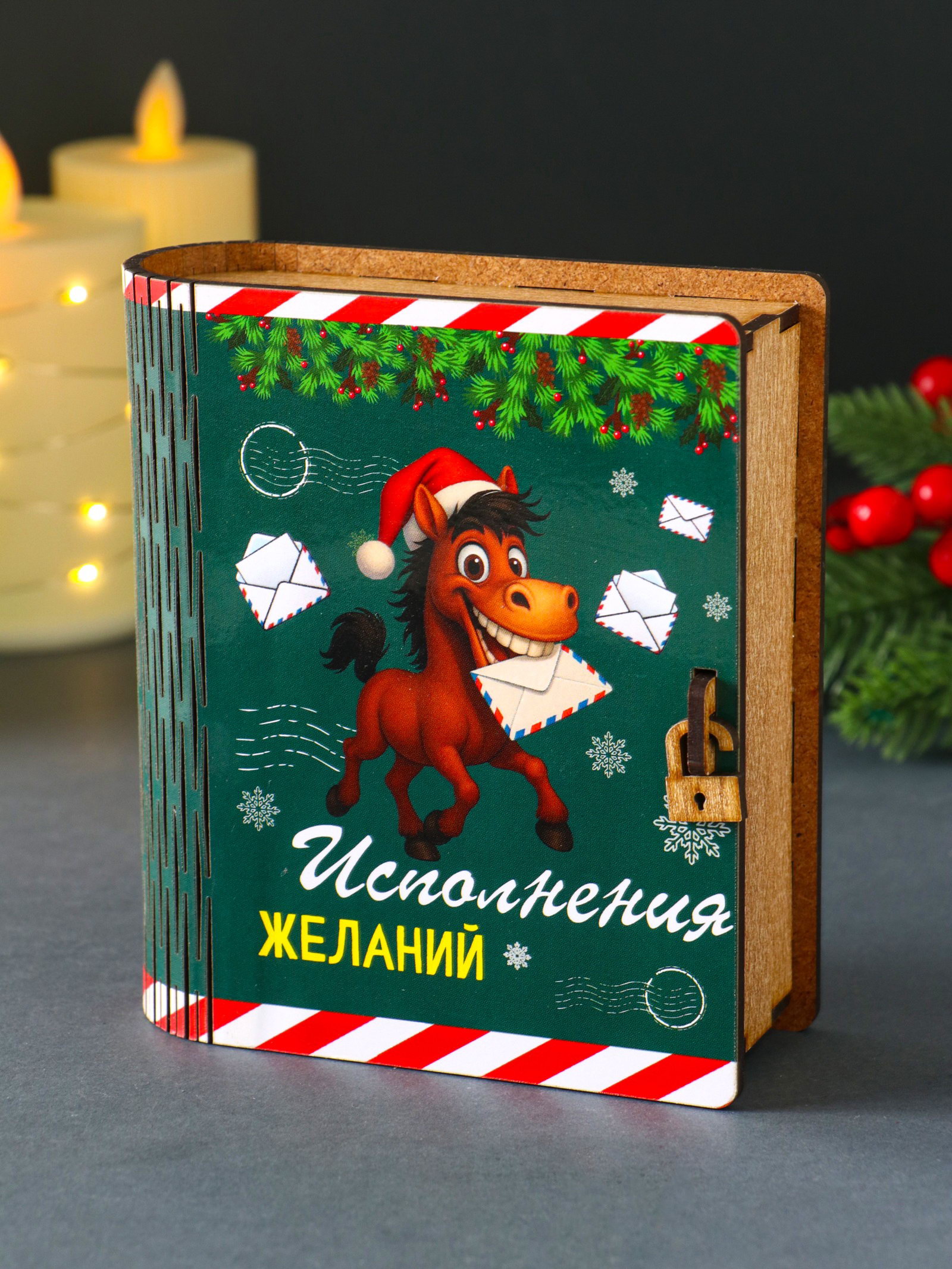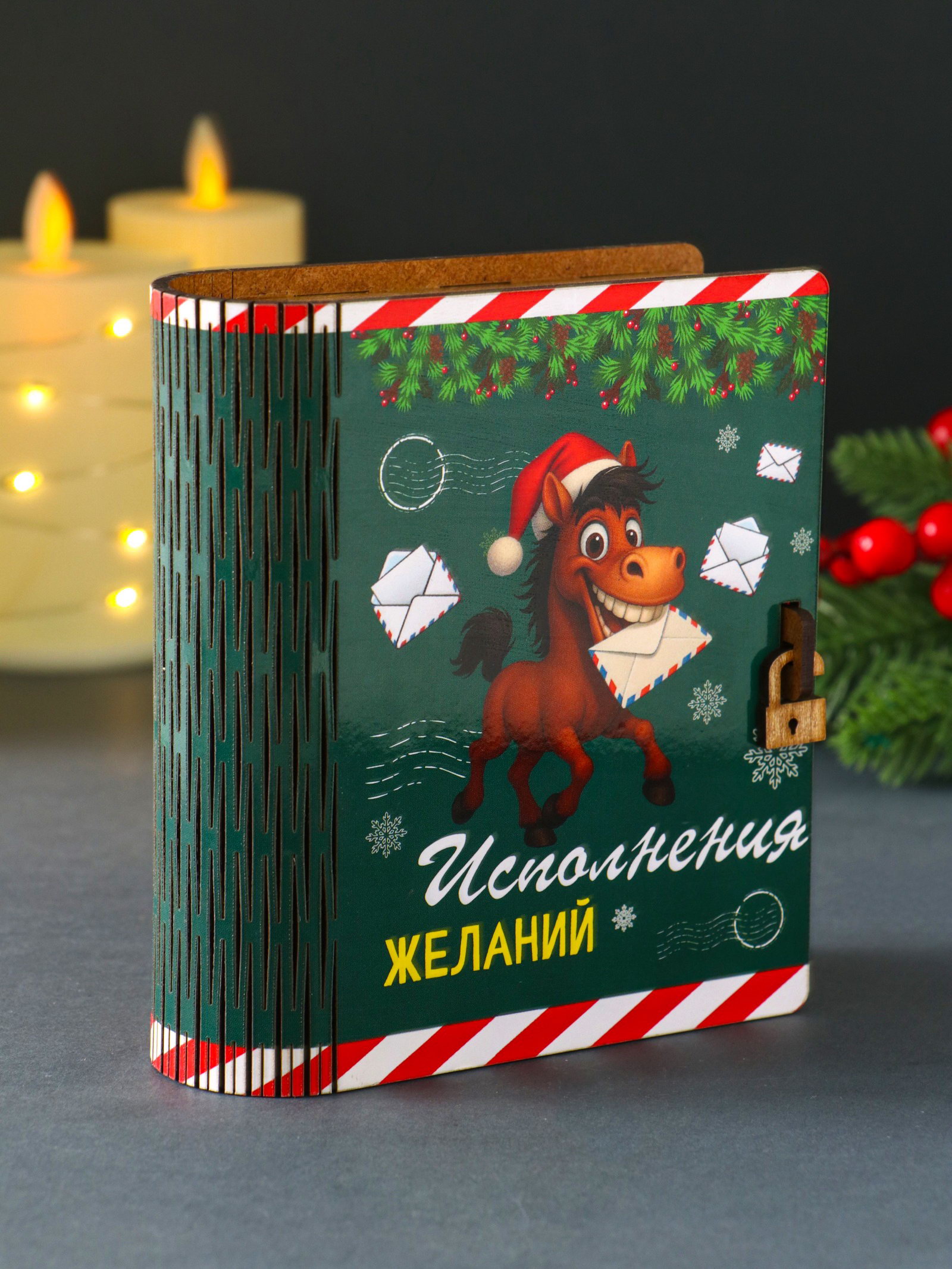 Новогодняя копилка-книга для денег "Конь: Исполнения желаний", купюр, монет, 14x12x5 см, Россия