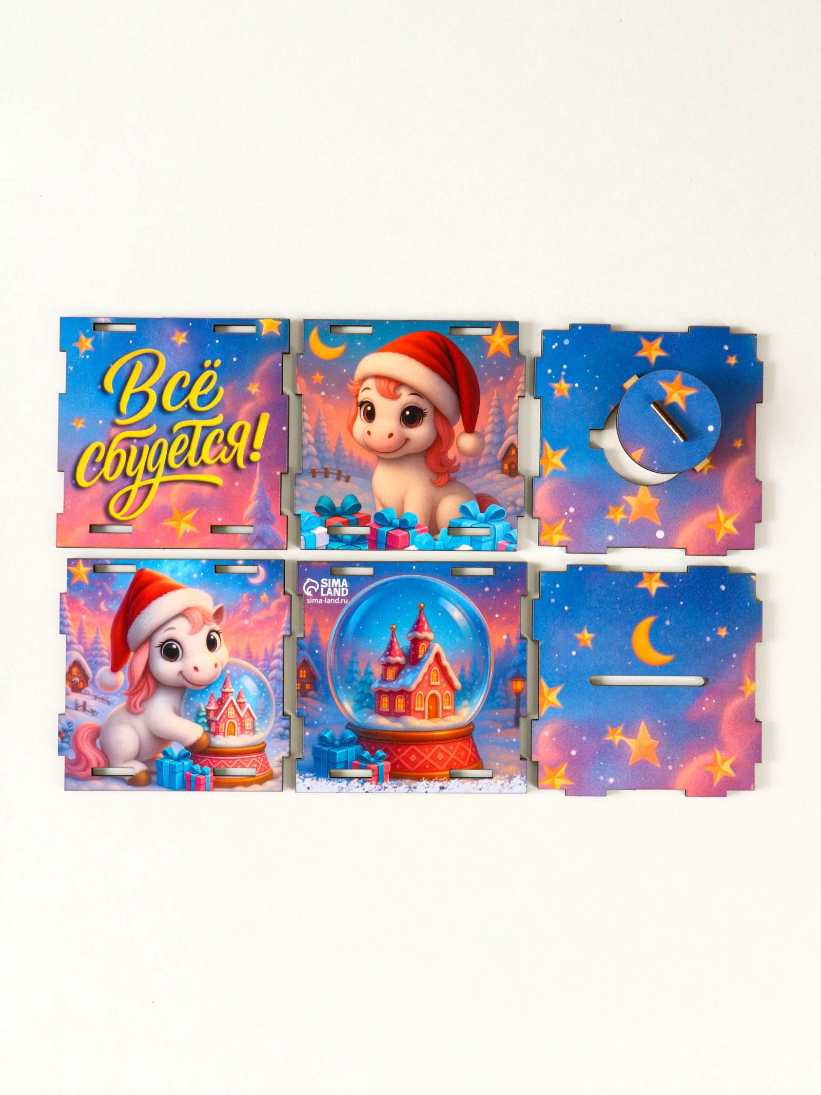 Деревянная копилка для денег "Лошадка новогодняя. Все сбудется", куб, 10x10x10 см,, Россия