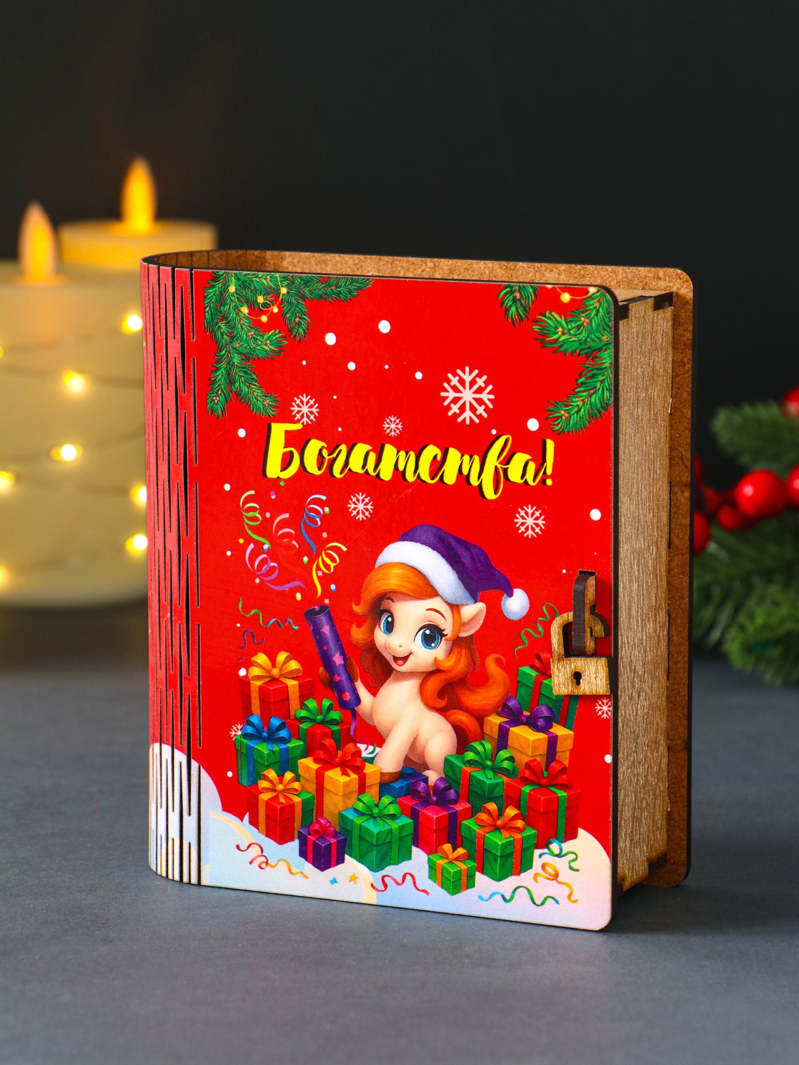 Новогодняя копилка-книга для денег "Лошадка: Богатства", 14x12x5 см, Россия
