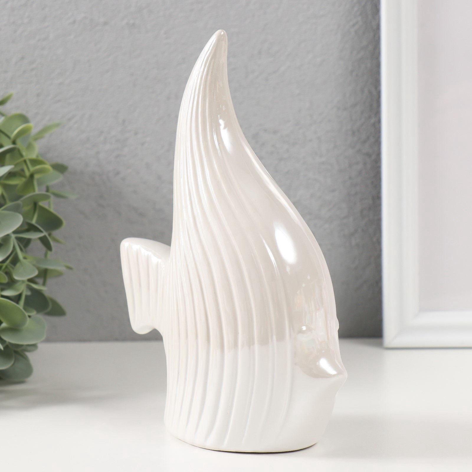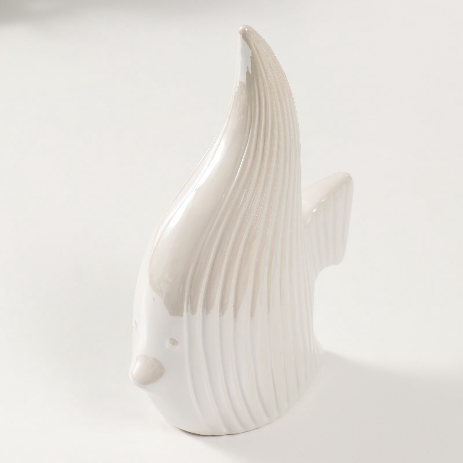 Копилка для денег "Рыбка скалярия", керамика, белый перламутр, 12.5x6.3x18 см, 6.3x12.5x18 см., Китай