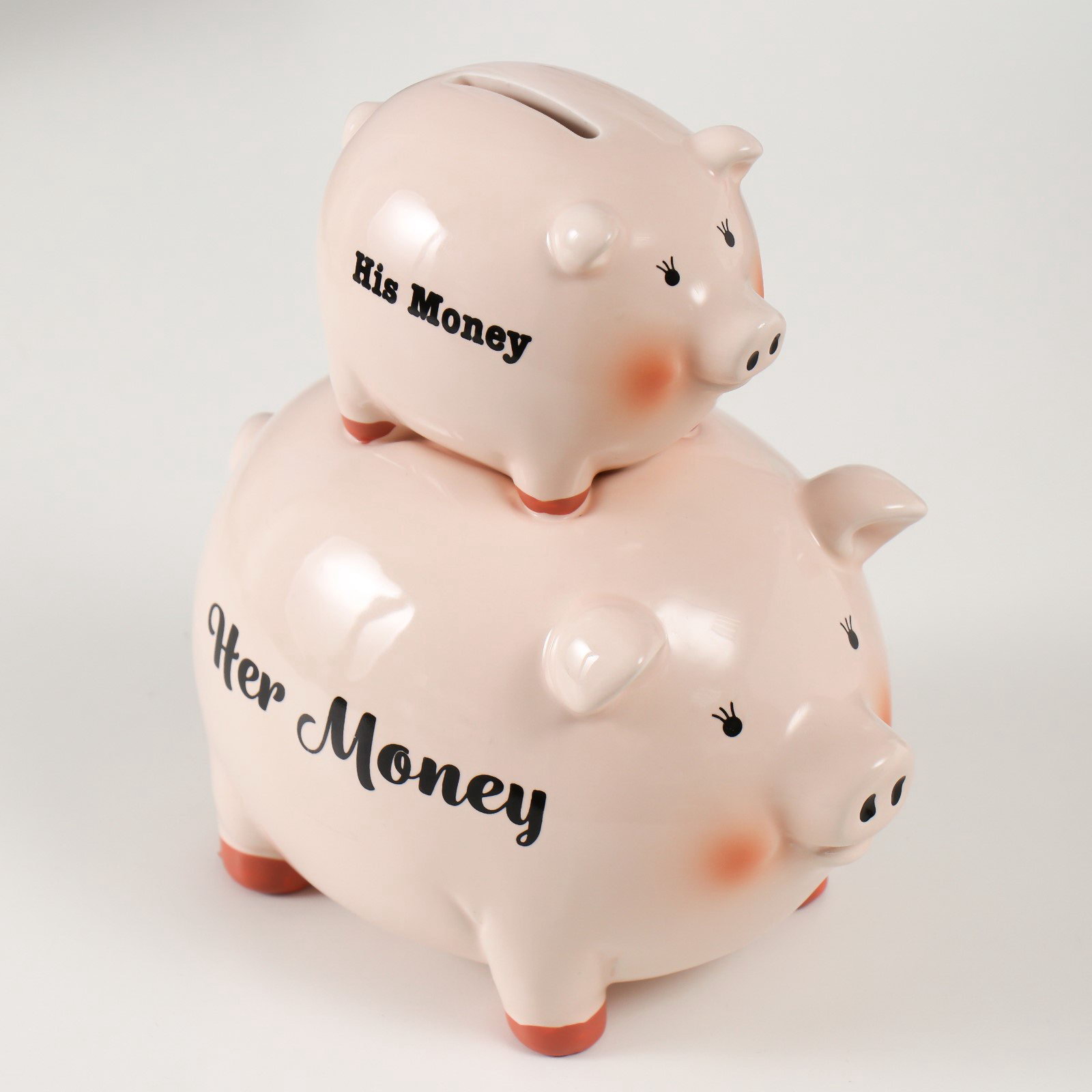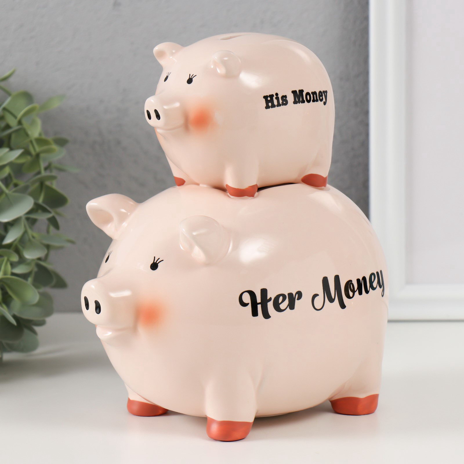 Копилка для денег "Две свинки - пирамида", керамика, 19.5x12x18.8 см, 12x19.5x18.8 см., Китай