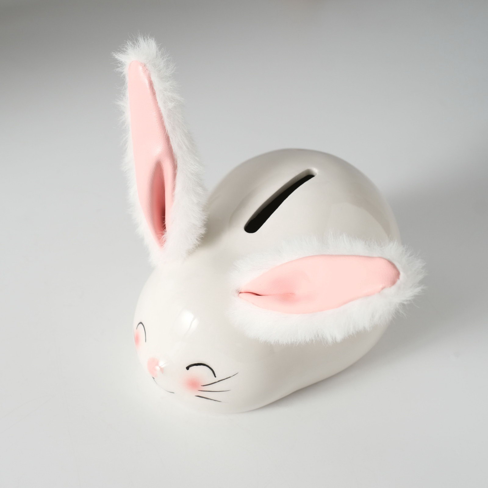 Копилка для денег "Румяный кролик с мягкими ушками", керамика, 8.8x13.2x7 см, Китай