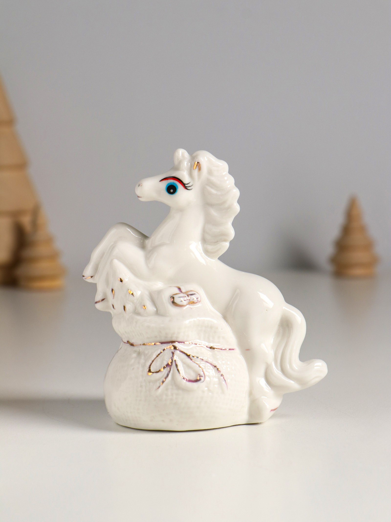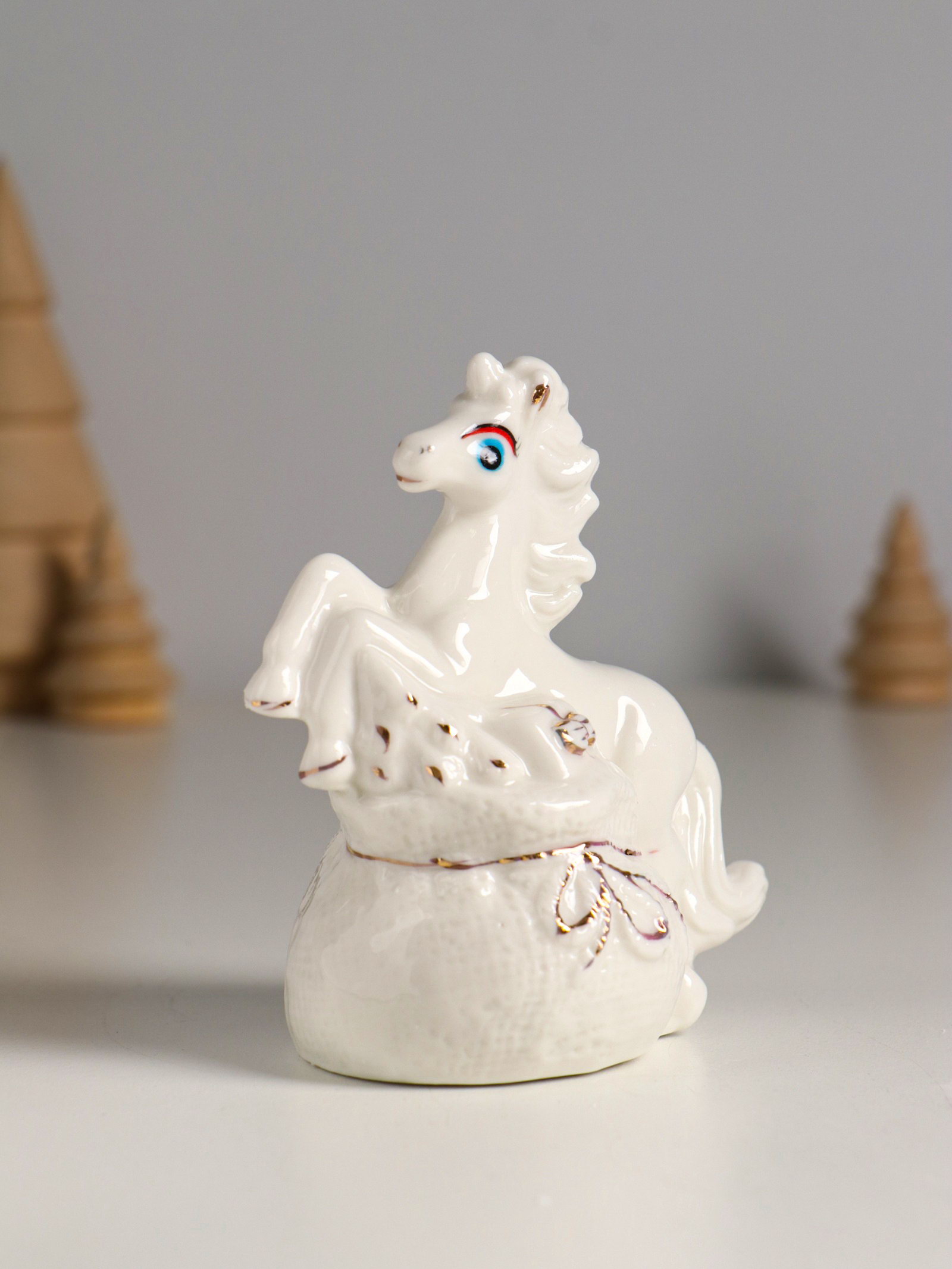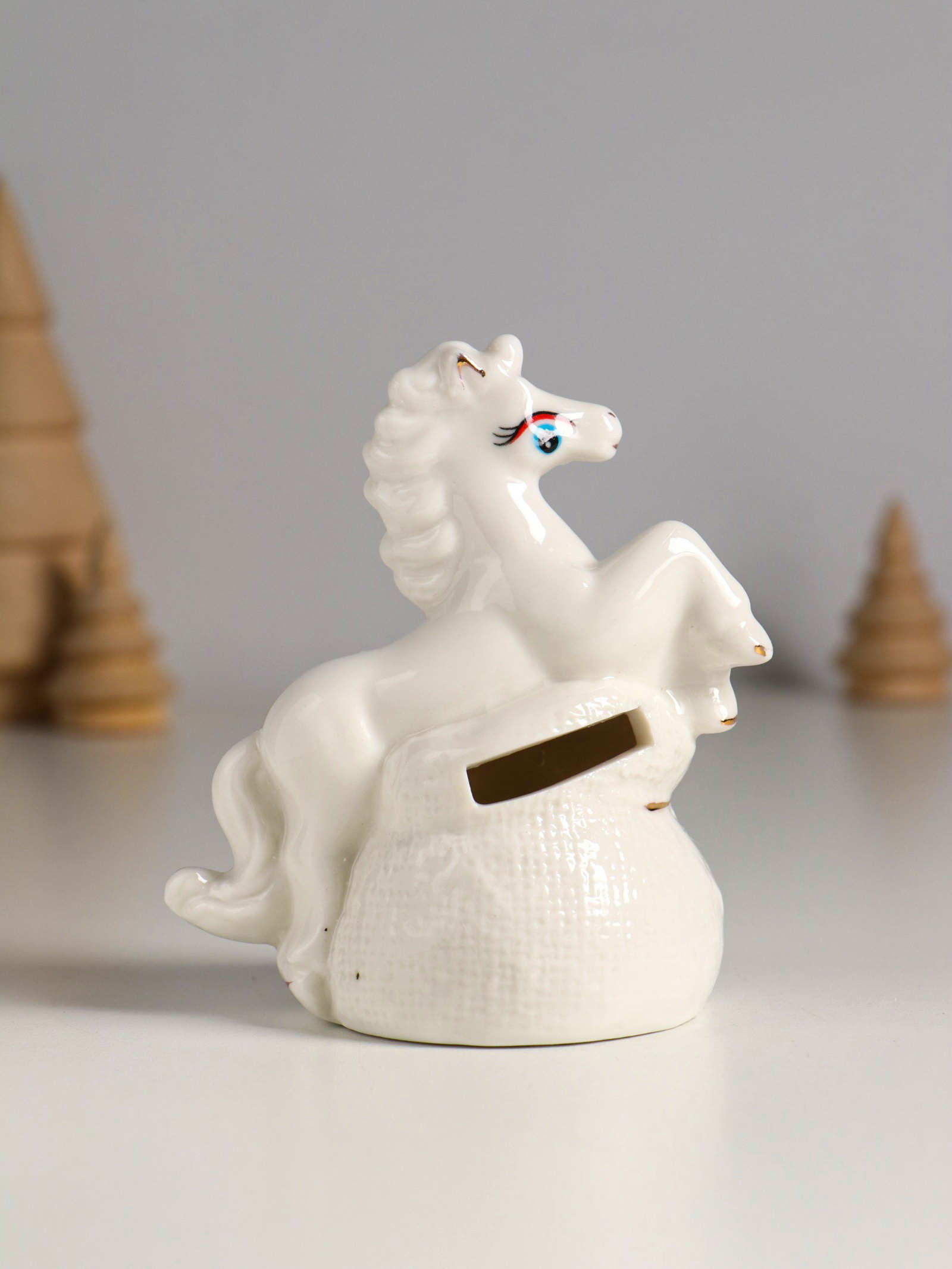 Копилка для денег "Лошадка с мешком", керамика, белый, 9x5.5x10 см, МИКС, 5.5x9x10 см., Китай
