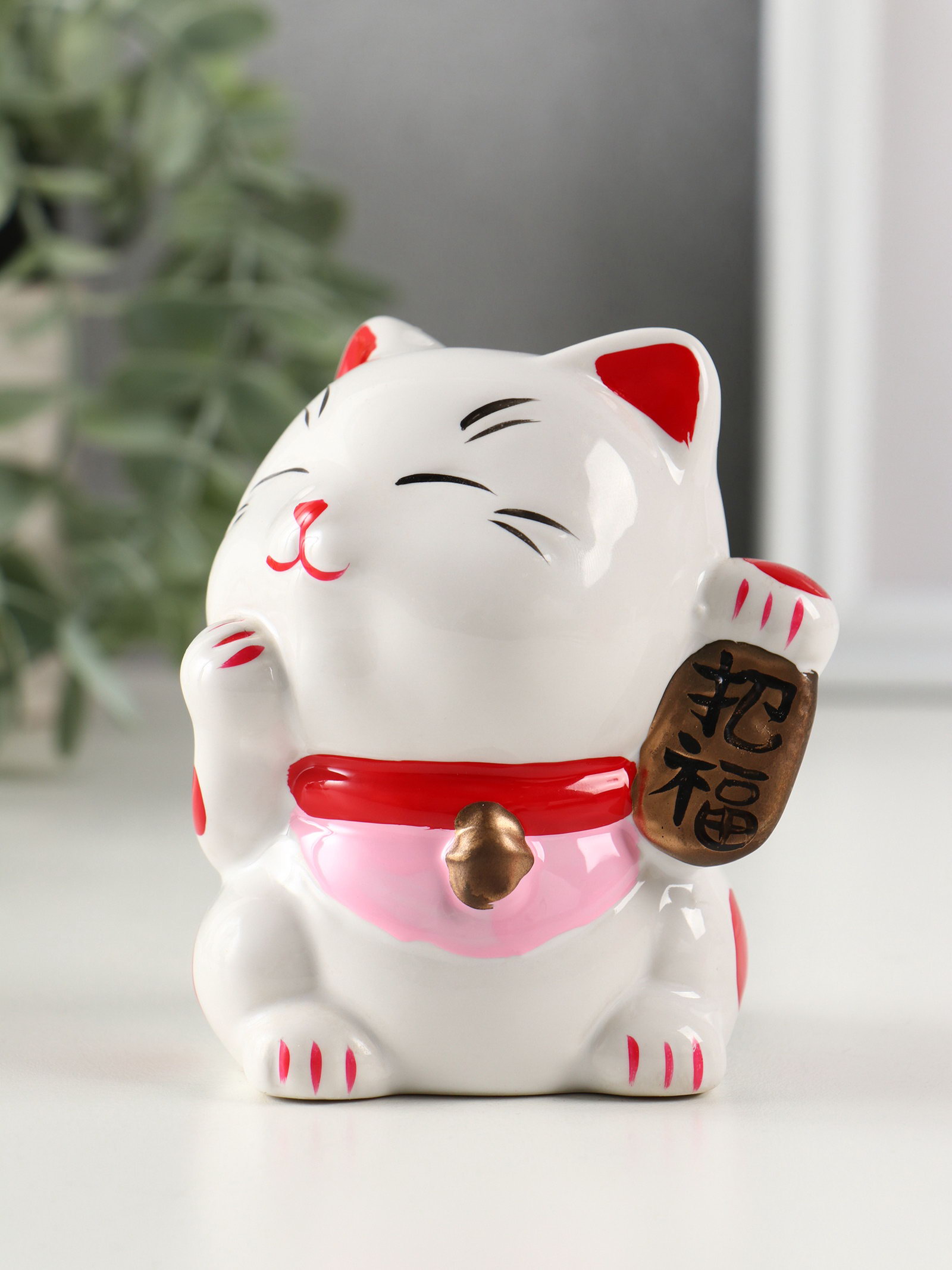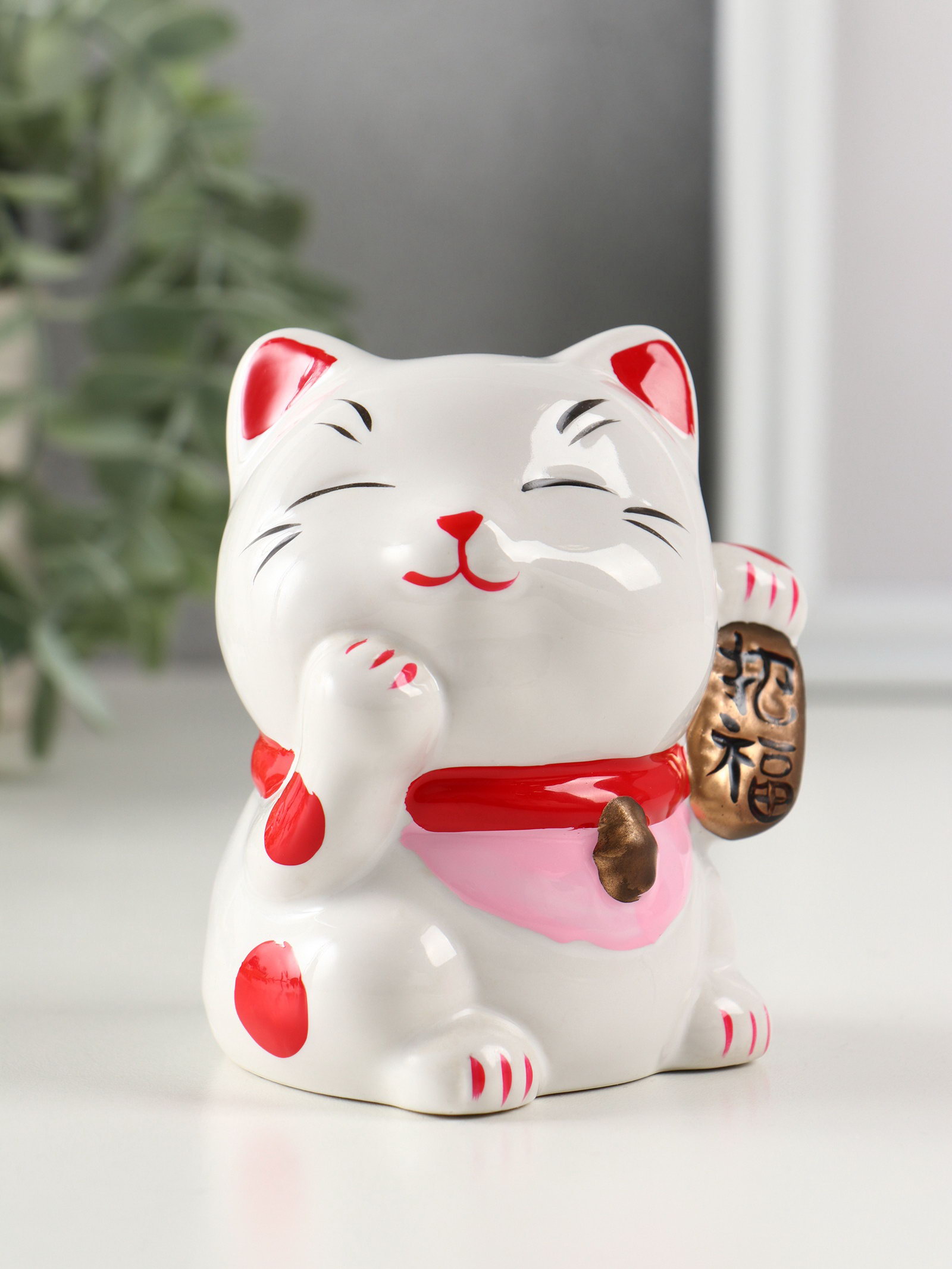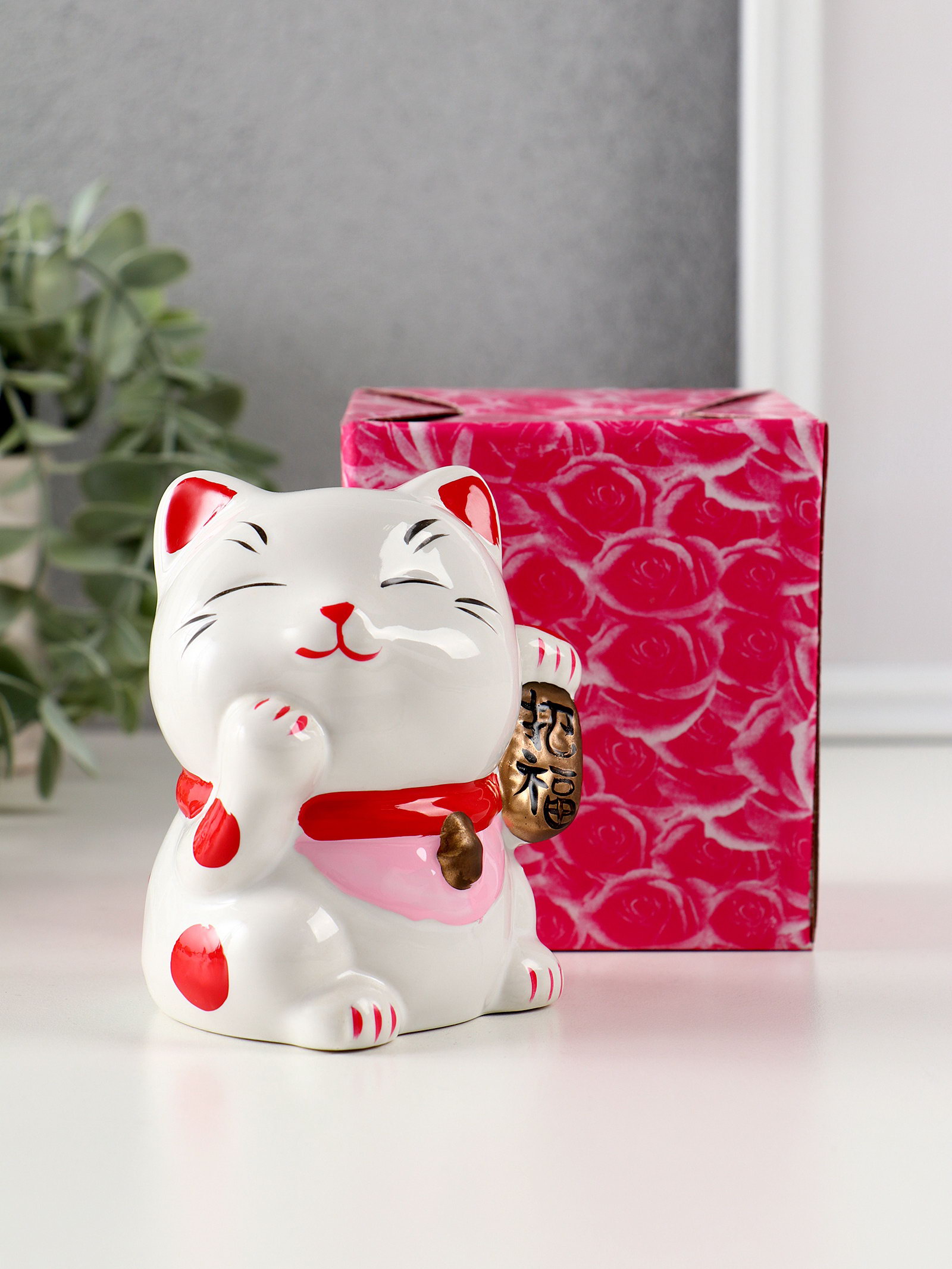 Копилка для денег "Манэки-нэко - иероглиф удача", розовый, 7.2x8.3x10 см, 8.3x7.2x10 см., Китай
