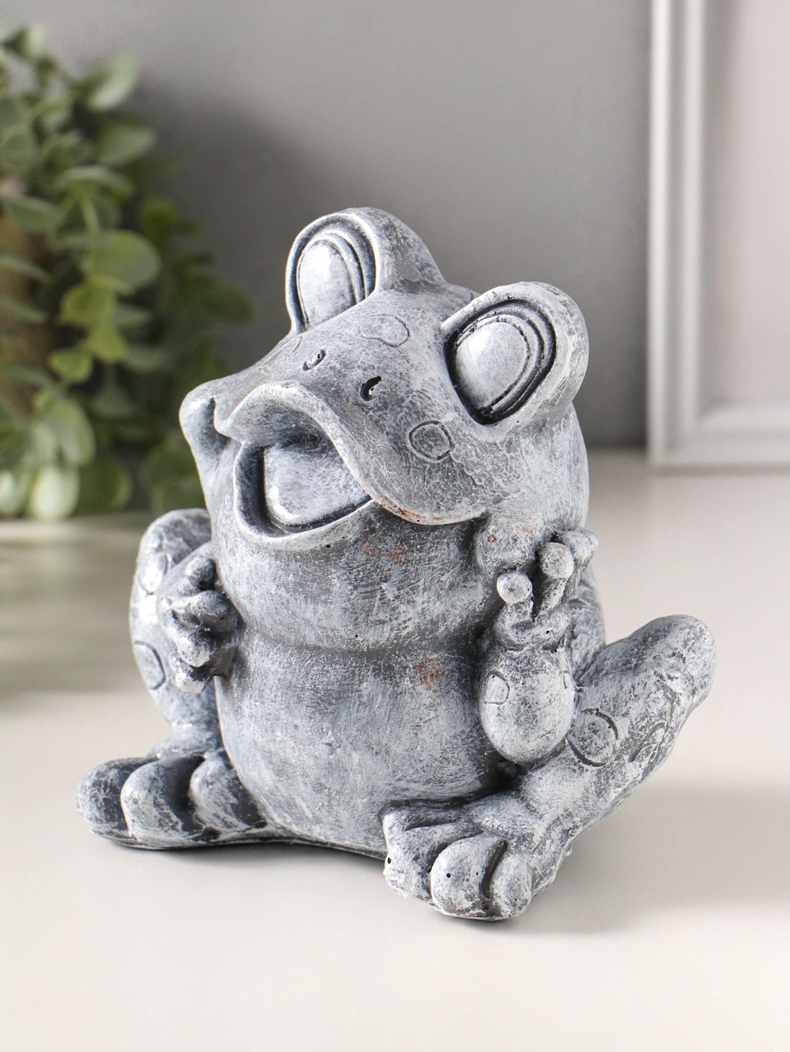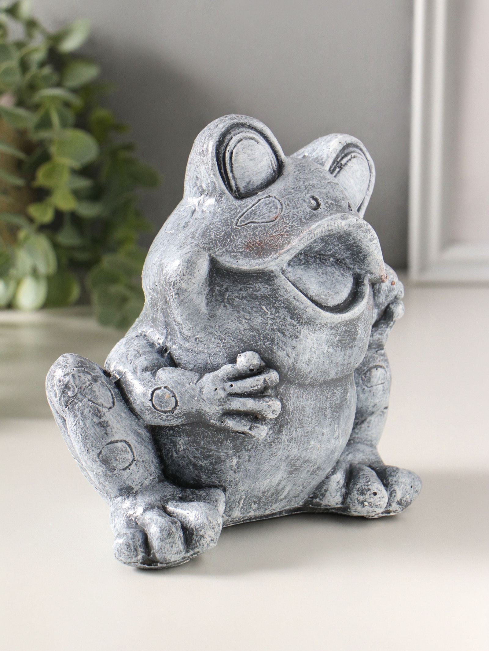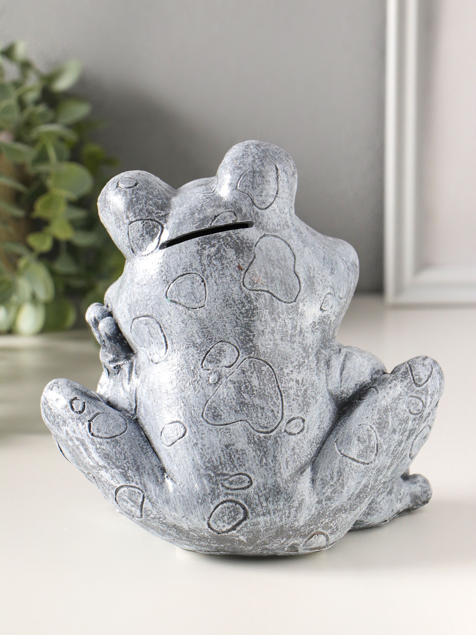 Копилка для денег полистоун "Лягушонок", 16 см, серый камень, Россия