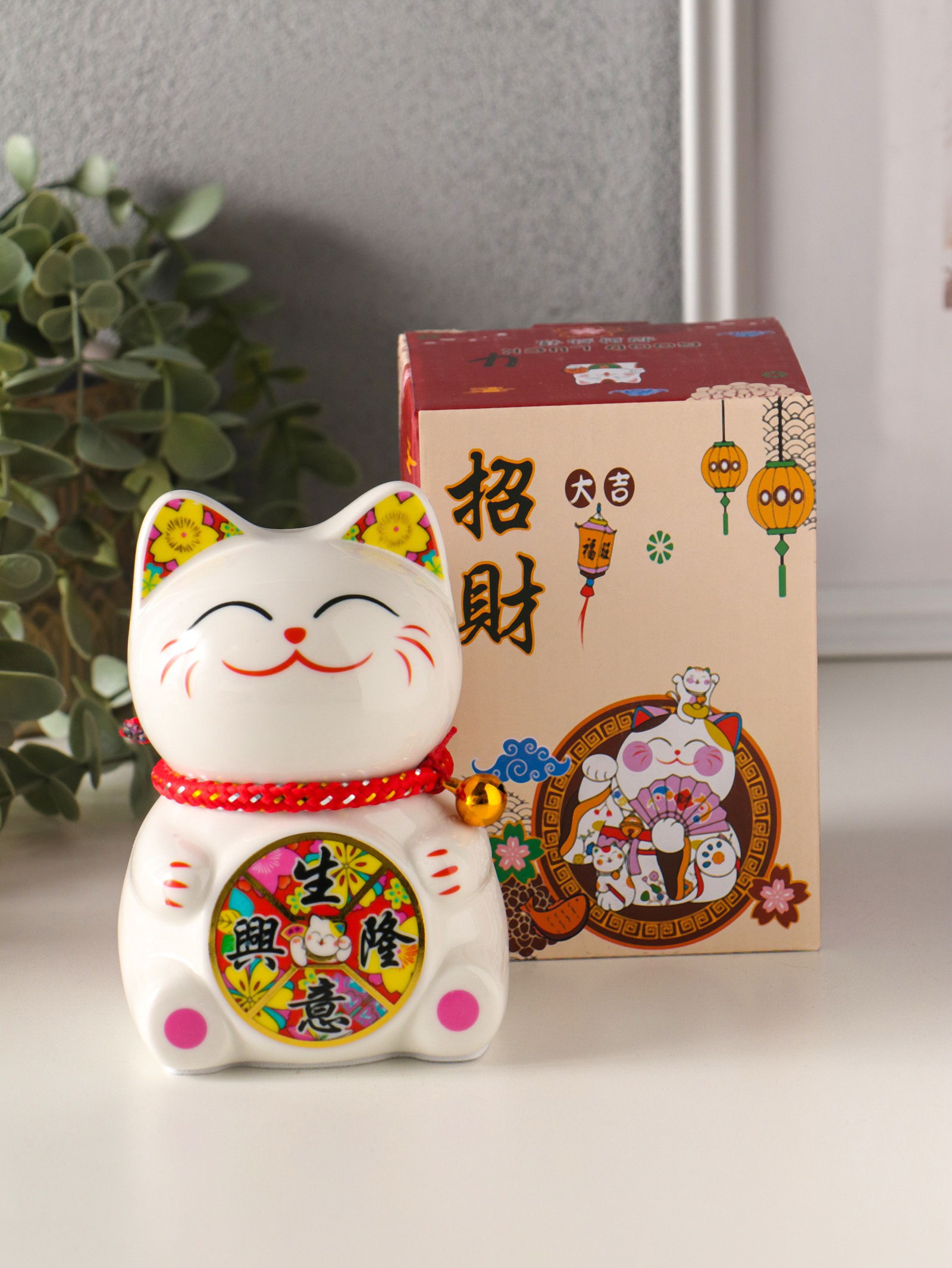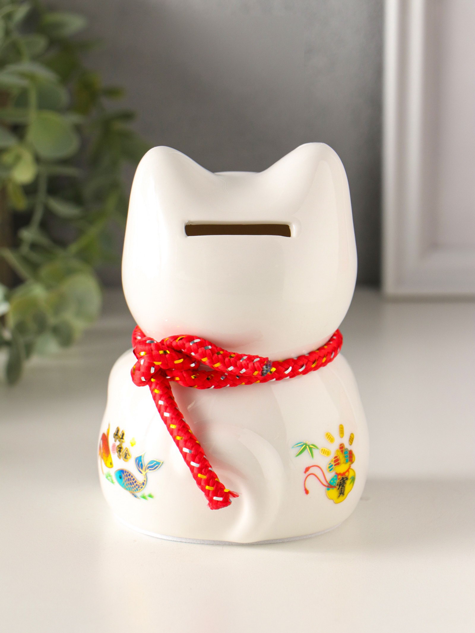 Цвет: Белый, Разноцветный Размер упаковки: 9 x 13 x 9 см. tnved: 6913909000 Тематика: Наземные животные Уточняющий вид: Бобтейл Вид: Кошка, кот Высота, см: 12.5 Покрытие: Краска Тип копилки: Открытый Эта керамическая копилка в виде знаменитого японского кота с поднятой лапой символ, что в доме всегда будут водиться деньги. Белоснежная фигурка с яркими, жизнерадостными акцентами и традиционным барабаном создаёт ощущение праздника и удачи. Каждый раз, опуская монету в открытую прорезь, вы не просто откладываете деньги, а совершаете маленький ритуал на привлечение благополучия. Особенности