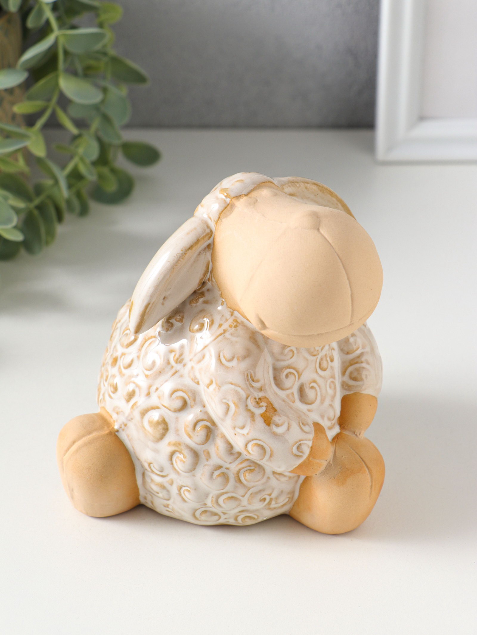 Копилка керамика "Кудряш бараш" беж 11.6х11.5х12 см, 11.5x11.6x12 см., Китай