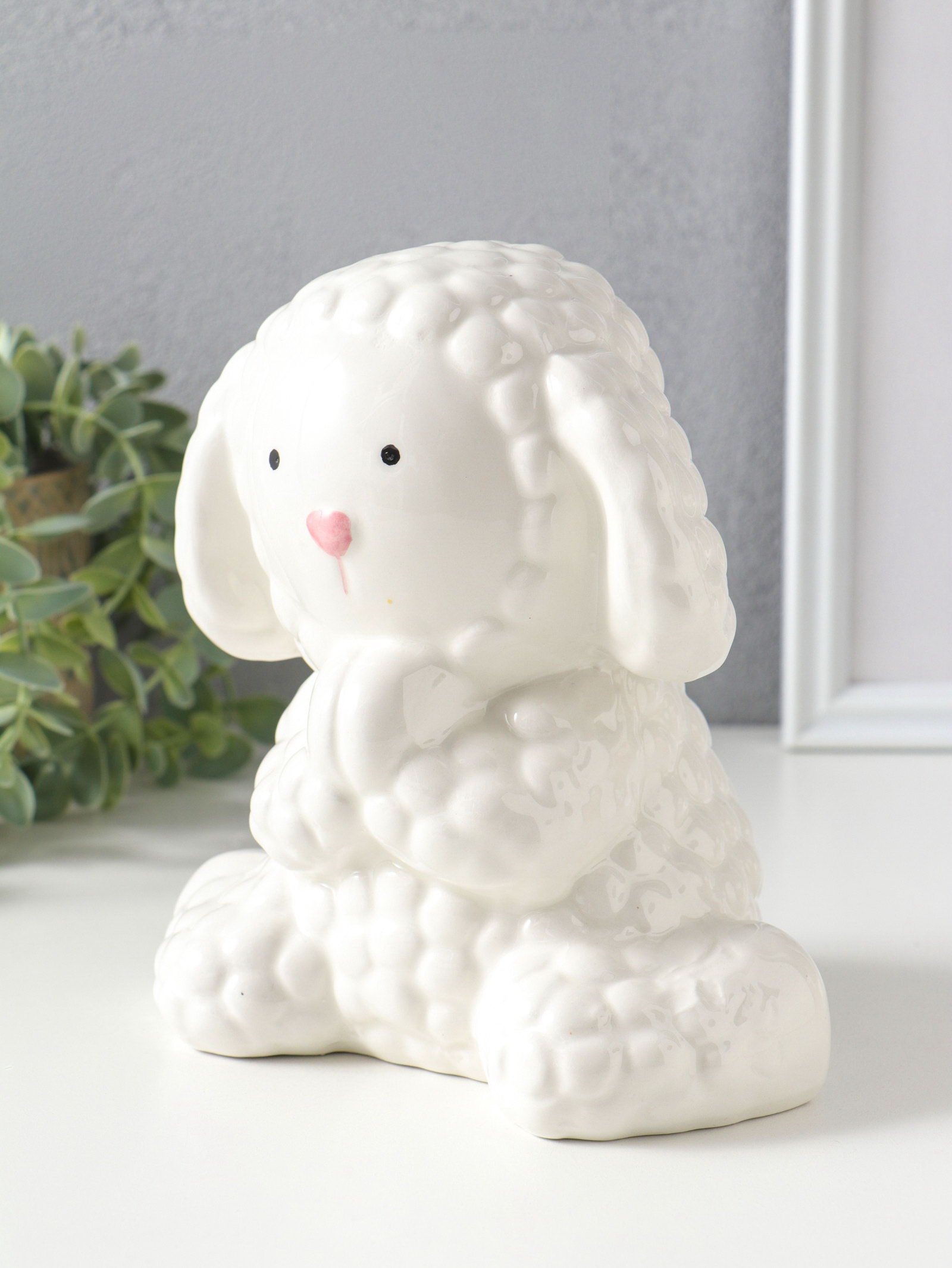 Копилка керамика "Милый барашек с сердцем" белая 17х11х15.1 см, 11x7x15.1 см., Китай