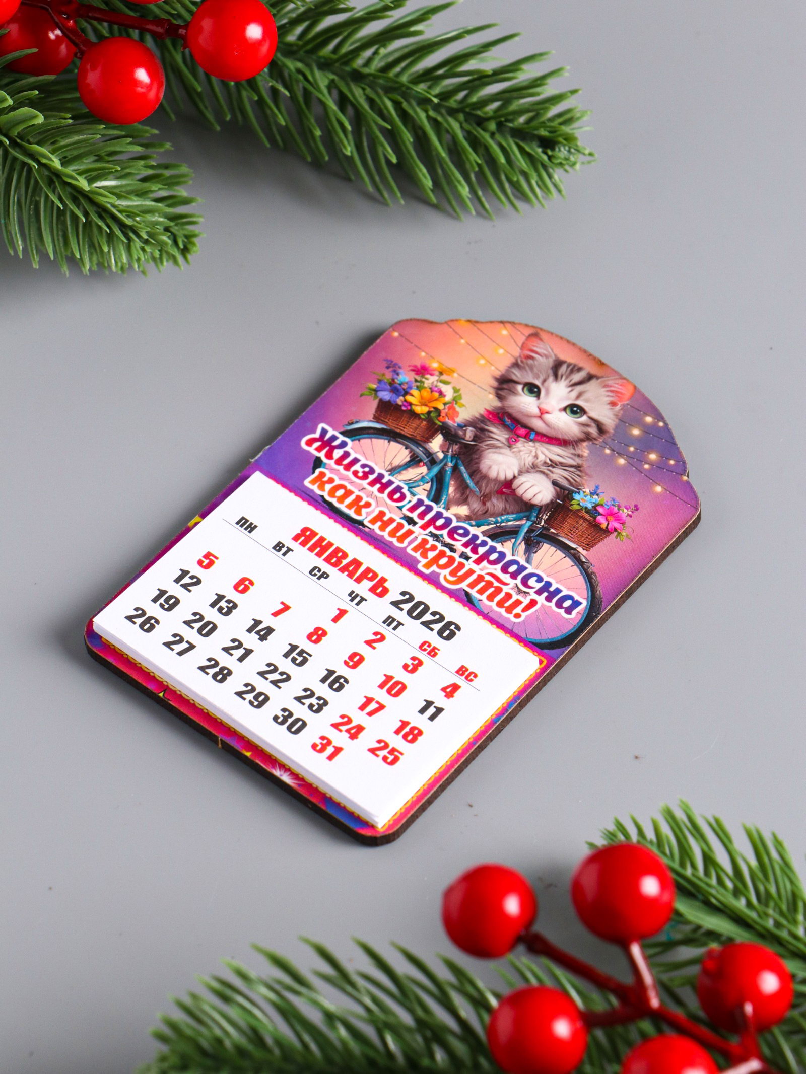 Магнит на холодильник с календарём отрывным 2026 "Кот: Жизнь прекрасна как ни крути", 9.5x6.5 см, Дарим Красиво, Россия