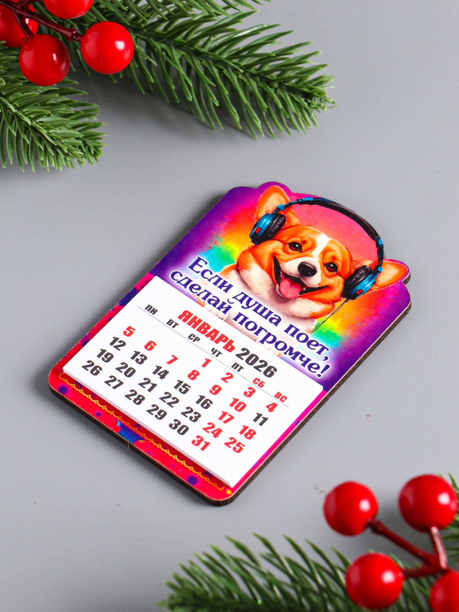 Магнит на холодильник с календарём отрывным 2026 "Собака: Если душа поёт, сделай погромче", 9.5x6.5 см, Дарим Красиво, Россия