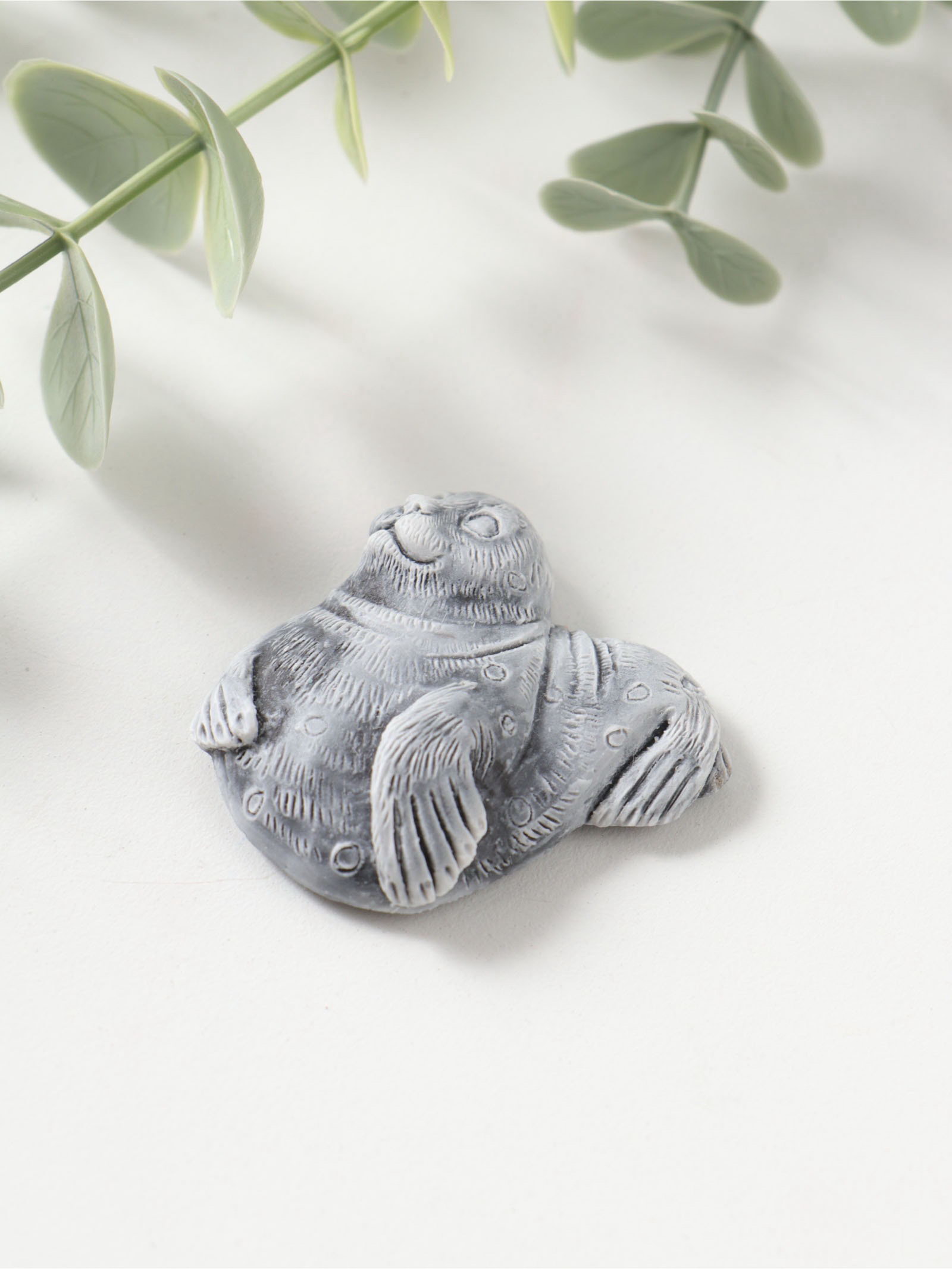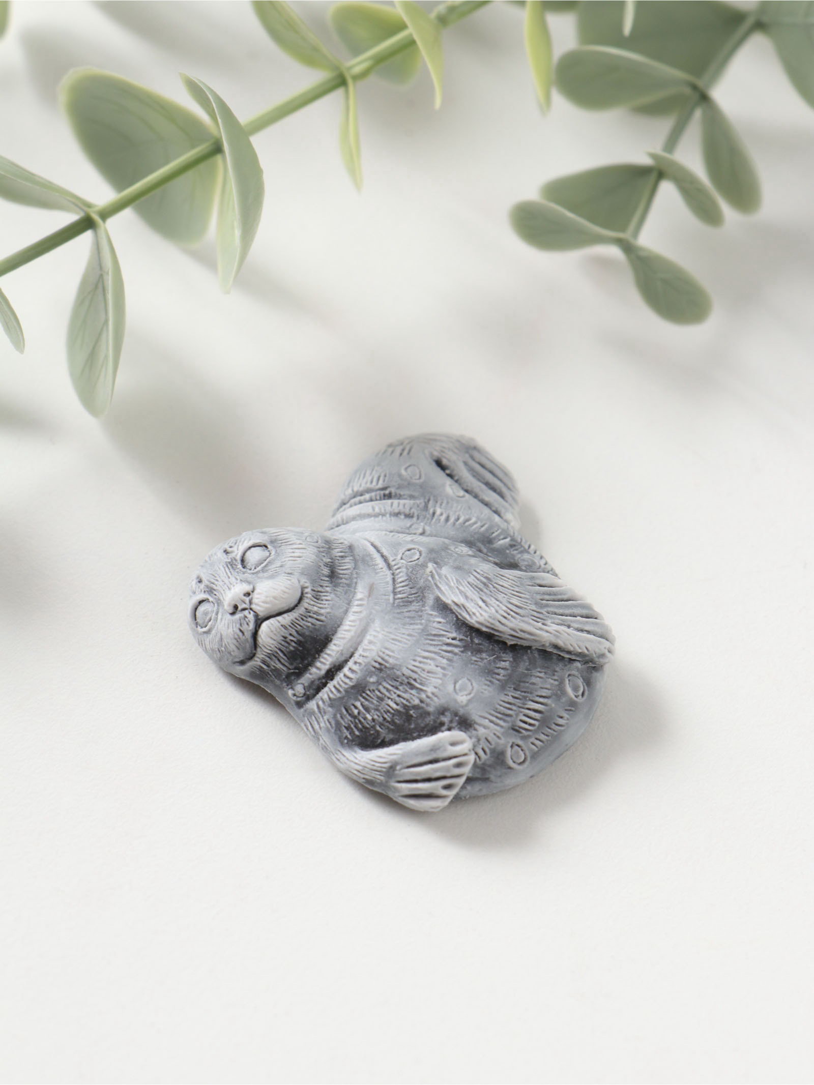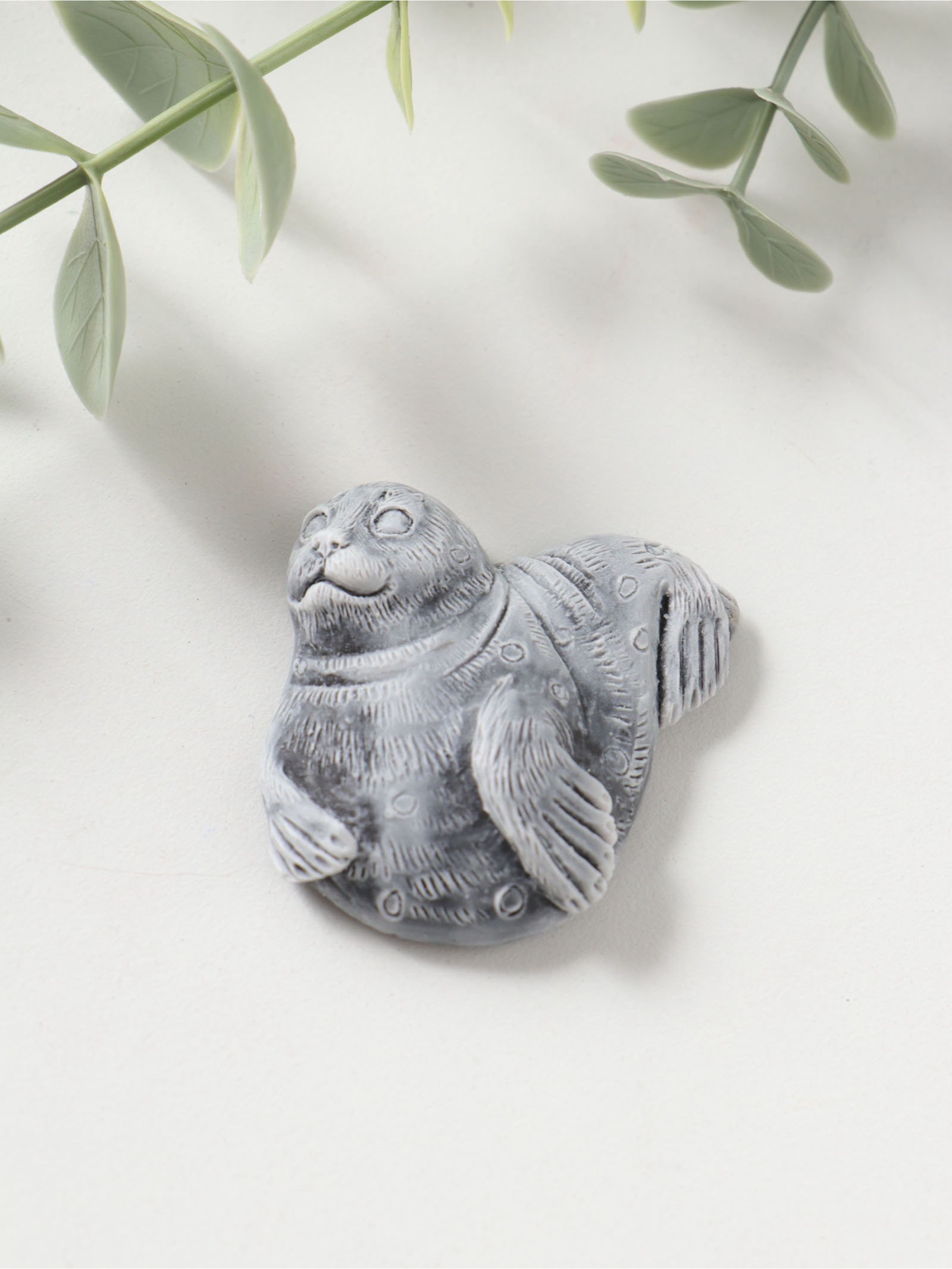 Магнит на холодильник "Нерпа", барельеф, 5 см, Сувениры из мраморной крошки, Россия