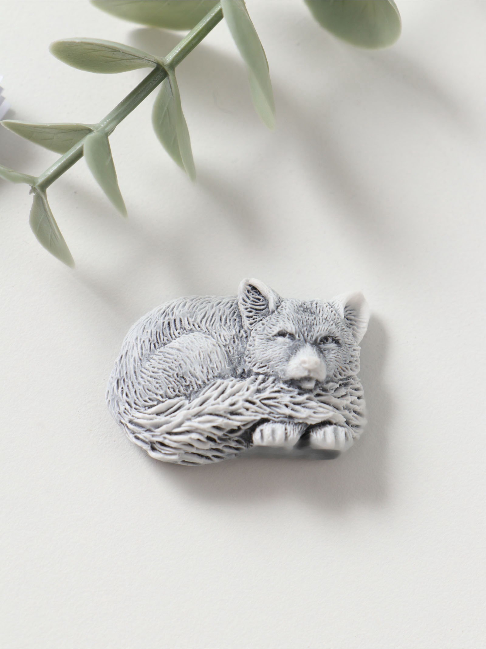 Магнит на холодильник "Лисенок лежит", барельеф, 2.4 см, Сувениры из мраморной крошки, Россия