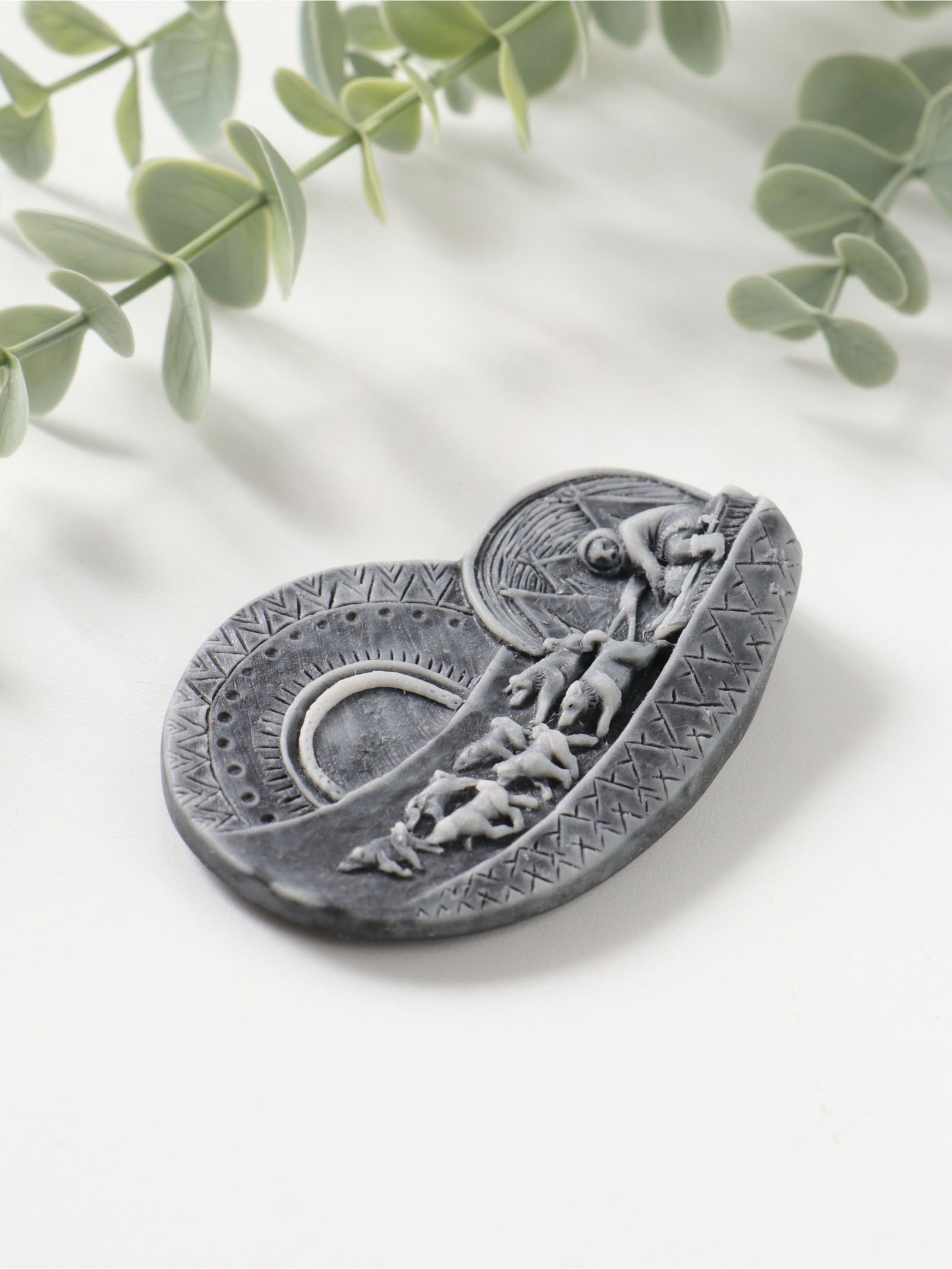 Детали создают атмосферу Магнит "Собачья упряжка" несёт в себе энергию движения и приключений. Каждая деталь скульптуры от силуэтов собак до полозьев нарт проработана. Он удерживает списки покупок или важные фото, одновременно становясь стильным акцентом на кухне или в офисе. Материал обеспечивает долговечность и устойчивость к влаге, сохраняя вид на годы. | ||