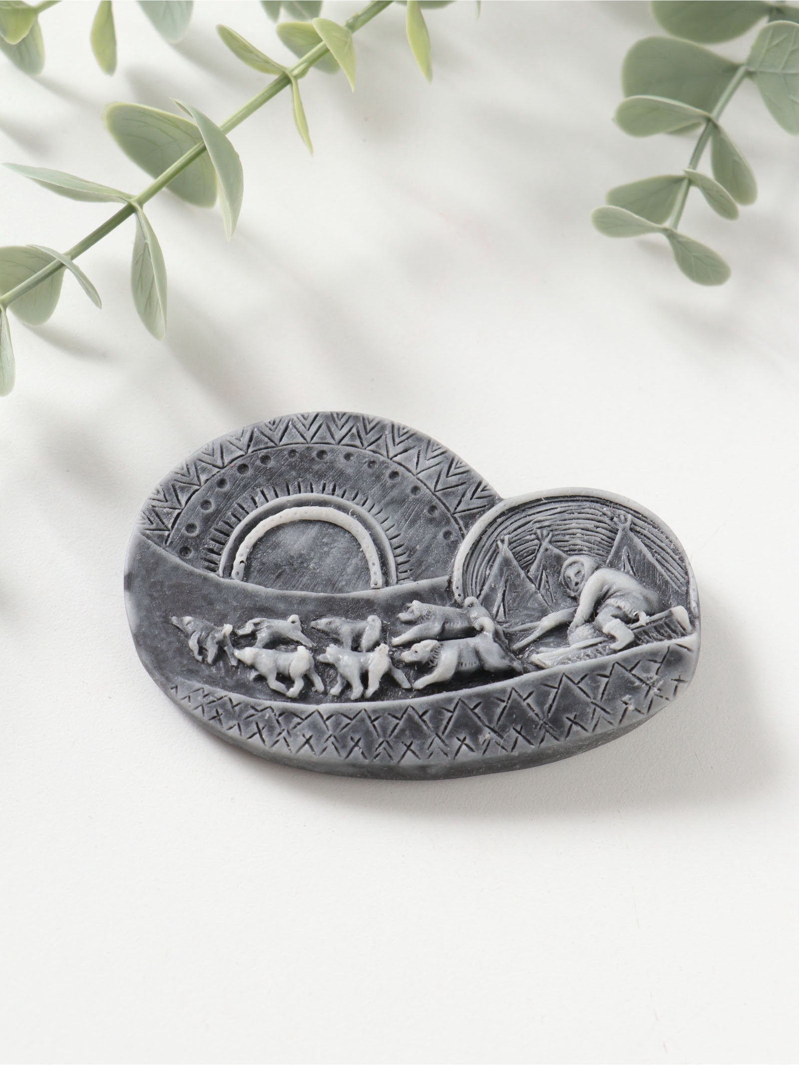 Магнит на холодильник "Собачья упряжка мчится вдаль", барельеф, 6 см, Сувениры из мраморной крошки, Россия