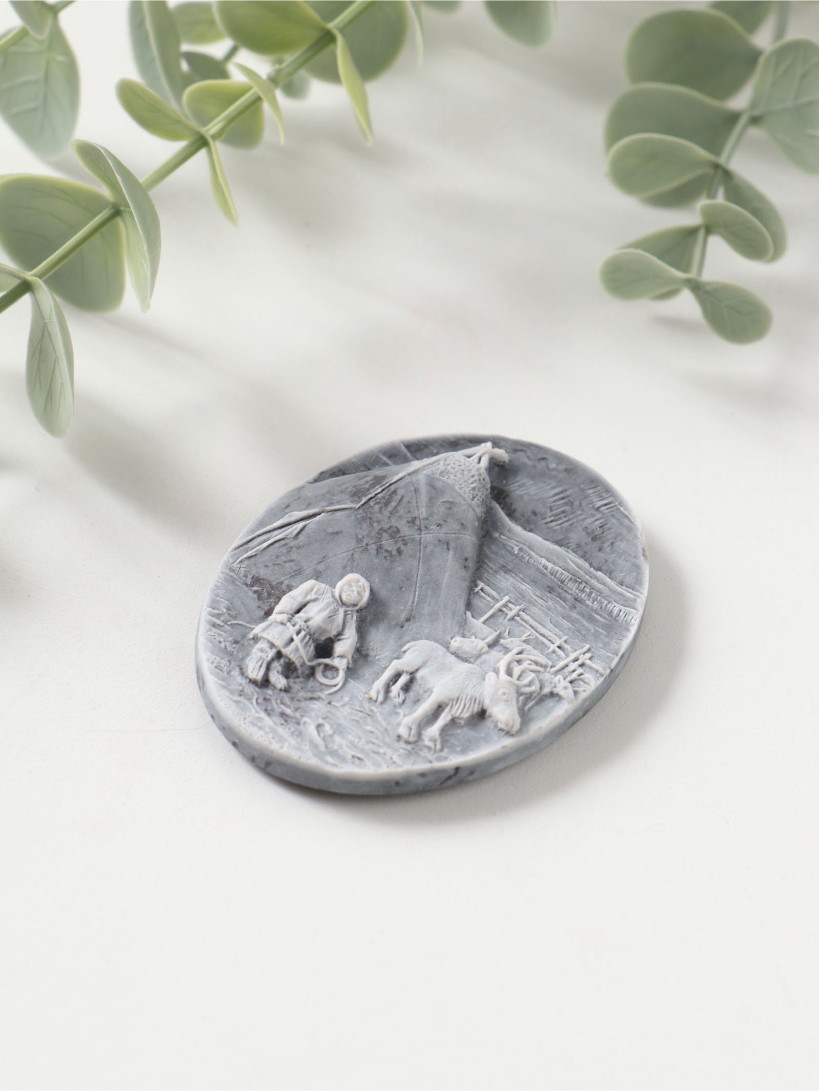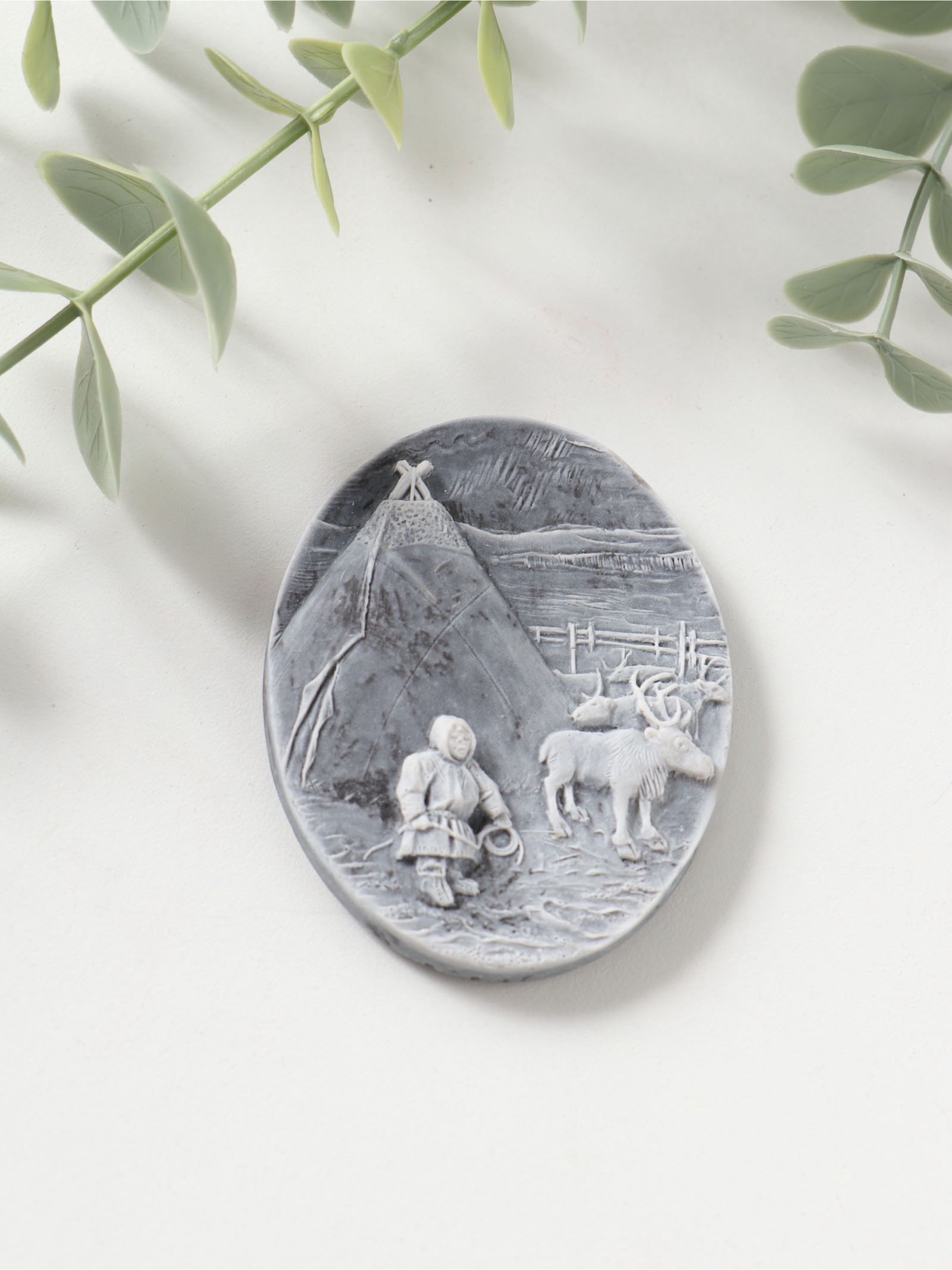 Магнит на холодильник "У чума", барельеф, 6.5 см, Сувениры из мраморной крошки, Россия