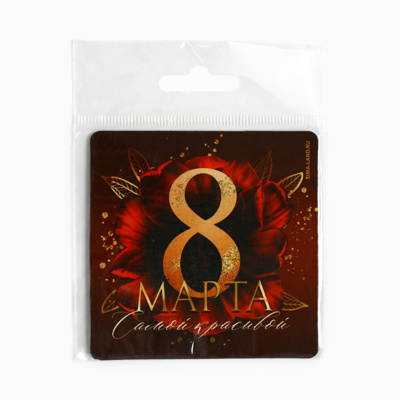 Магнит на холодильник "Самой красивой. 8 Марта", 7x7 см, 7x7x0.2 см., Сима-ленд, Китай