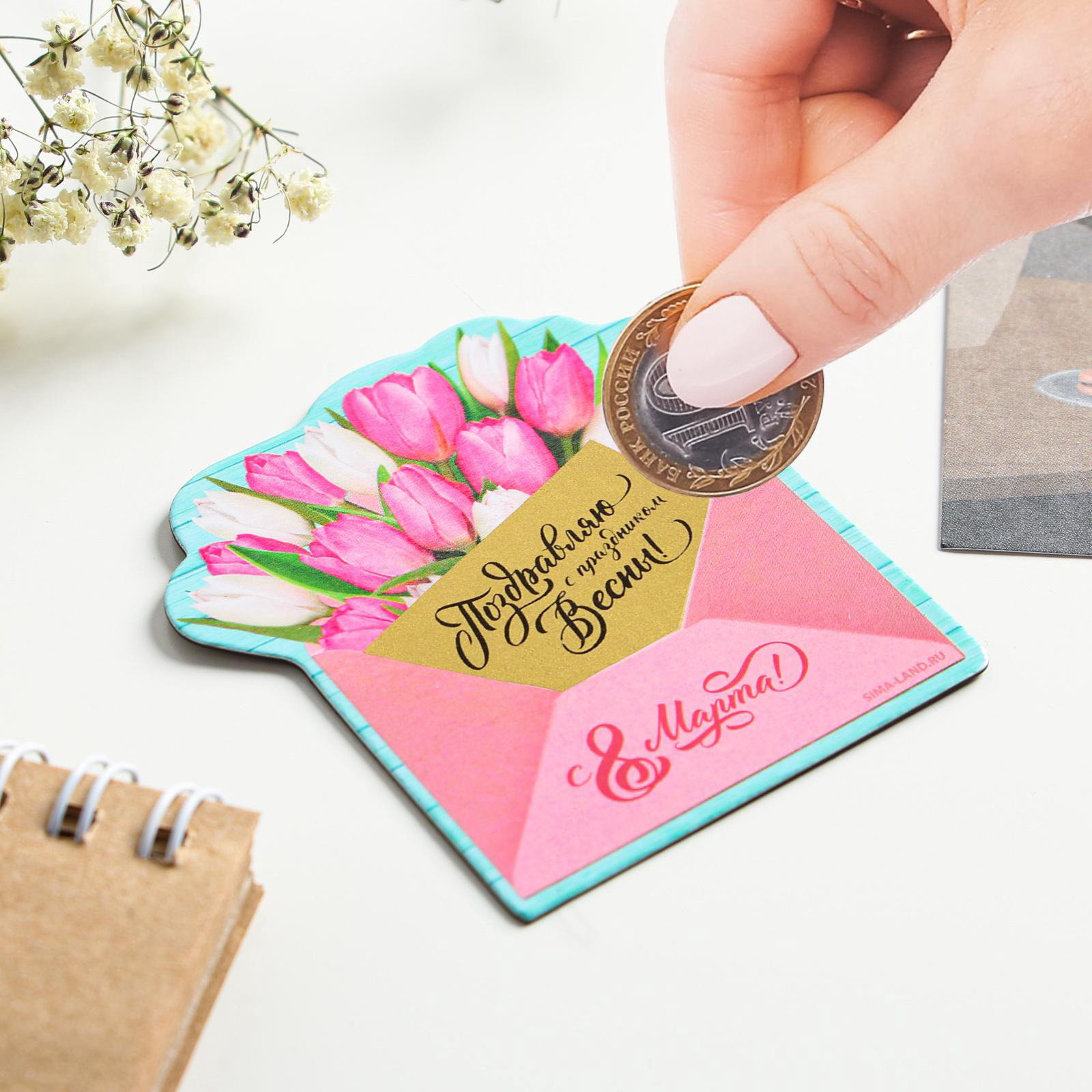 Магнит со скретч-слоем "Конверт. 8 Марта", 6.8x6.9 см, 6.9x6.8x0.1 см., Сима-ленд, Китай