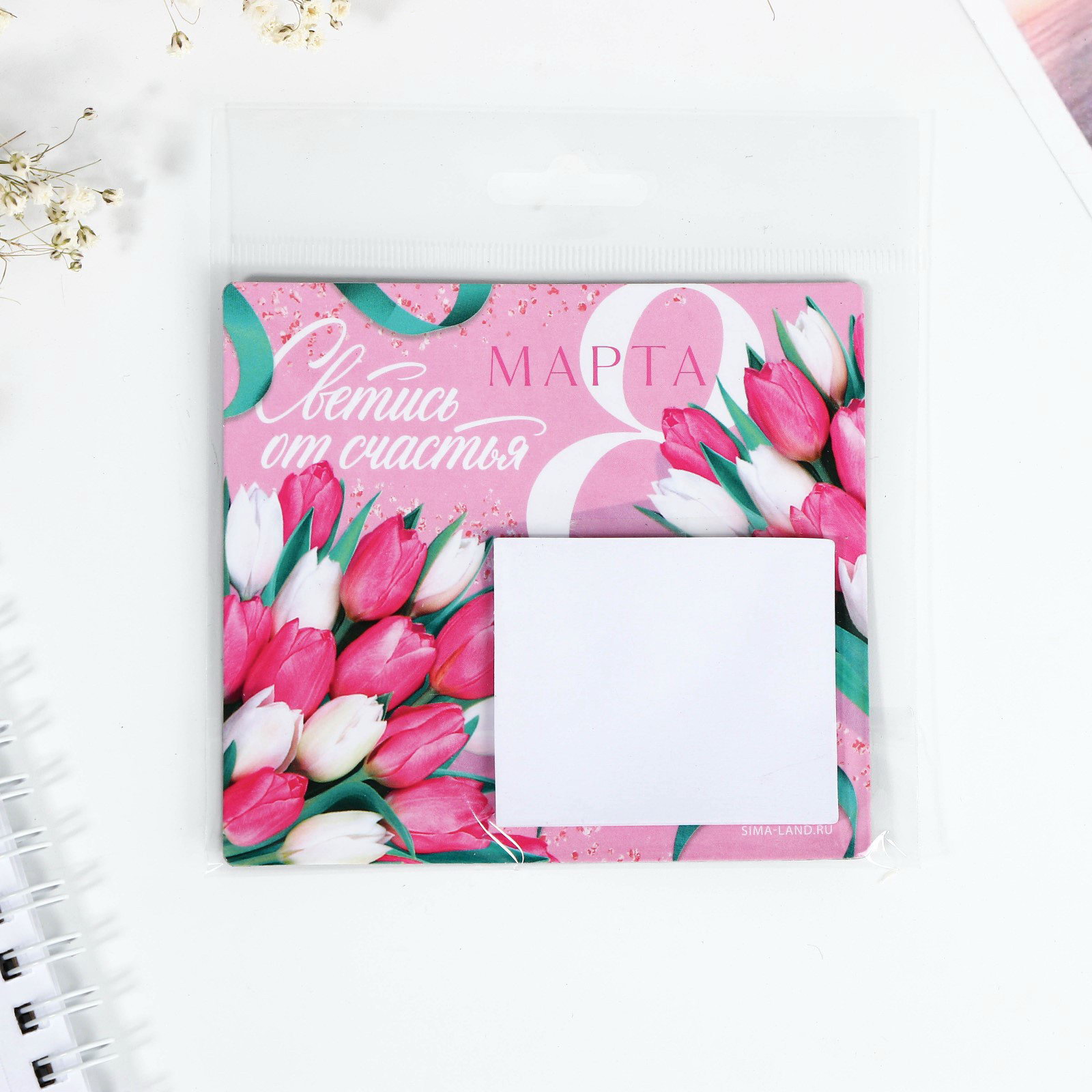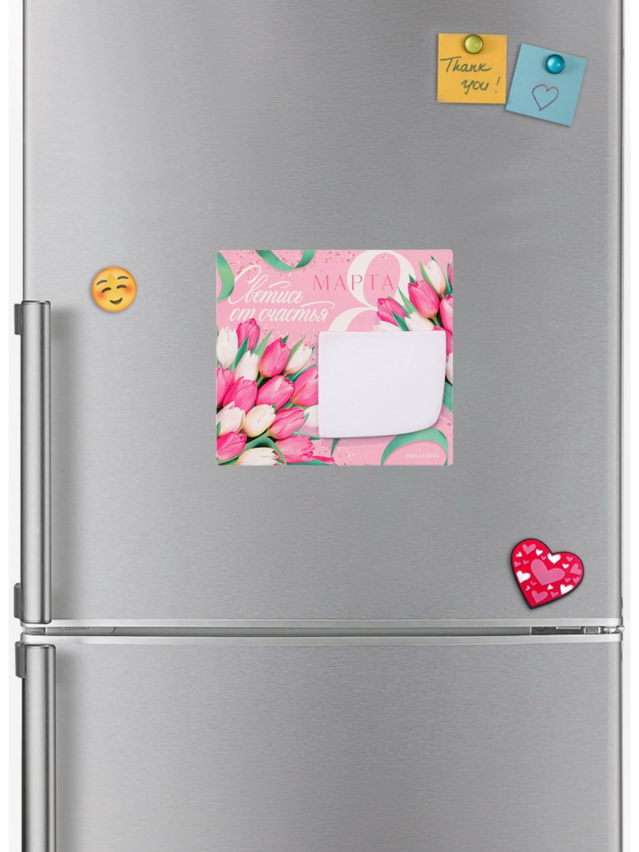 Магнит с блоком для записей "Светись от счастья. 8 Марта", 10x9 см, 9x10x0.3 см., Сима-ленд, Китай