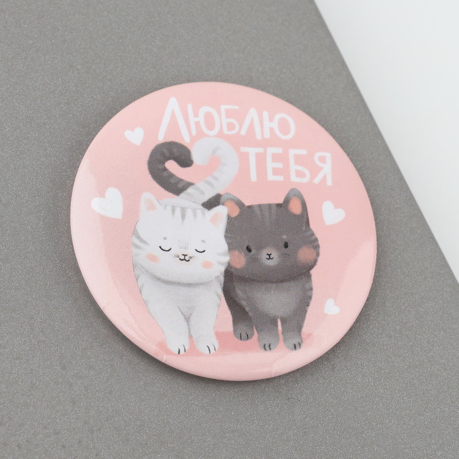Магнит закатной, сувенир "Люблю тебя", d=5 см, 5x5x0.5 см., Сима-ленд, Китай