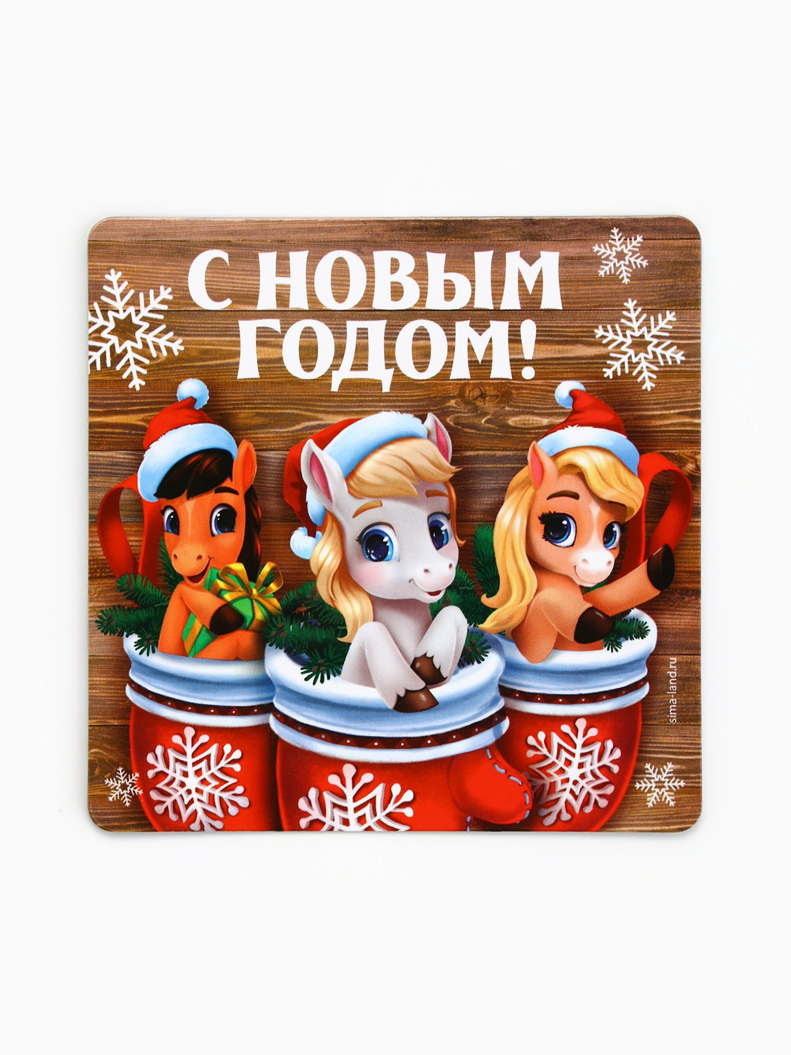 Магнит на холодильник "С Новым годом", 8x8 см, 8x8x0.3 см., Сима-ленд, Китай