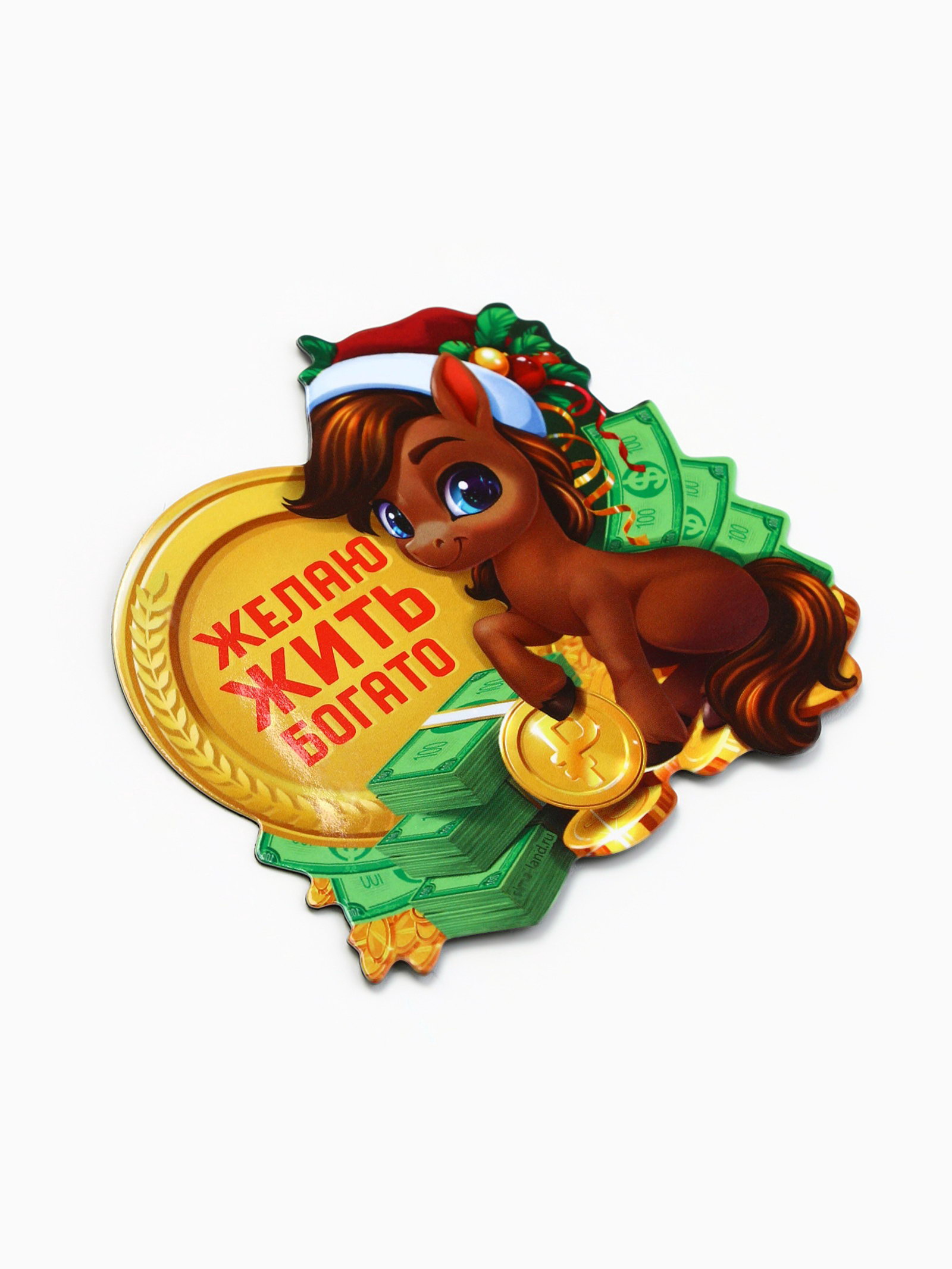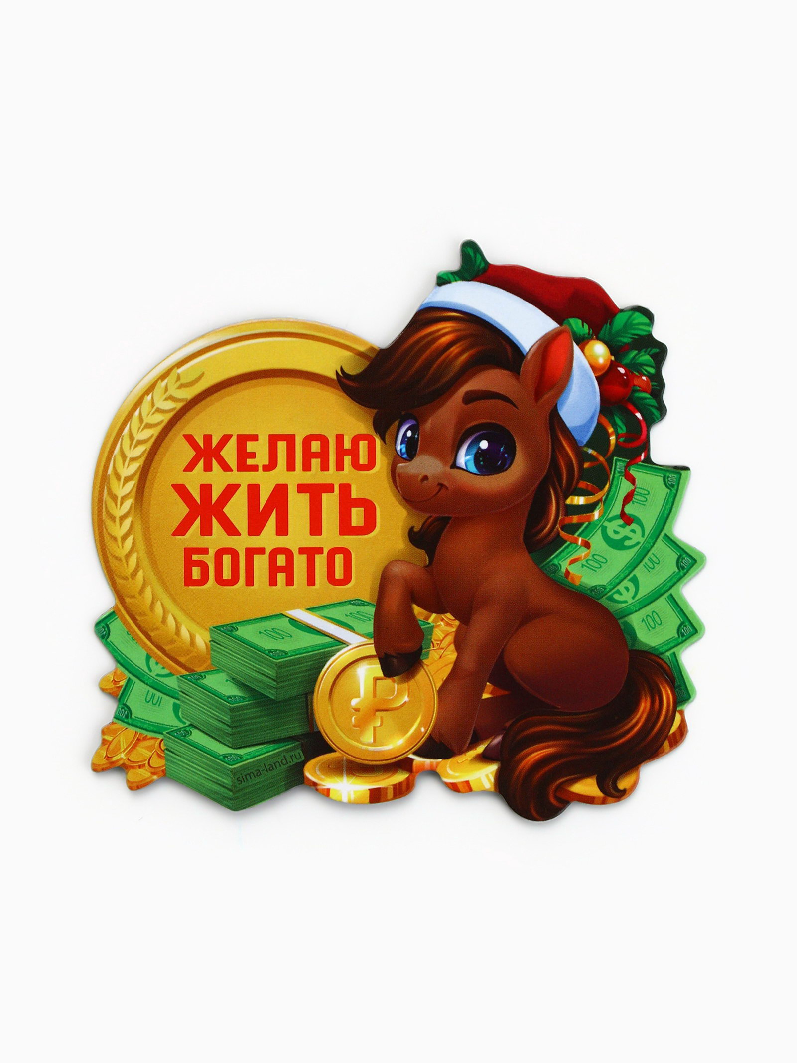 Магнит новогодний на холодильник "Желаю жить богато", 8x8 см, 8x8x0.3 см., Сима-ленд, Китай