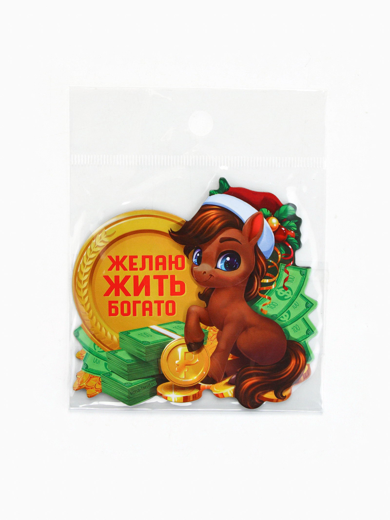 Магнит новогодний на холодильник "Желаю жить богато", 8x8x0.3 см., Сима-ленд, Китай