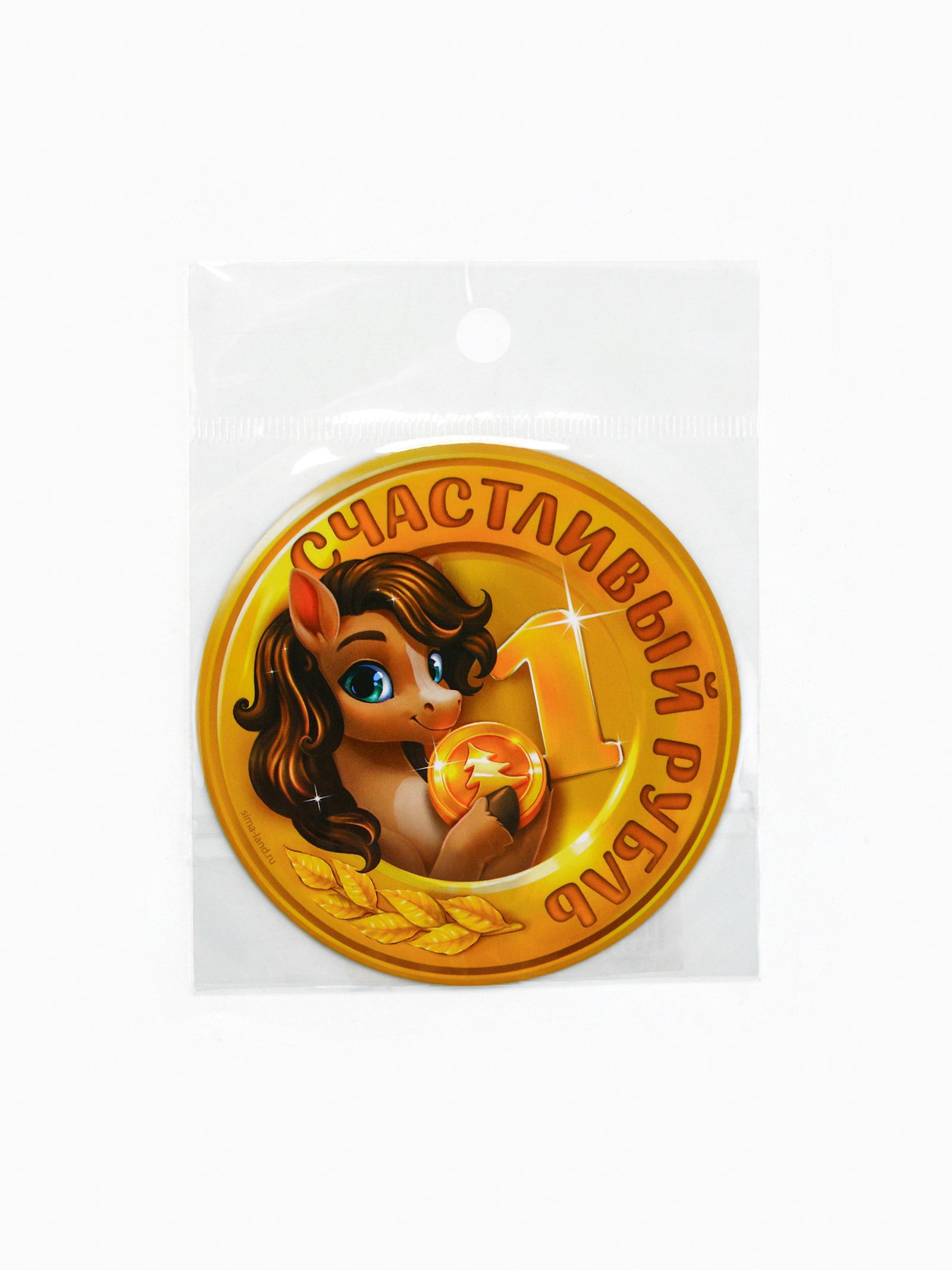 Магнит новогодний на холодильник "Счастливый рубль", 8x8x0.3 см., Сима-ленд, Китай
